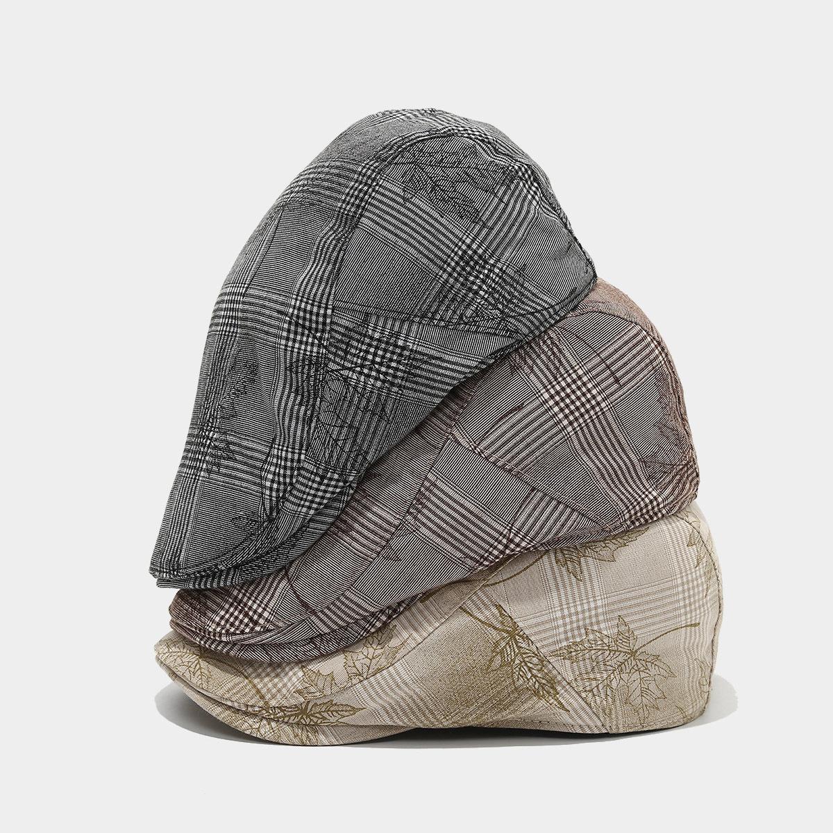 Gorra de ala pequeña con hojas estilo europeo y americano, informal, de primavera y verano, para hombre, estilo británico, a cuadros, para el sol, para mujer