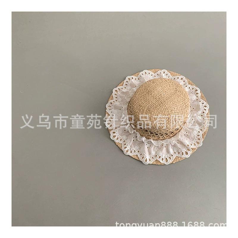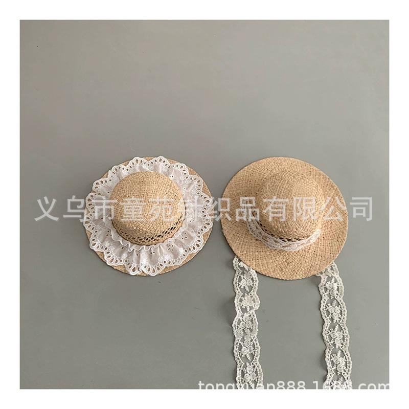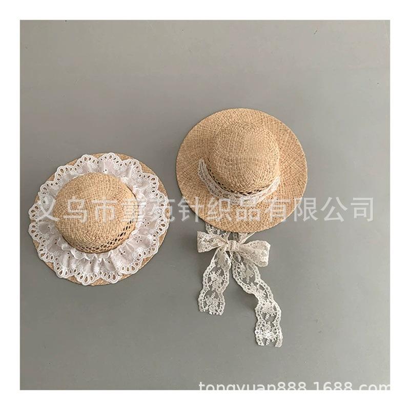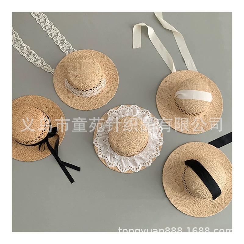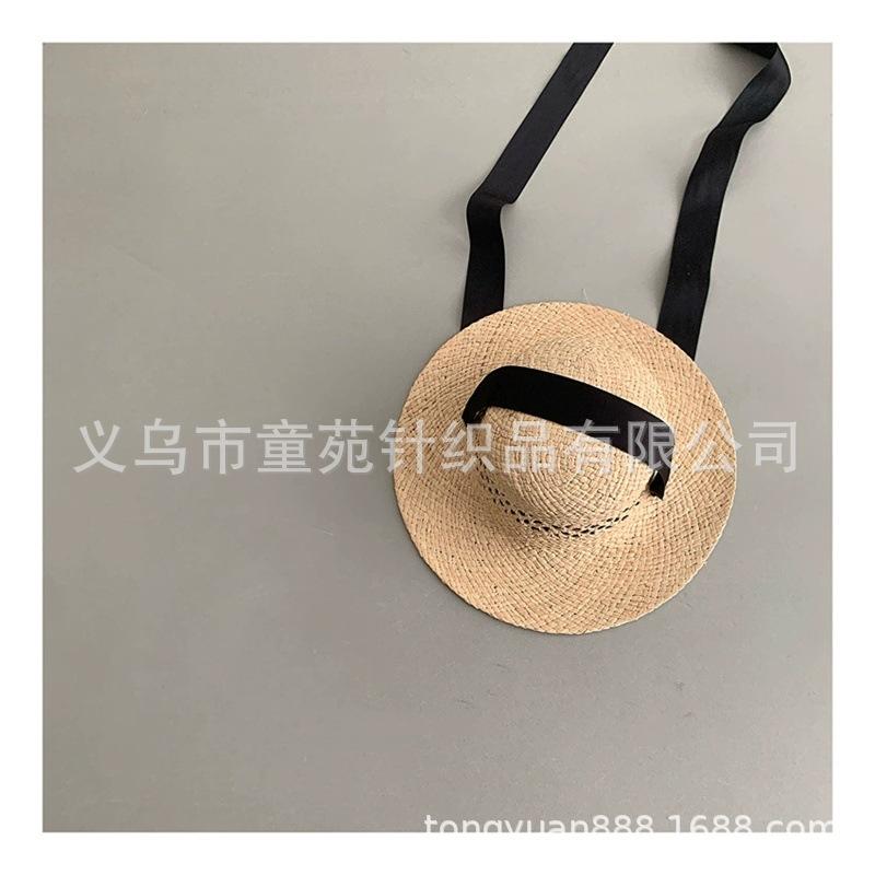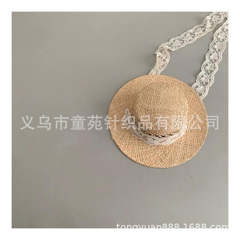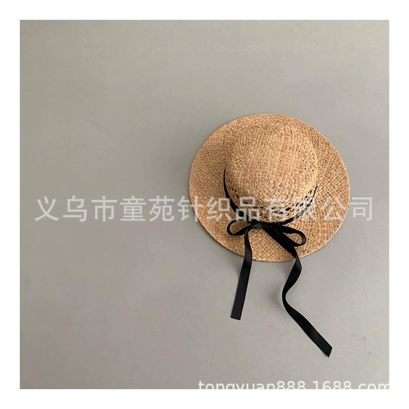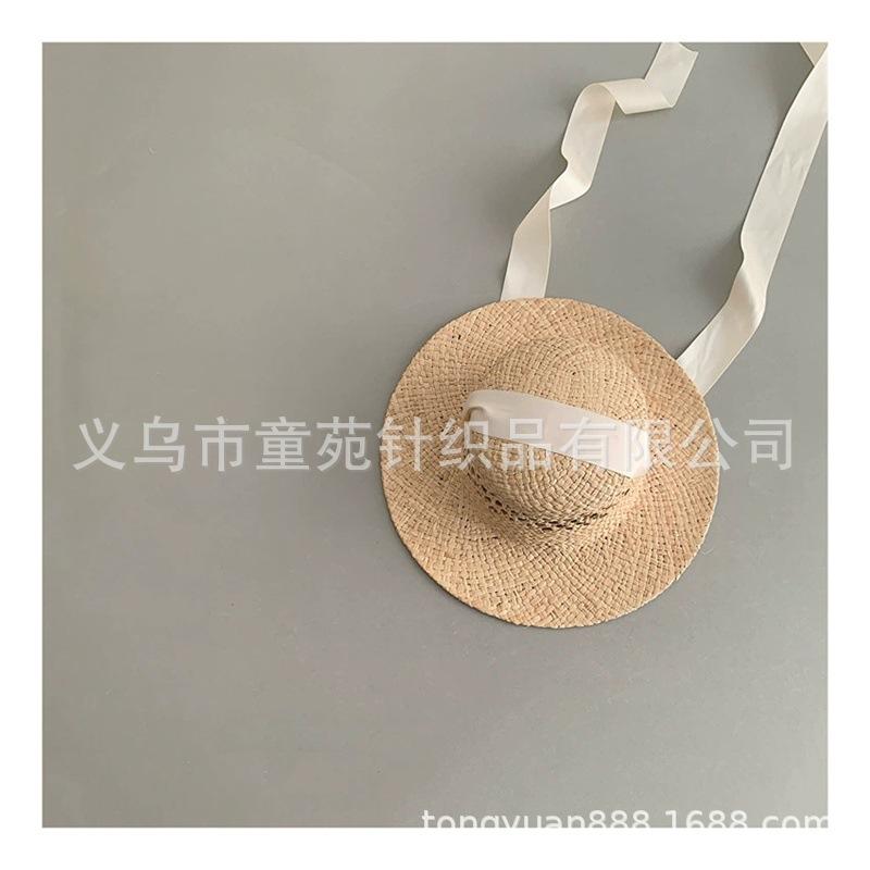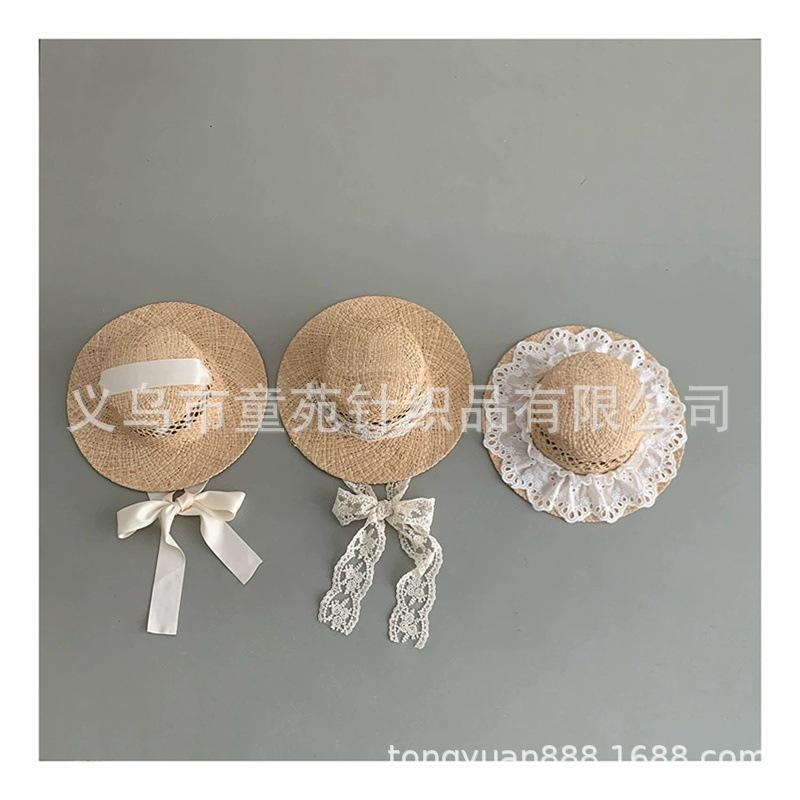 Nuevo sombrero de sol para niños, bonito sombrero de paja de primavera y verano, con cordones para niñas, sombrero de sol Hepburn Wind