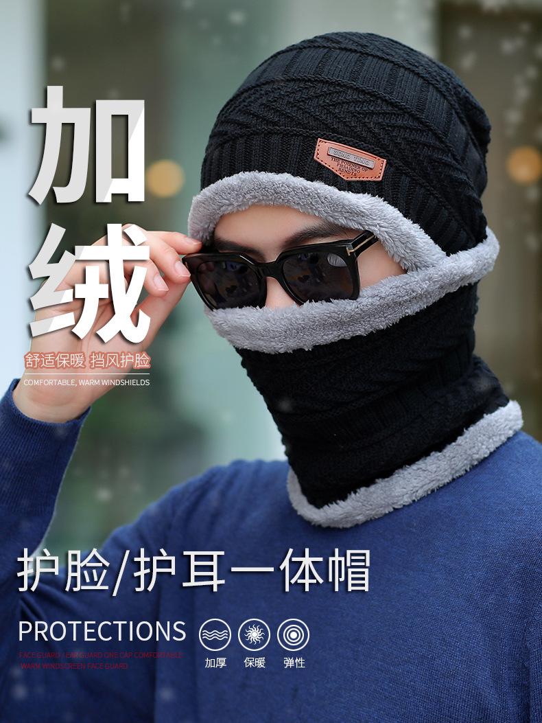Compra Gorro de invierno para hombre, cálido y grueso, de lana tejida, de algodón y polar, para otoño e invierno, con protección para el cuello y las orejas, resistente al frío. al por mayor en Joom.pro