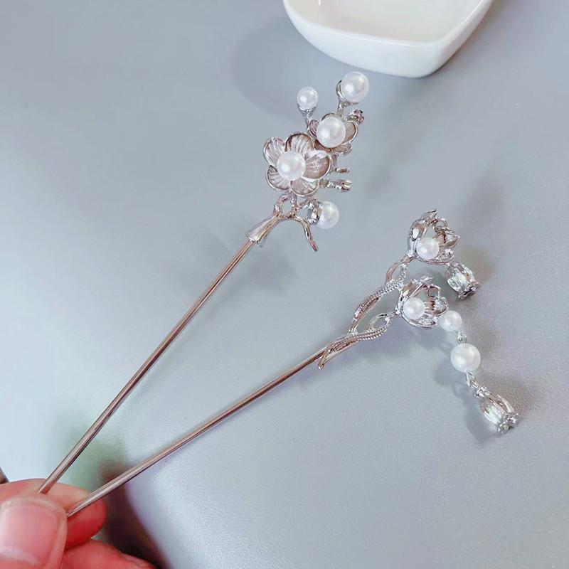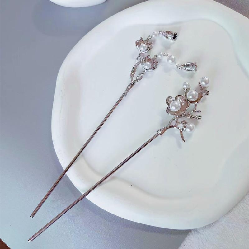 Horquilla con diseño de flor antigua, estilo Hanfu moderno, borla de metal para uso diario, accesorios clásicos para el cabello, horquilla de alta gama para mujer, estilo frío