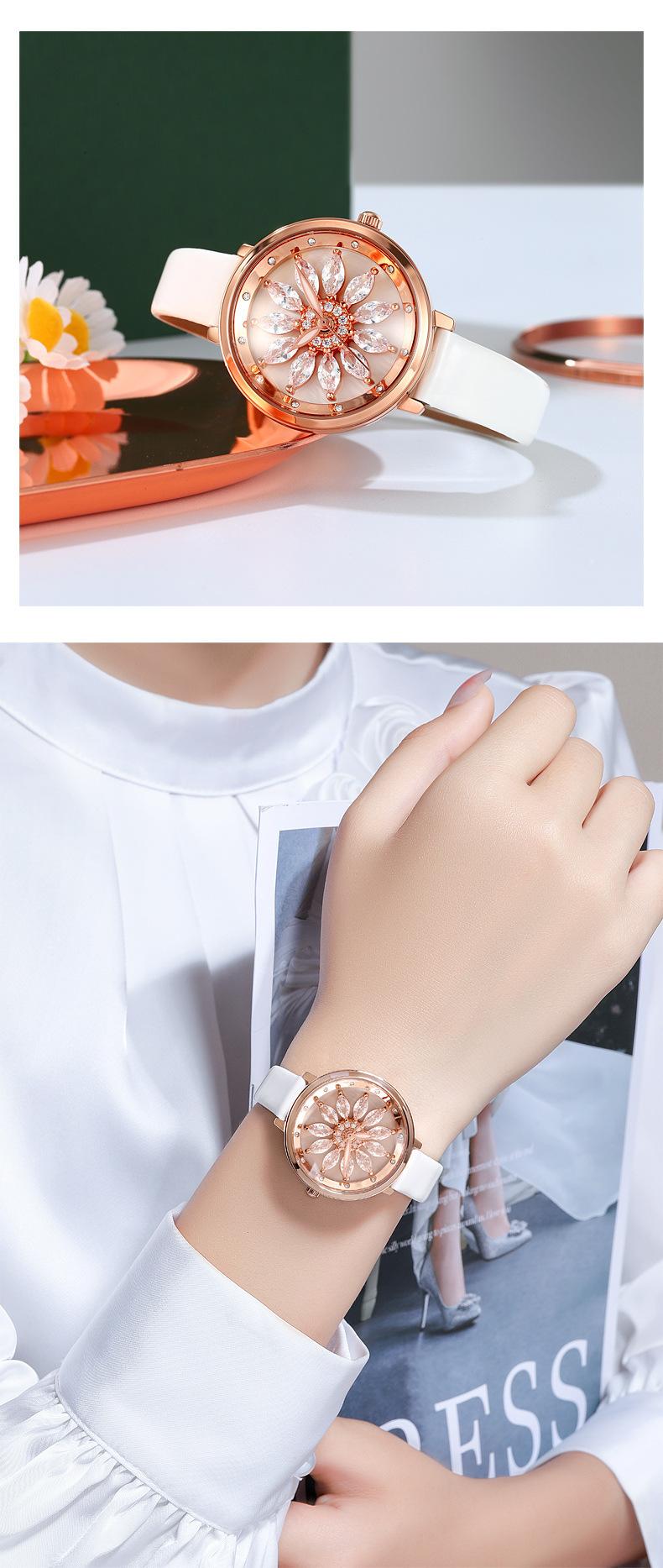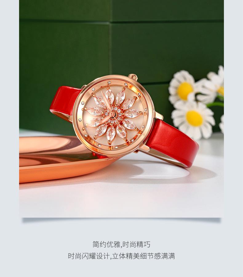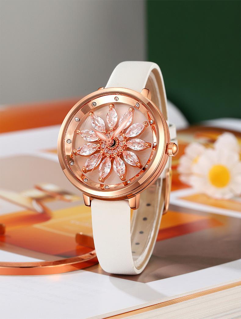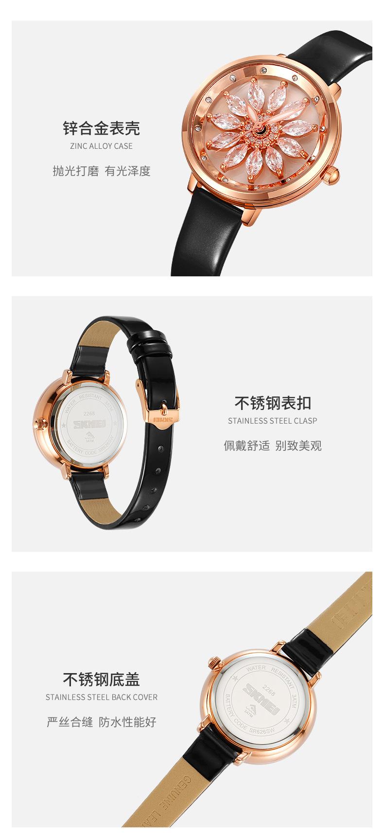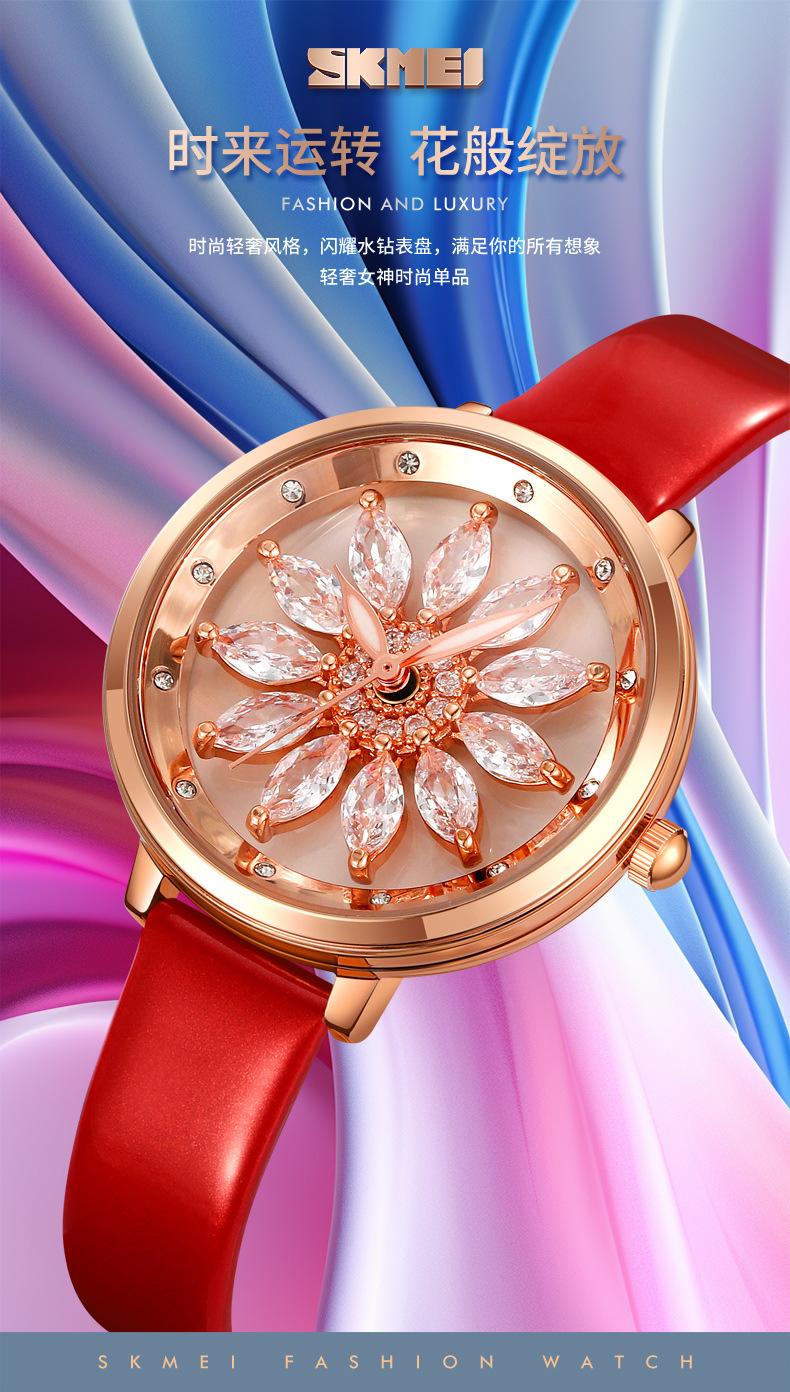 SKMEI Time Beauty Distintivo Creativo Dial de Diamantes Pétalos Giratorios Reloj de Cuarzo Moda Reloj de Mujer Versátil Reloj de Pulsera