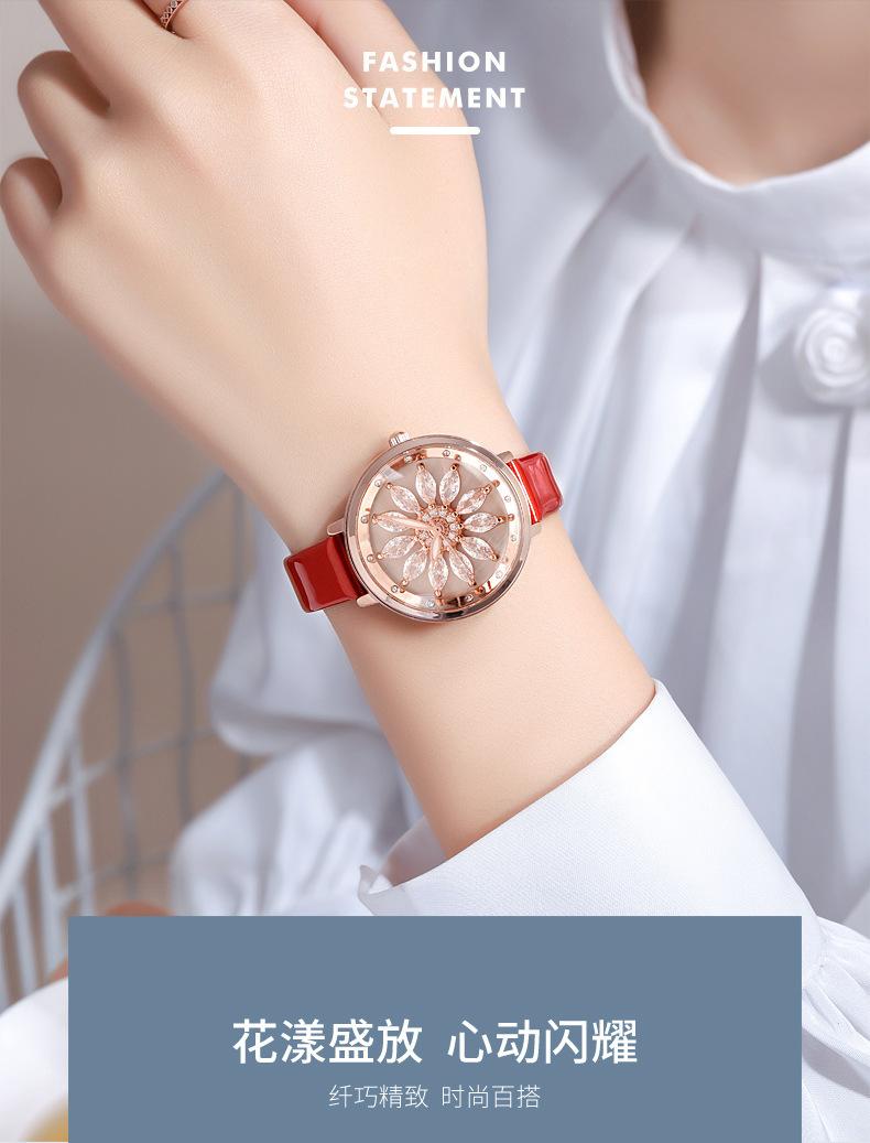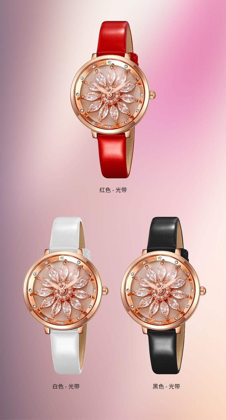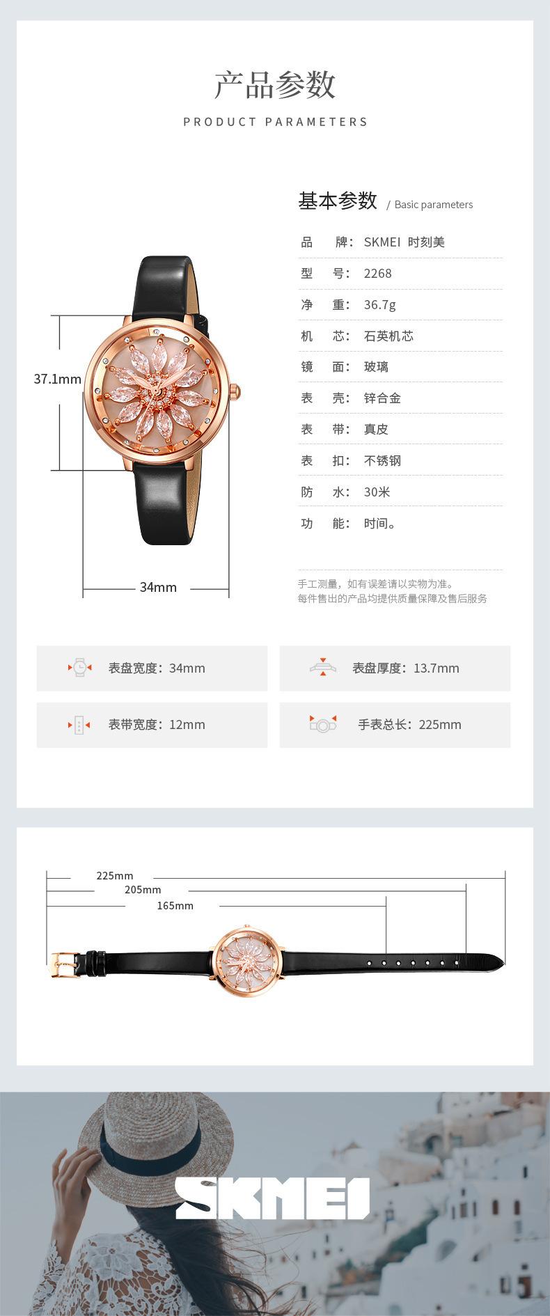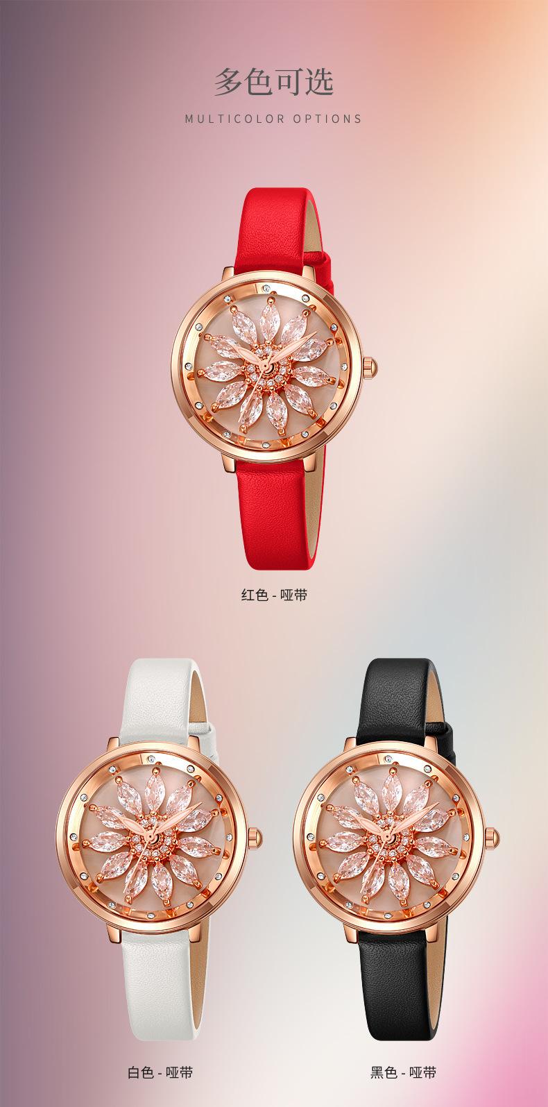 SKMEI Time Beauty Distintivo Creativo Dial de Diamantes Pétalos Giratorios Reloj de Cuarzo Moda Reloj de Mujer Versátil Reloj de Pulsera