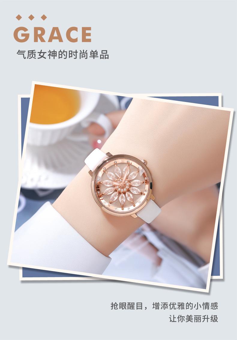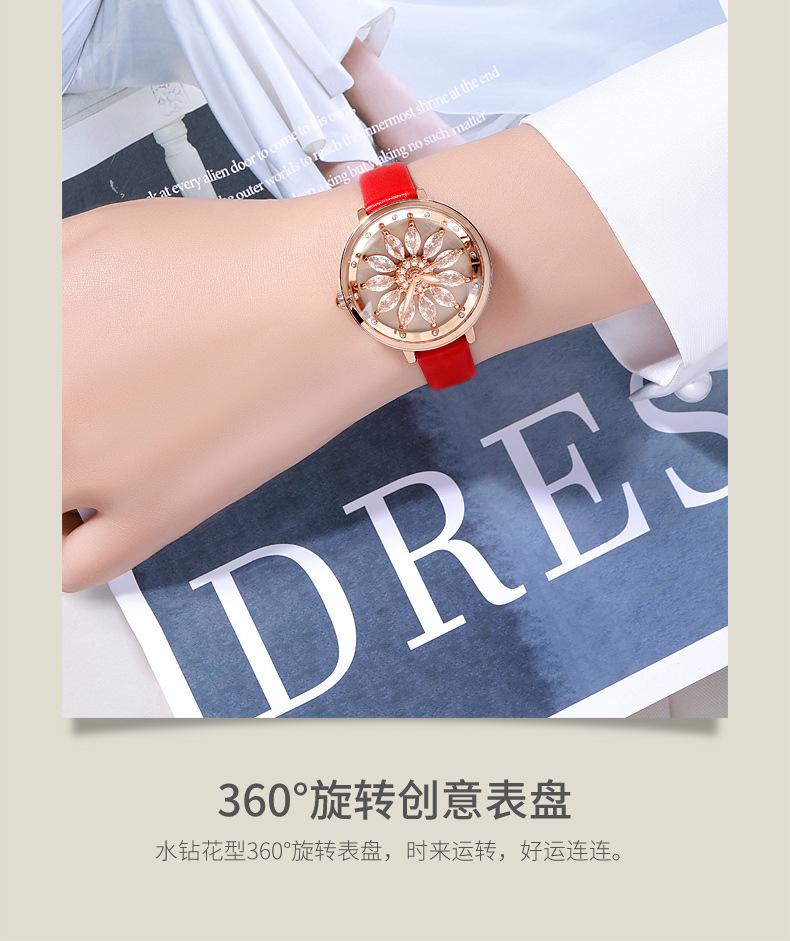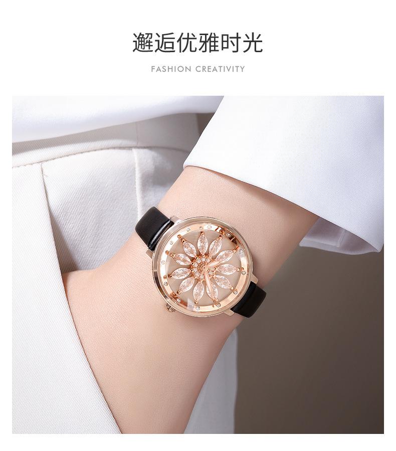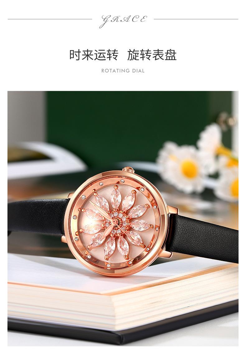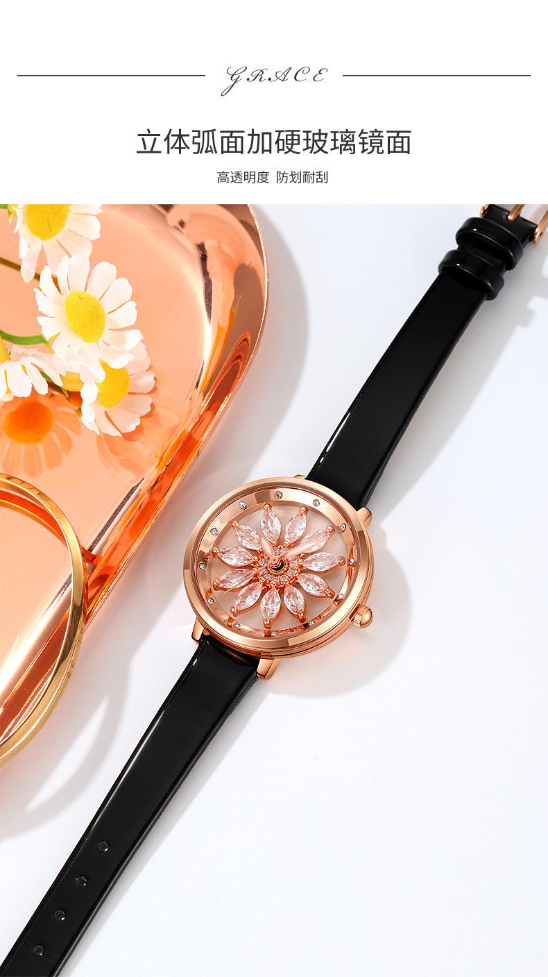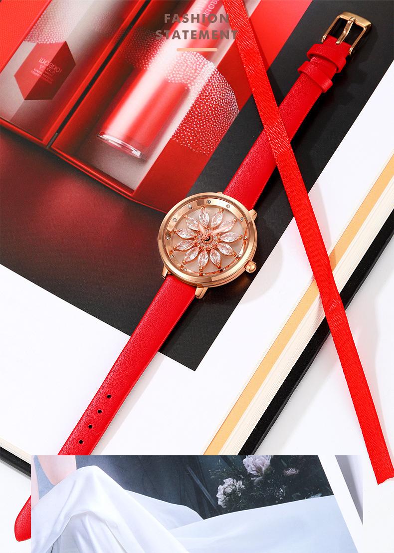 SKMEI Time Beauty Distintivo Creativo Dial de Diamantes Pétalos Giratorios Reloj de Cuarzo Moda Reloj de Mujer Versátil Reloj de Pulsera