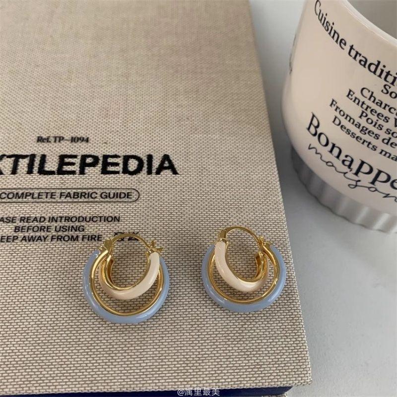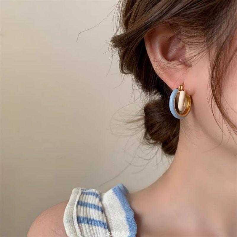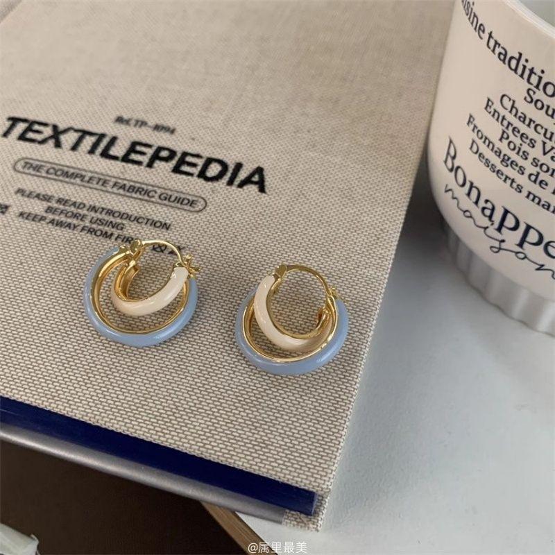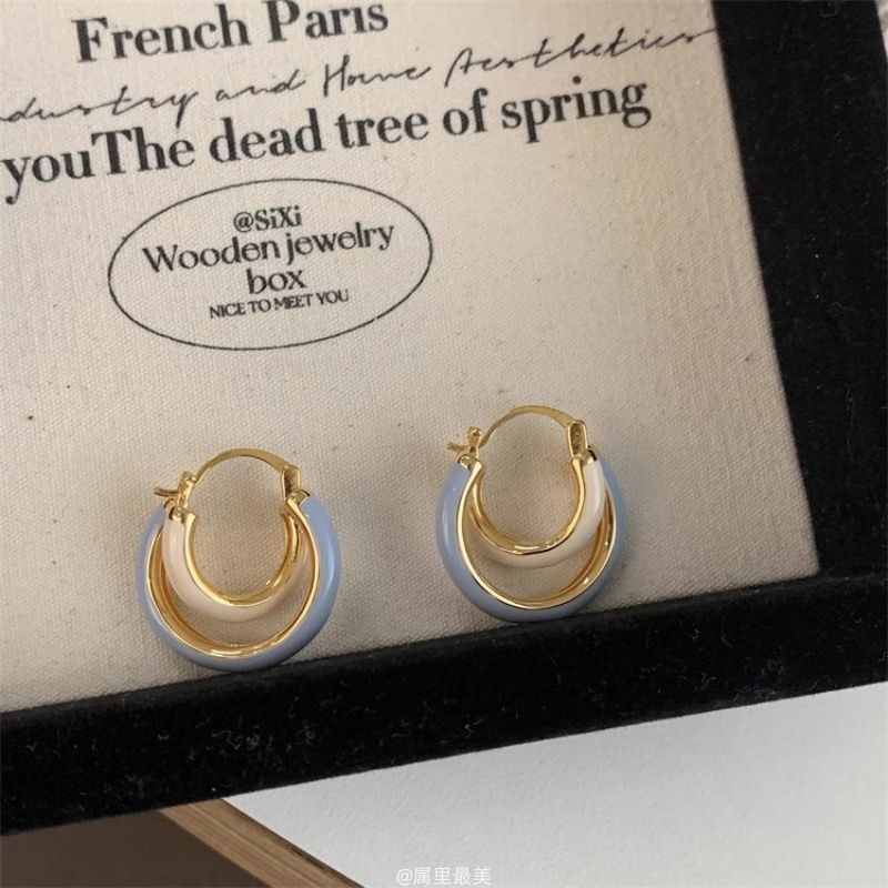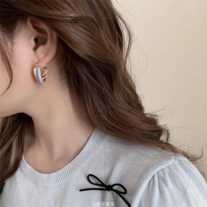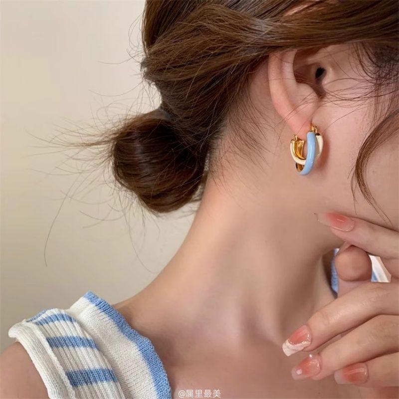 Aretes colgantes vintage de moda de primavera y verano azul agua con aceite goteado 2025 nueva explosión alto sentido arete nicho temperamento aretes