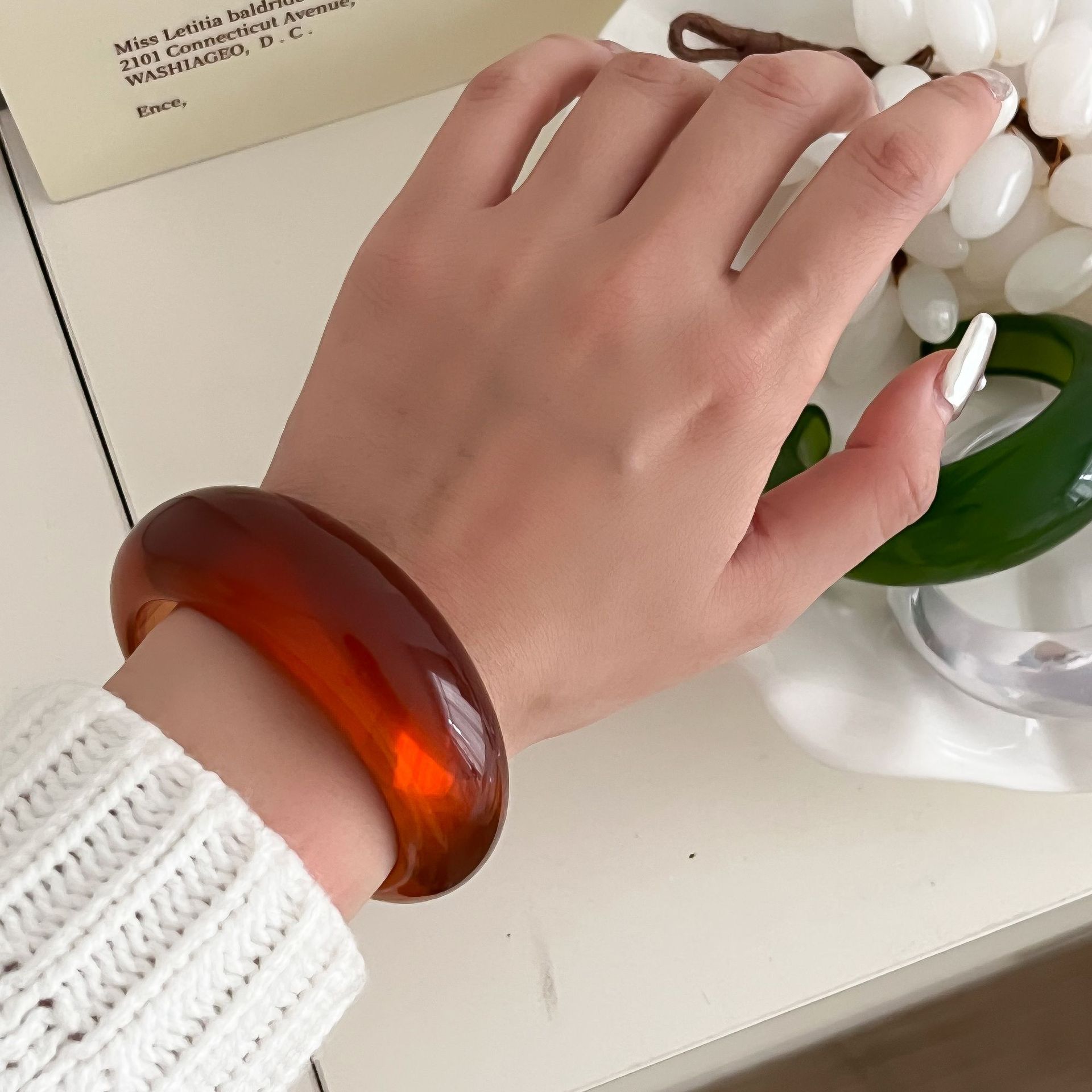 Pulsera de Resina de Venta Caliente Transfronteriza Moda Nicho Exagerada Pulsera de Temperamento Lujo Ligero Alta Gama Accesorios de Pulsera Combinables Mujer