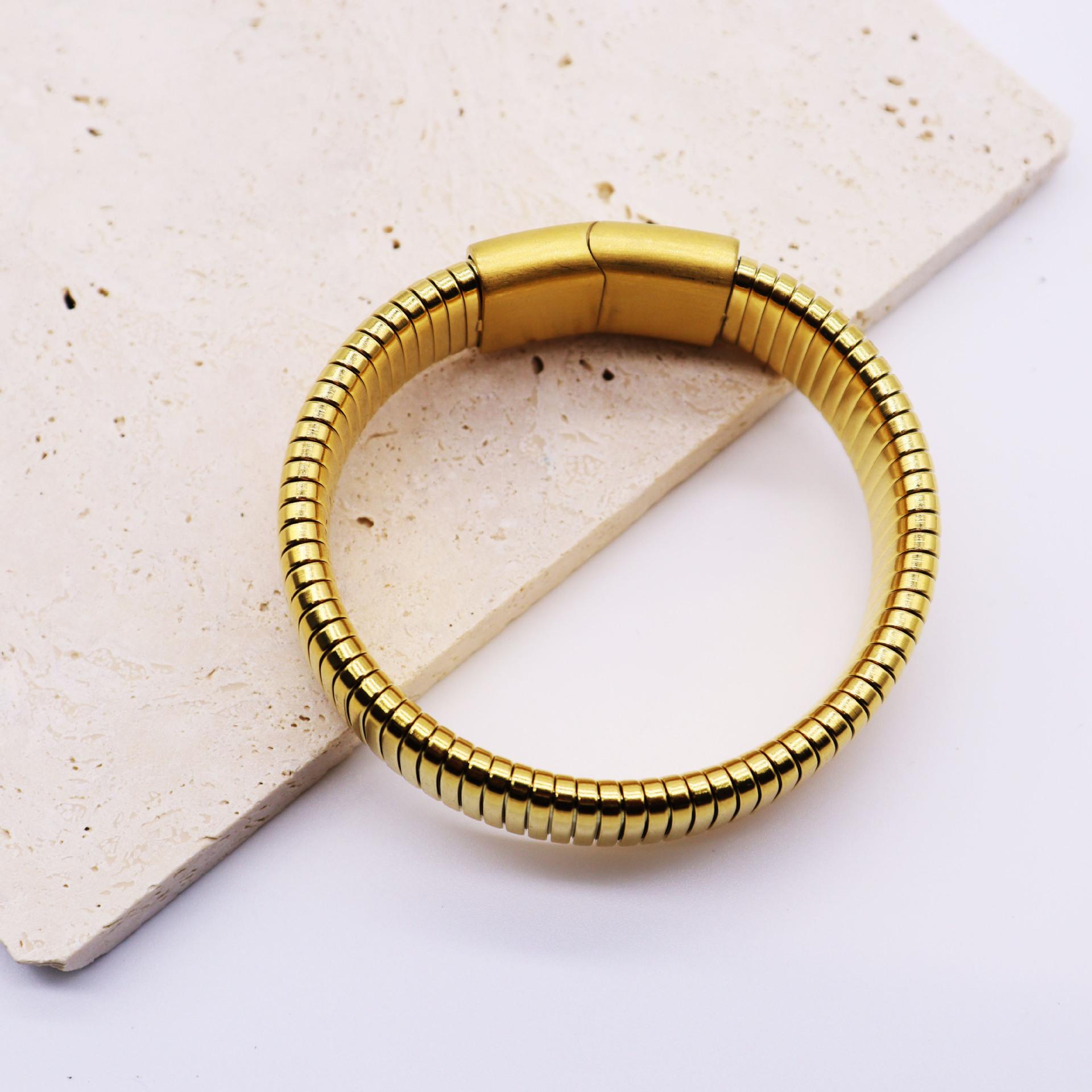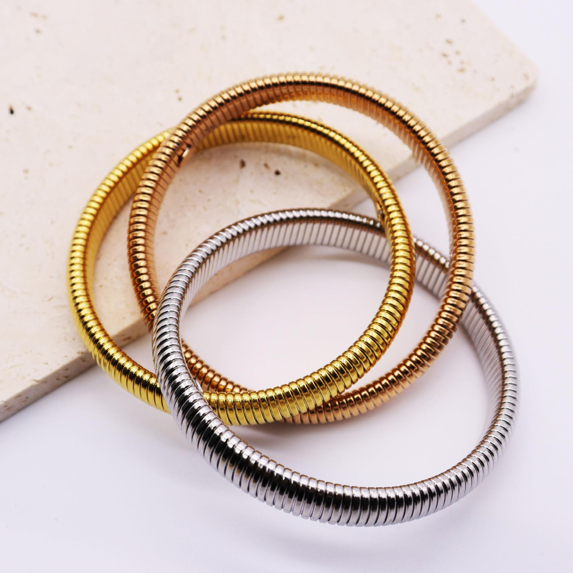 Pulsera Elástica Simple de Acero Inoxidable Transfronteriza Oro de 18K Pulsera de Resorte Joyería Unisex al Por Mayor
