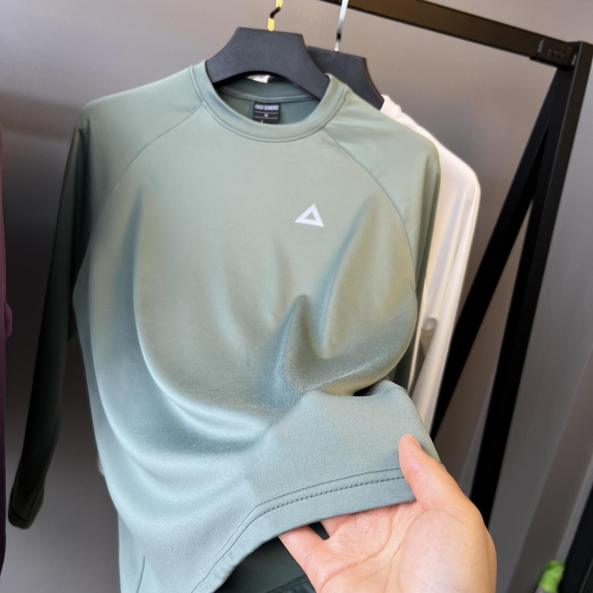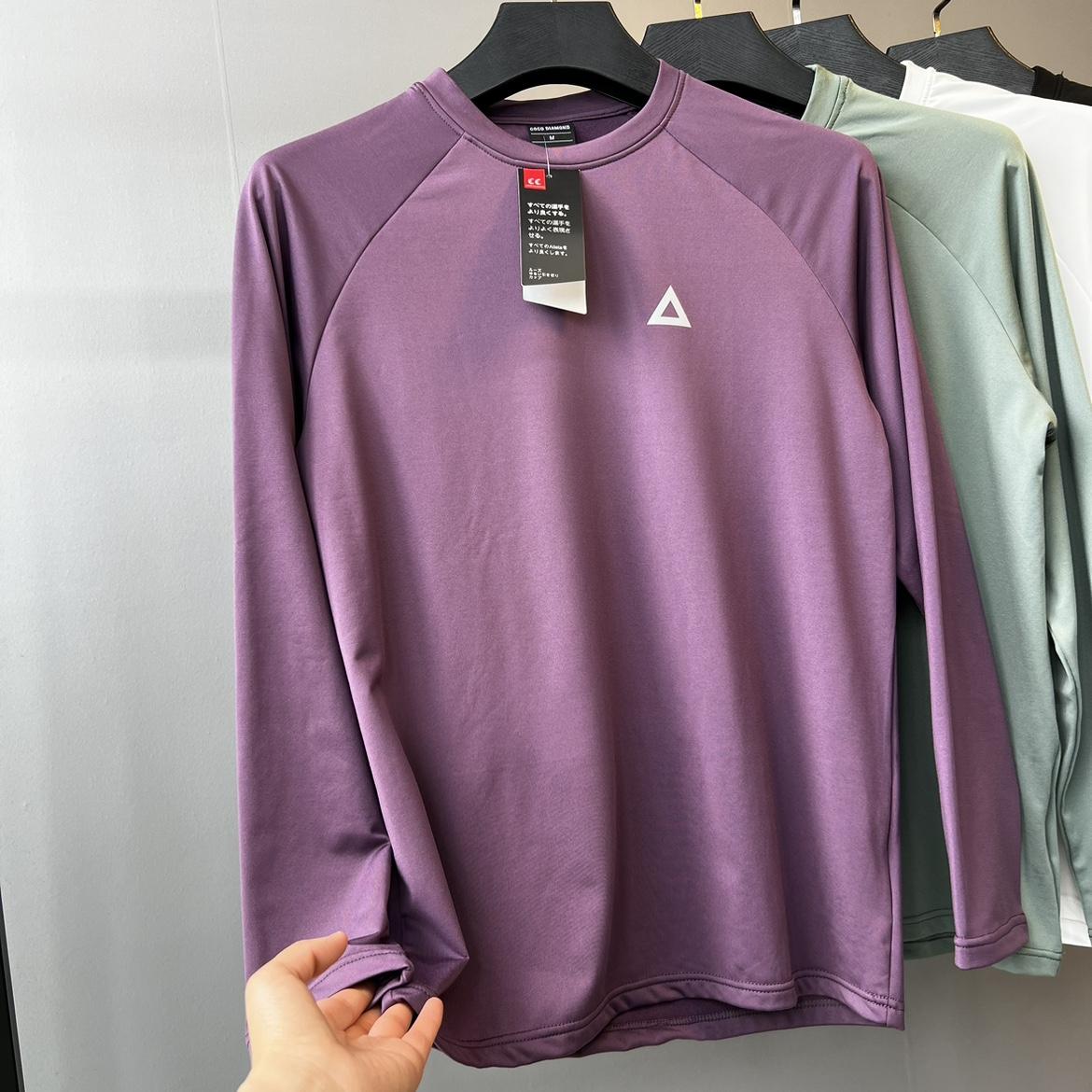 Comercio Exterior Lujo Ligero Primavera y Verano Camiseta Deportiva de Manga Larga de Cuello Redondo para Hombre de Color Sólido Base Jersey Protección Solar Transpirable