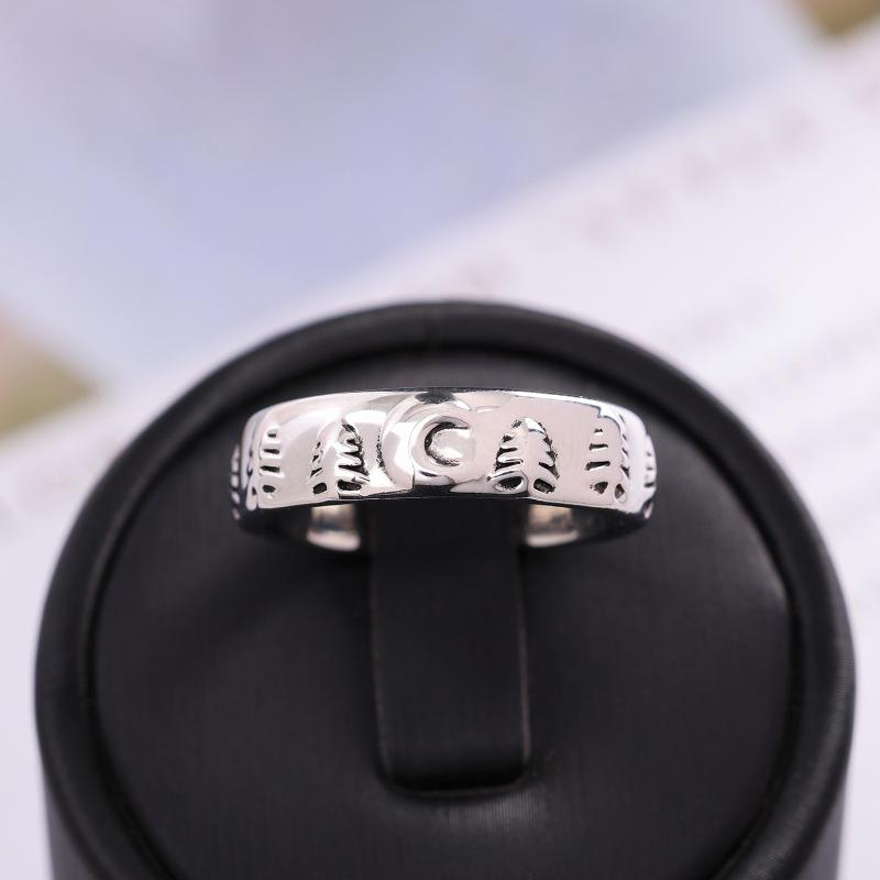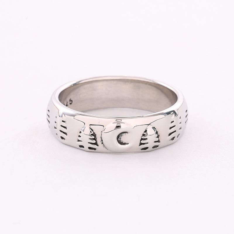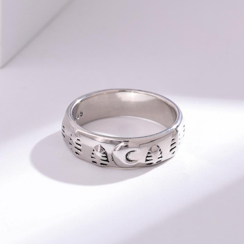 Anillo de Moda y Popular Simple Pino Luna Lobo Nuevo Diseño Creativo Belleza Natural del Bosque Anillo de Bronce Antiguo