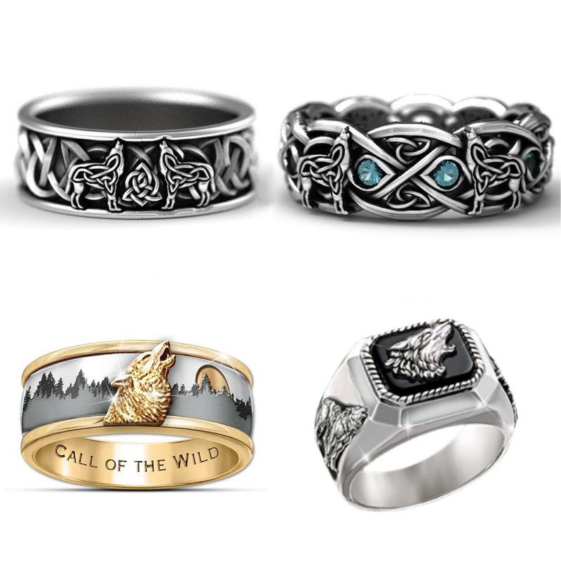 Celtic wolf topaz ring - copper, Electroplated two-tone timberwolves ring-alloy, Pine moon ring-copper, Copper...
