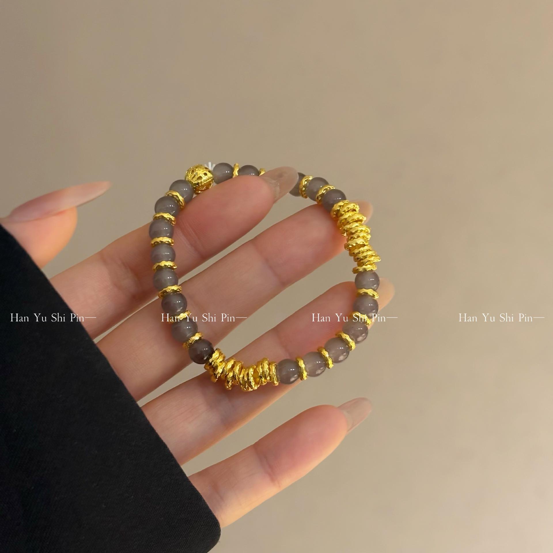 Pulsera elástica con cuentas de cristal gris fresco chino "Little Red Riding Book"