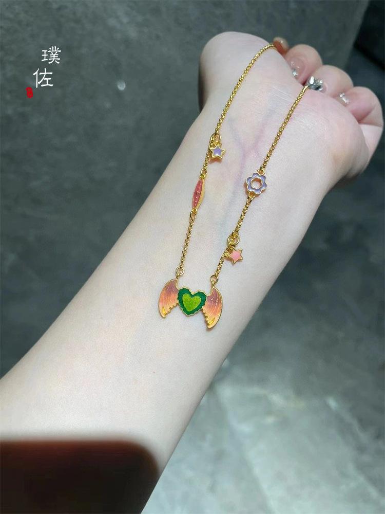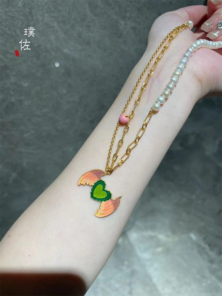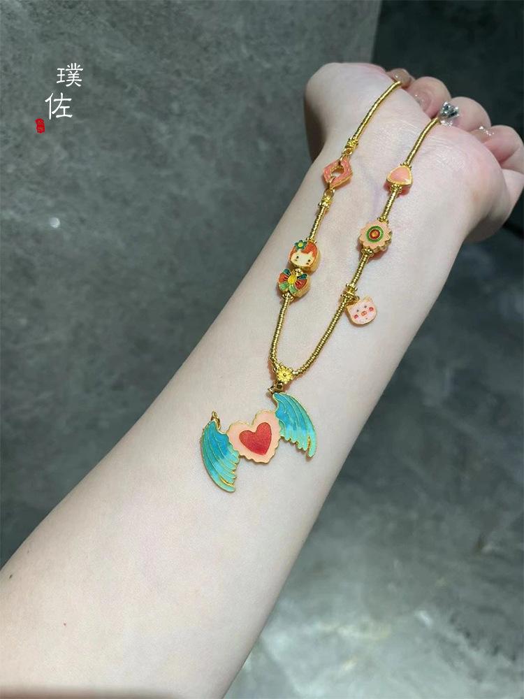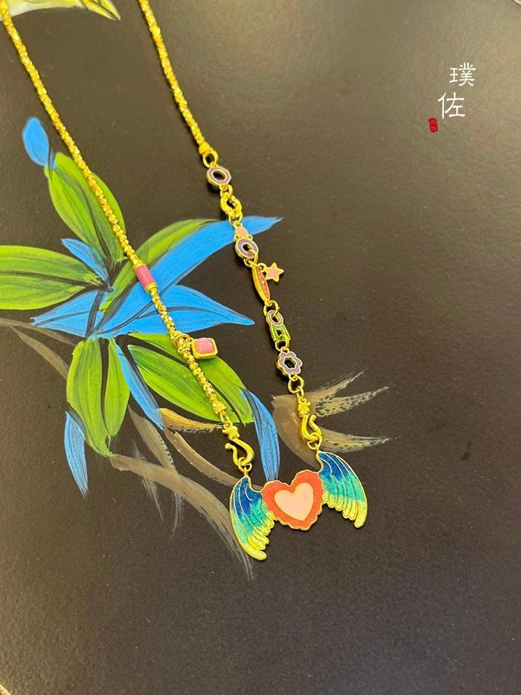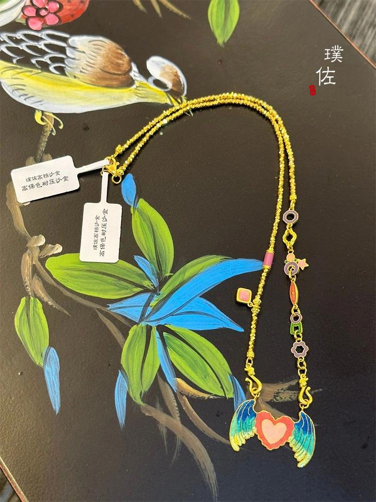 Tienda de oro mismo estilo arena Oro Cincel grabado no-legado alta temperatura quema mineral azul alas invisibles colgante accesorios diy collar