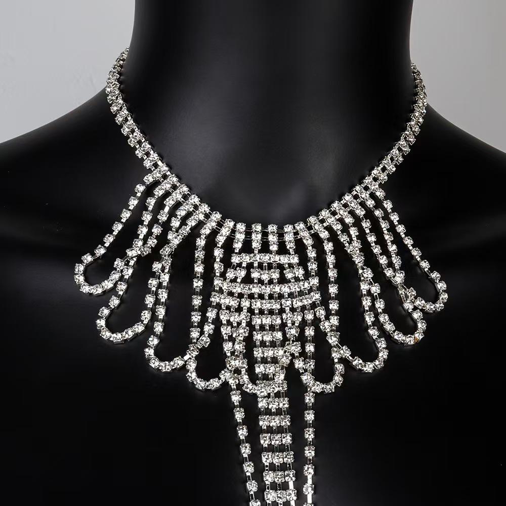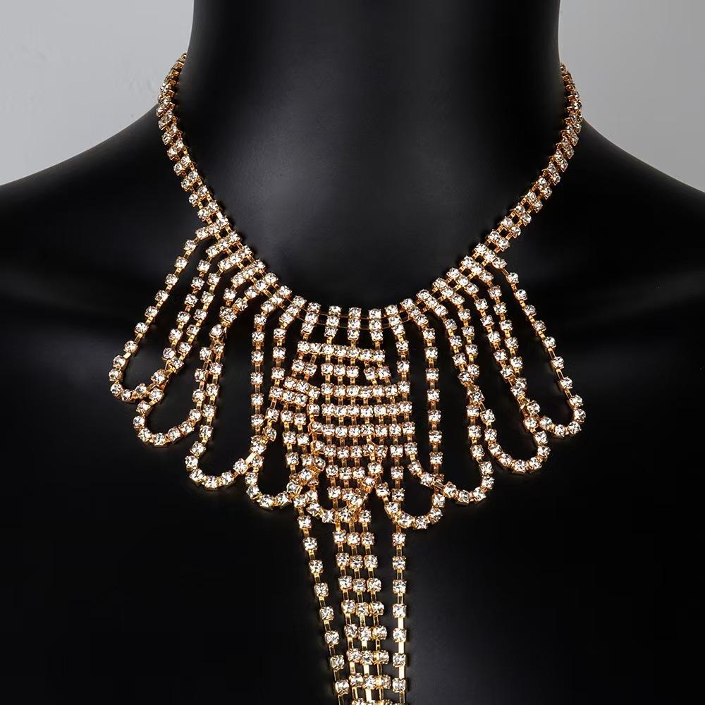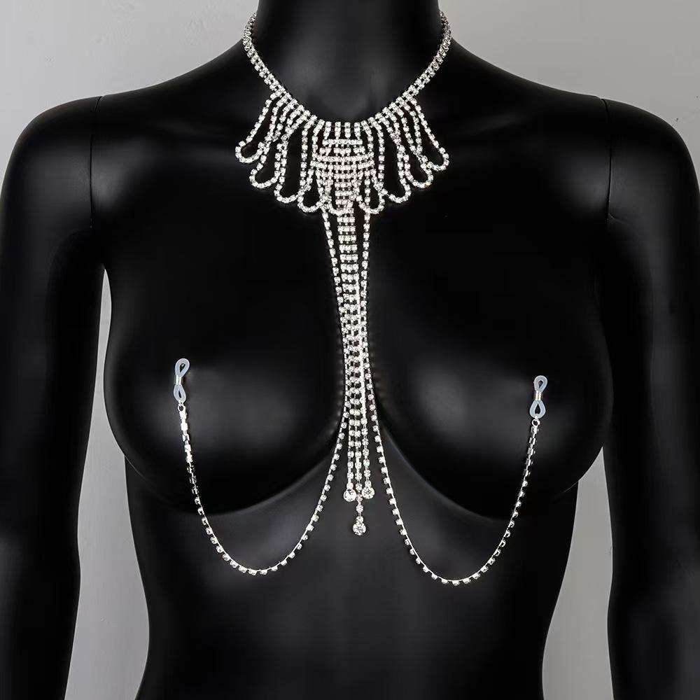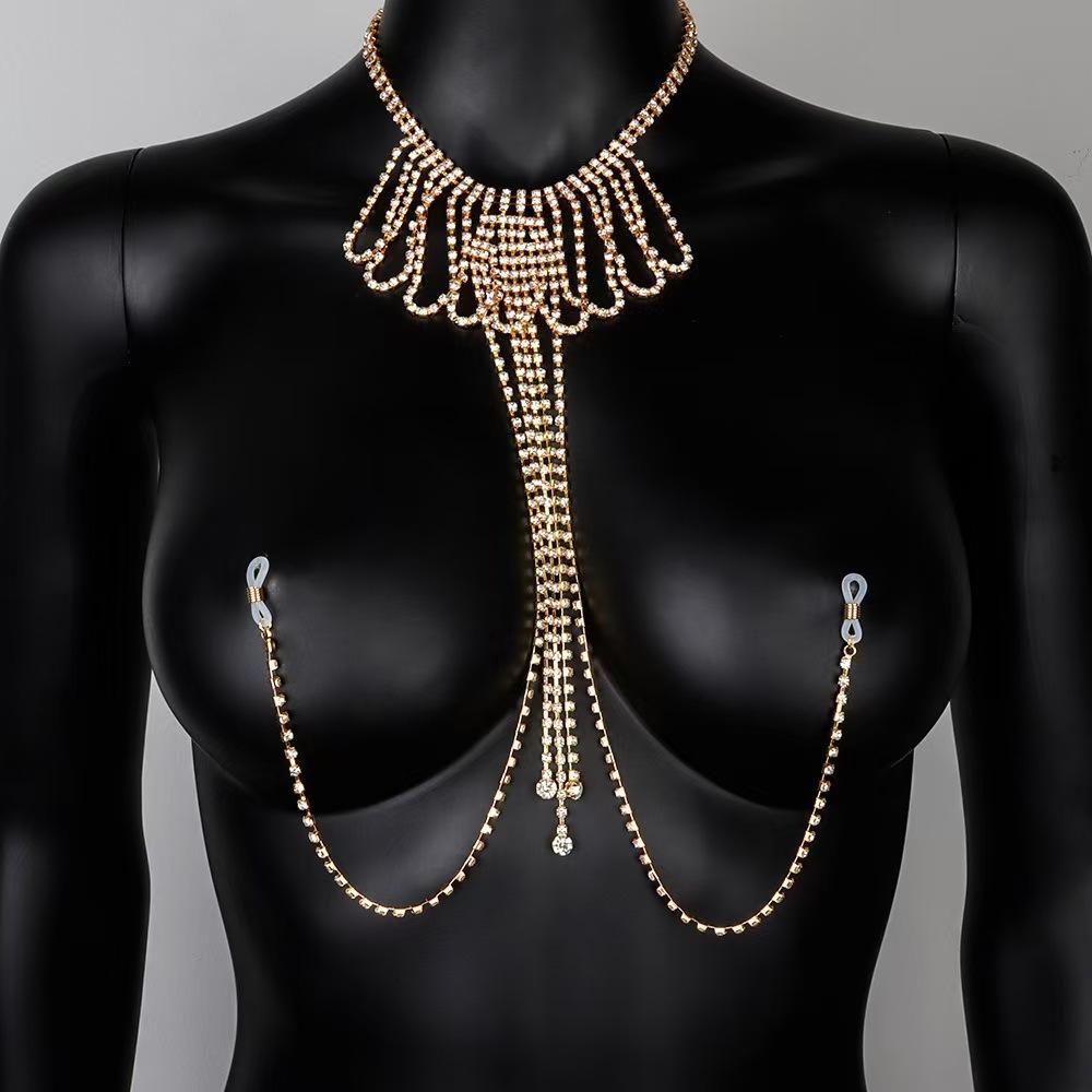 Cadena para el cuello con borlas y diamantes de imitación para mujer, accesorio divertido para adultos, estilo transfronterizo europeo y americano