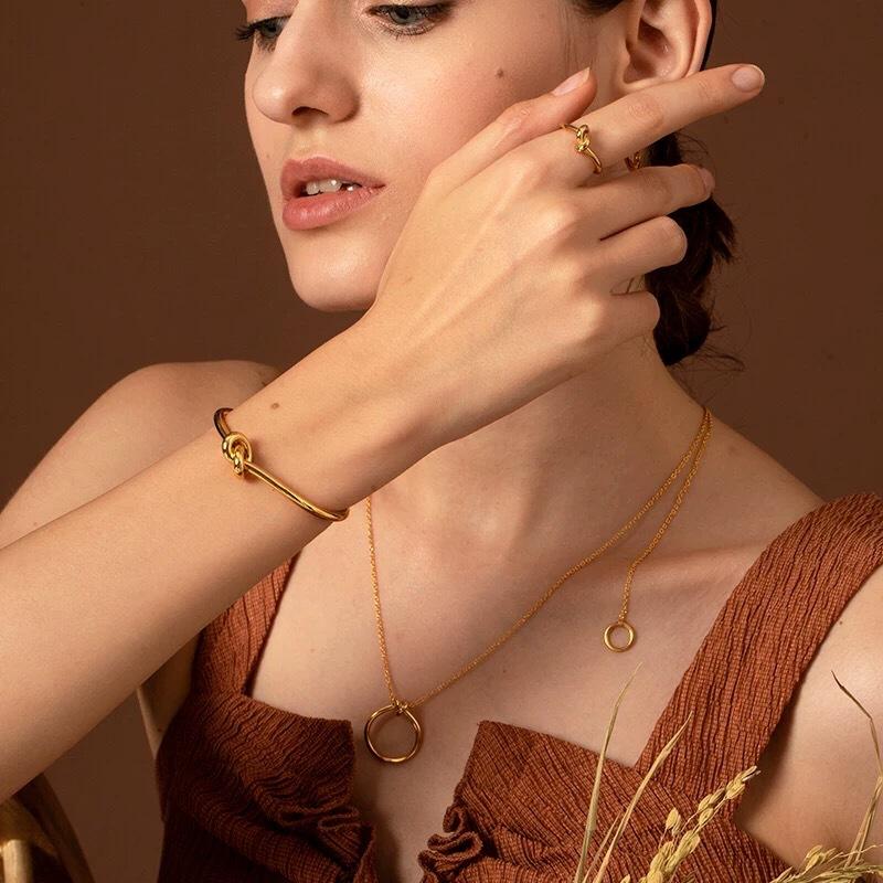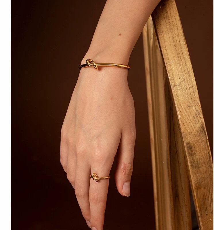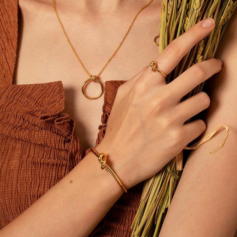 Pulsera Nudada de Estilo Simple Europeo y Americano Nuevo Pulsera Creativa Abierta Pulsera de Latón Chapada en Oro Pulsera