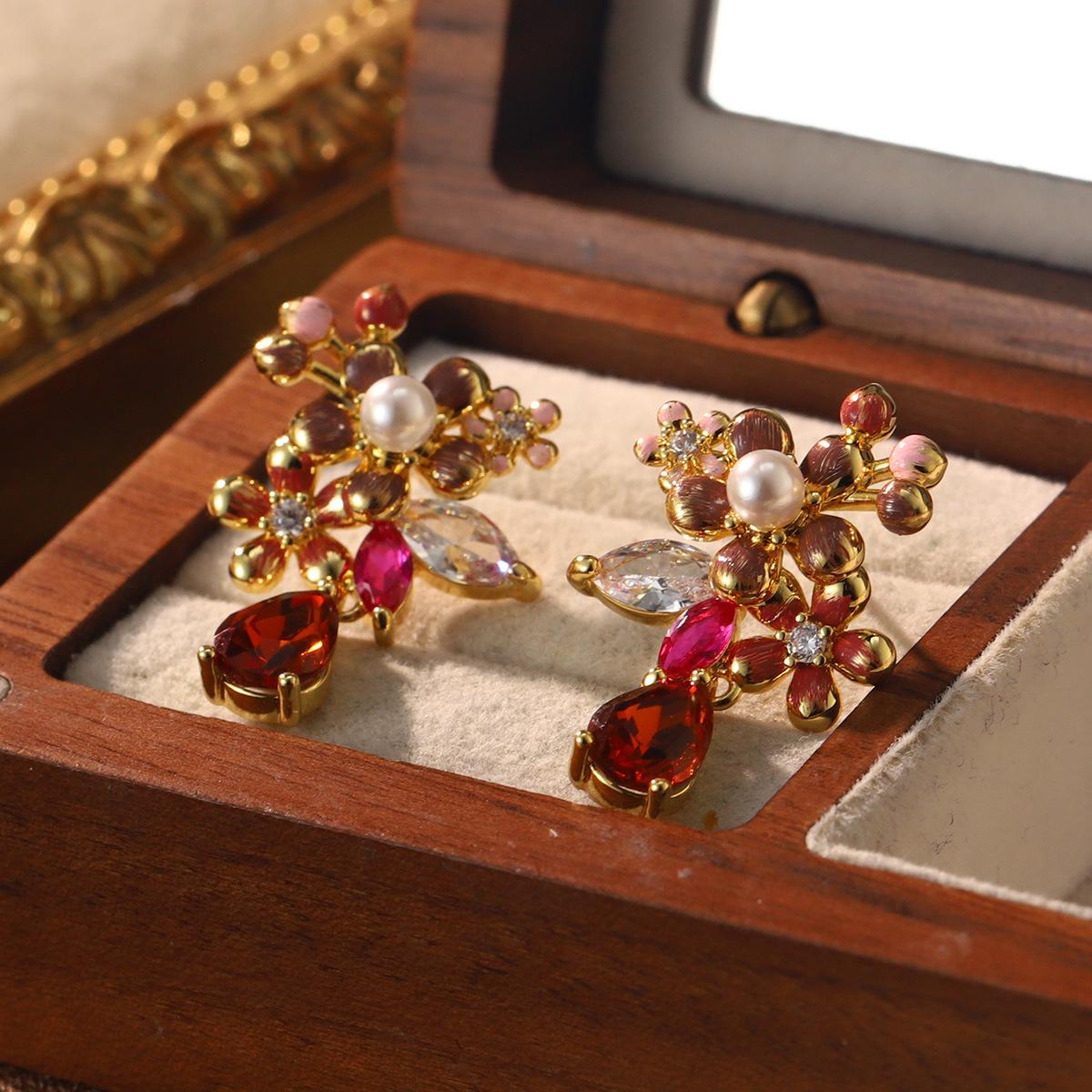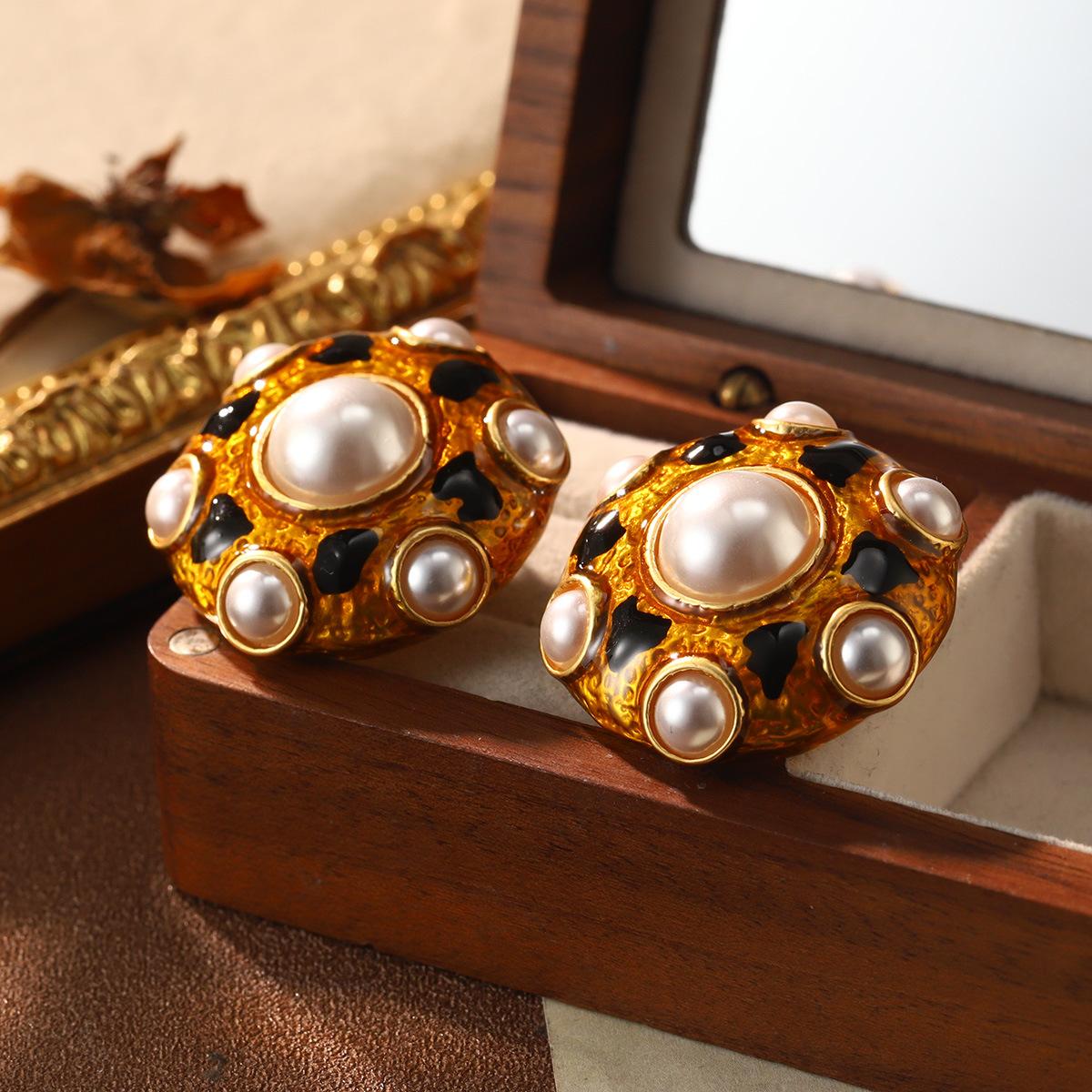 Aretes artísticos retro medievales vintage de perlas estilo palaciego moda temperamento gota aretes color aceite al por mayor mujeres