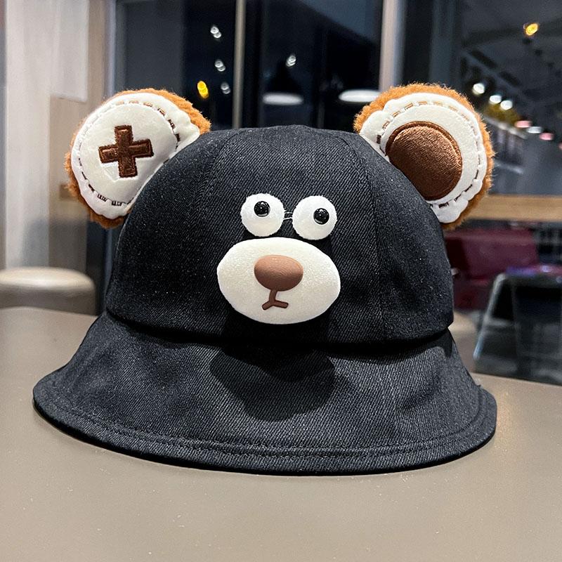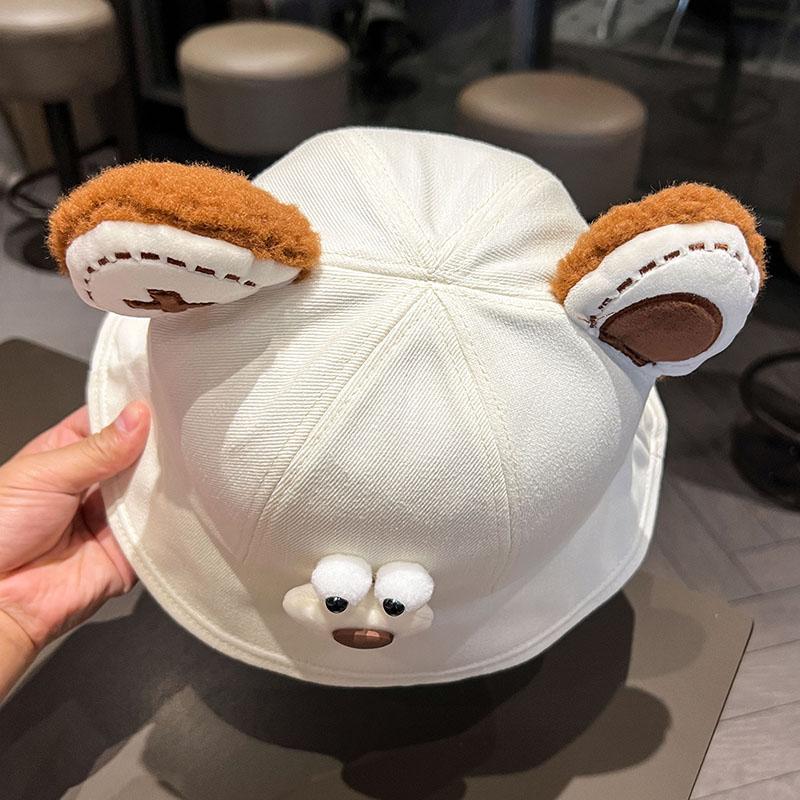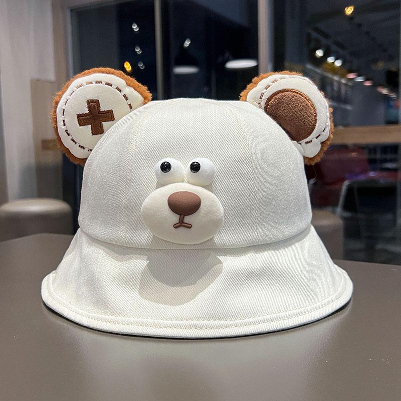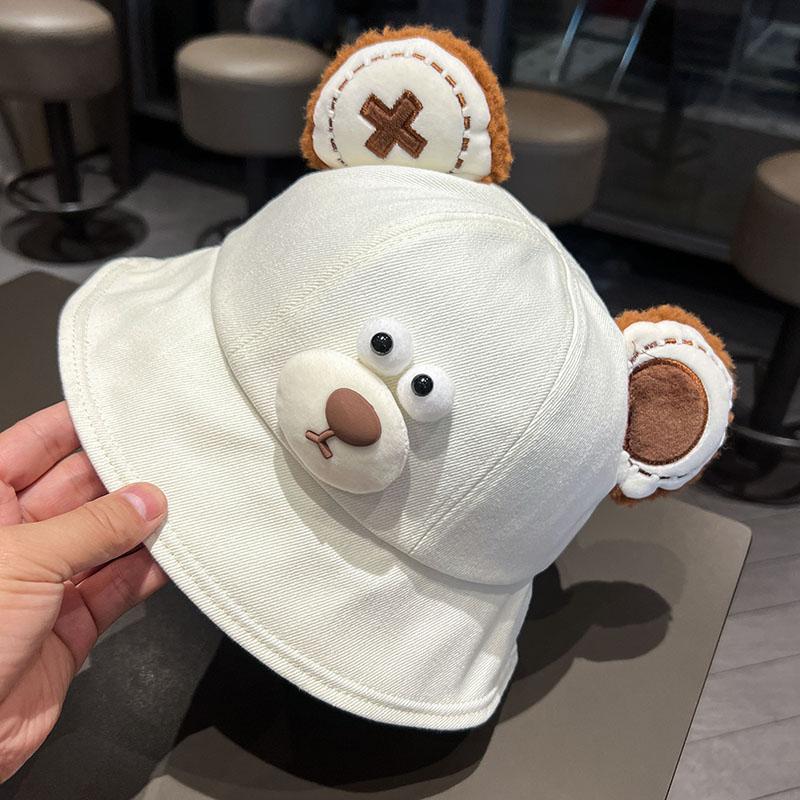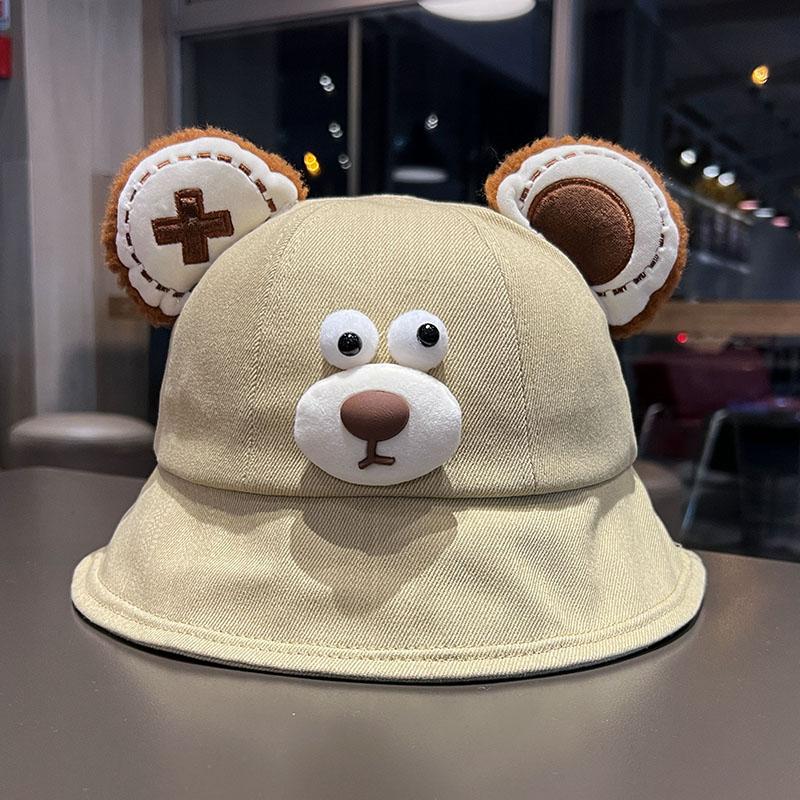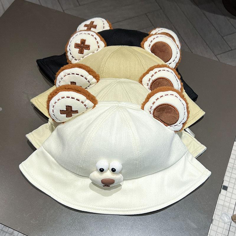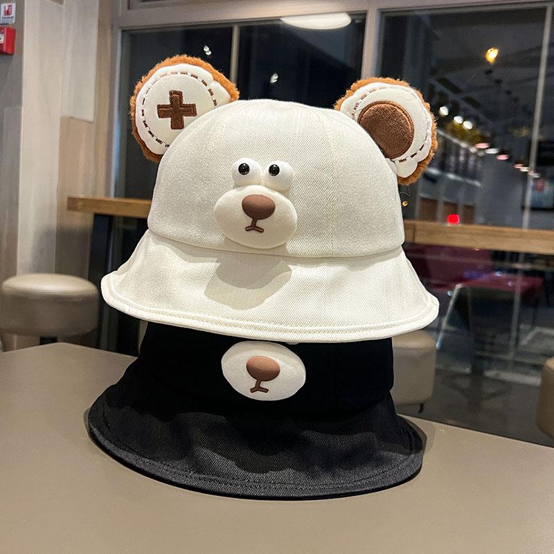 Sombrero de pescador de oso de dibujos animados de estilo japonés, primavera y otoño 2024, nuevo estilo, sombrero para el sol pequeño y versátil que muestra la cara, sombrero de lavabo para estudiantes de estilo K