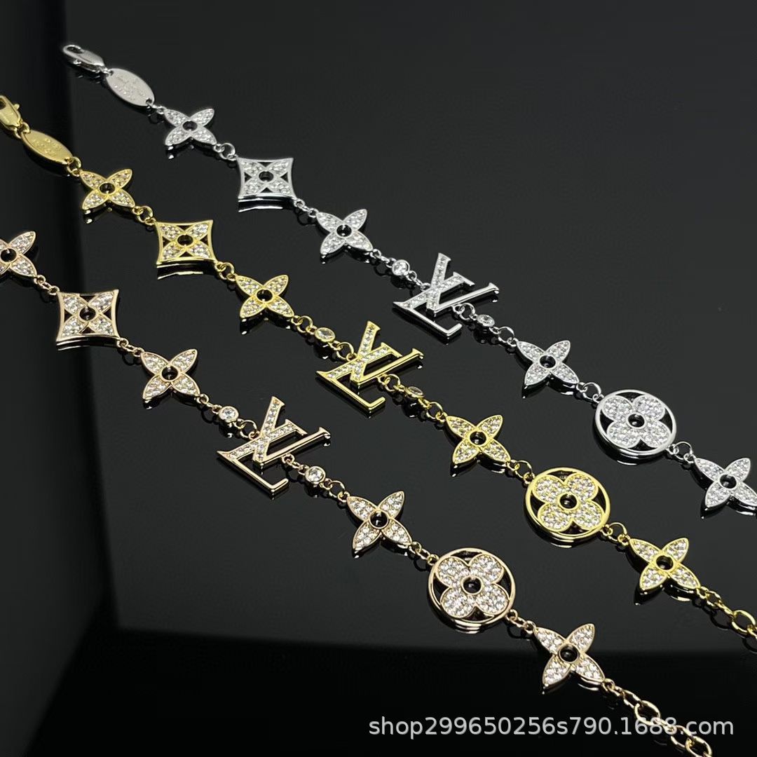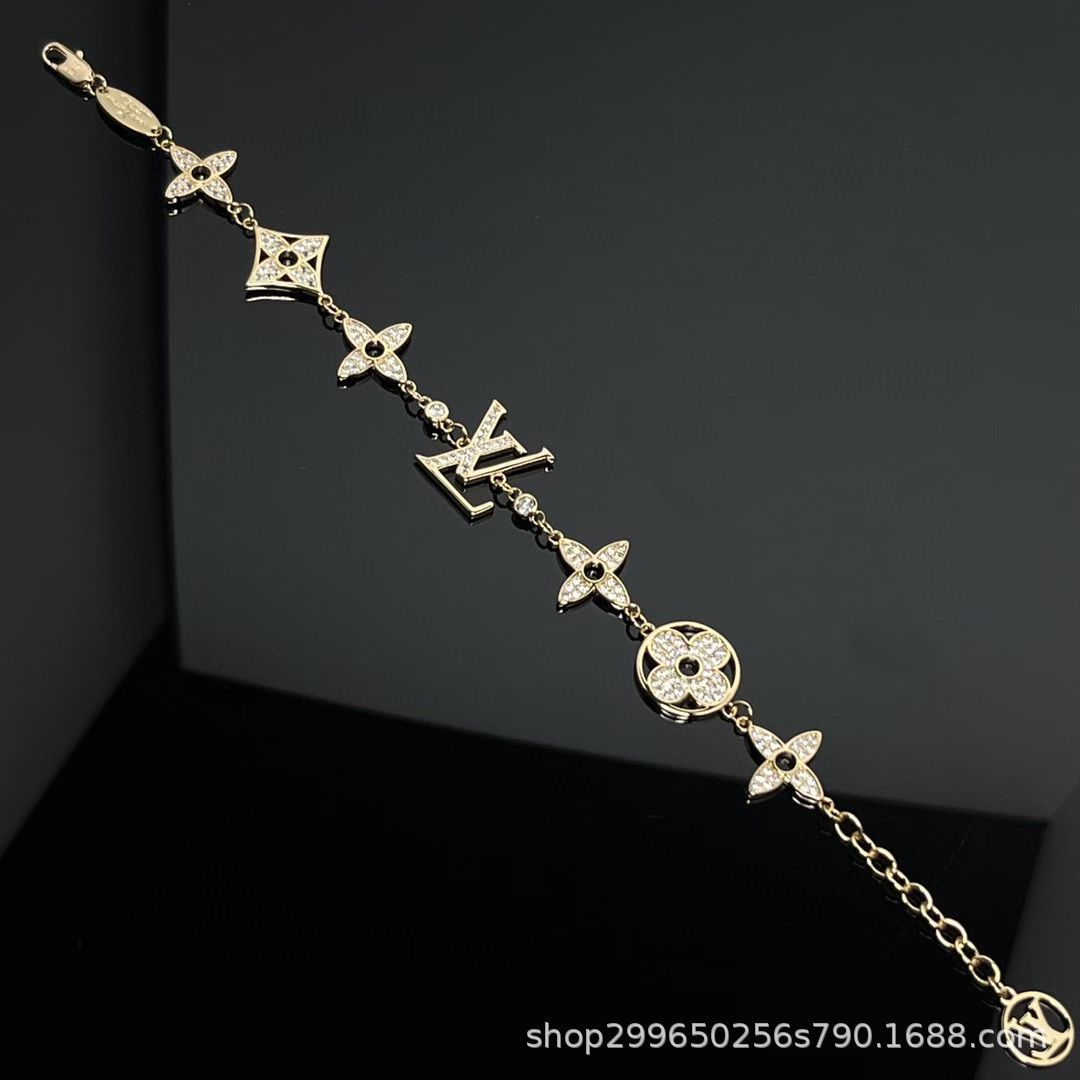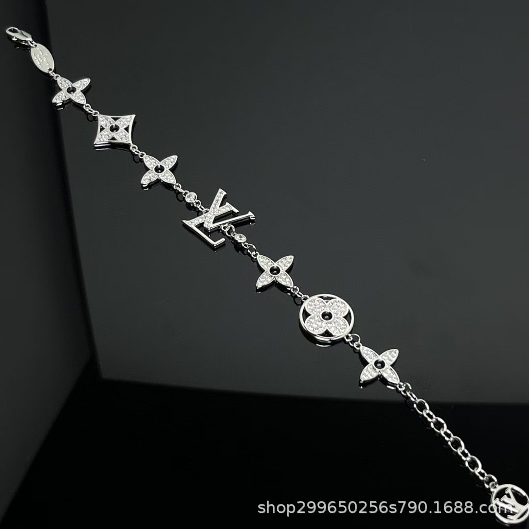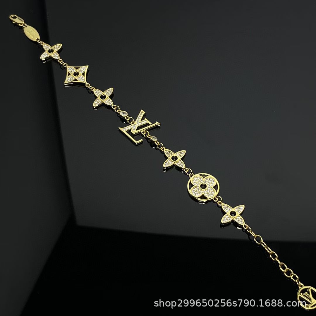 Pulsera de flores con letras huecas de marca de moda, pulsera versátil exquisita, pulsera de múltiples flores simple y de moda