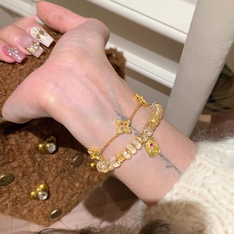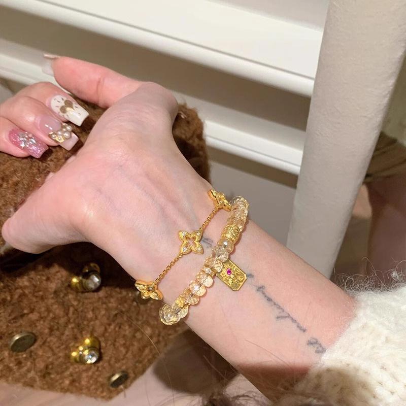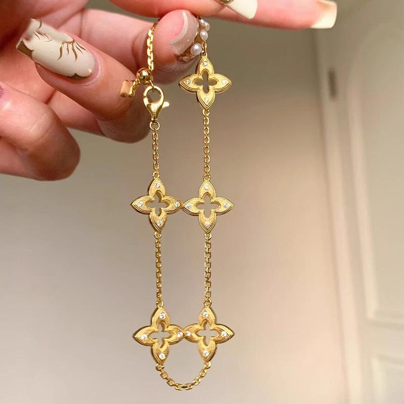 Pulsera de Hojas Cepilladas Huecas de Diamante para Mujer Chapada en Oro Pulsera Crucífera de Diamantes Lujo Ligero Alta Gama Apilada Pulsera para Usar