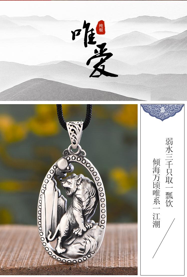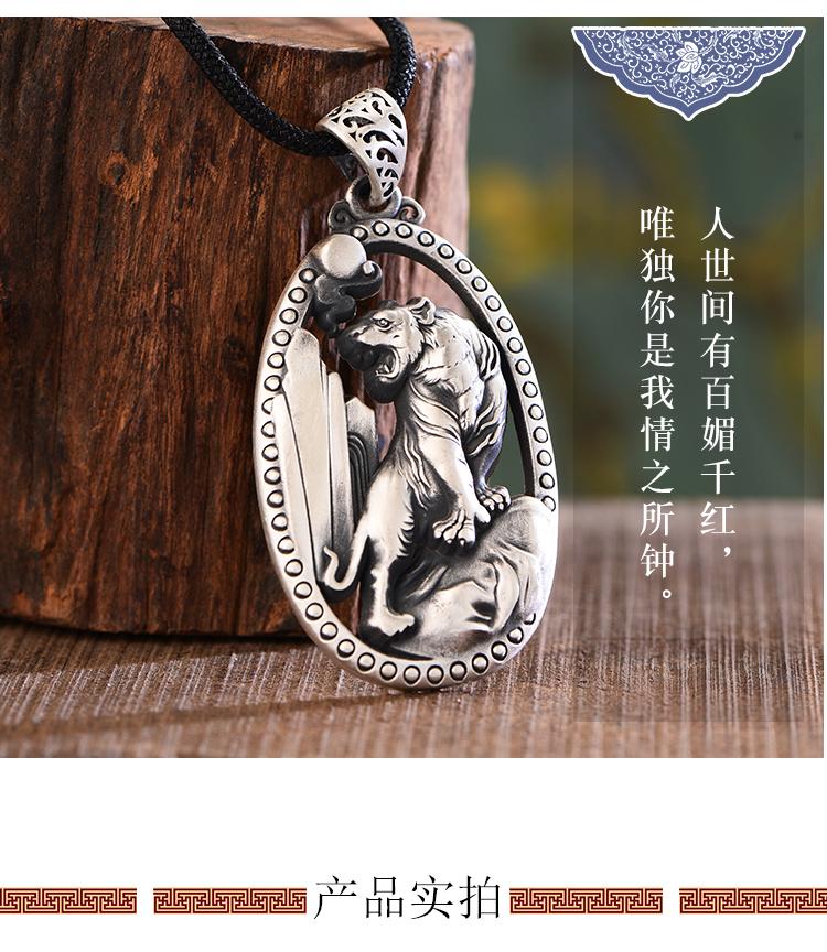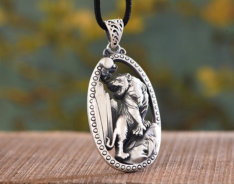 Pie Plata 999 Colgante de Cabeza de Tigre Agresivo para Hombre Personalizado Moderno Colgante de Tigre Blanco Retro Colgante de Plata Esterlina para Regalos de Novio