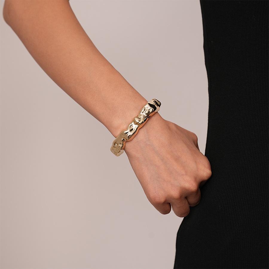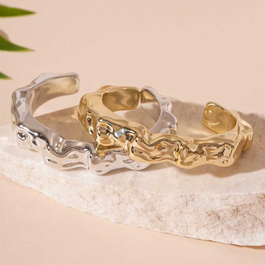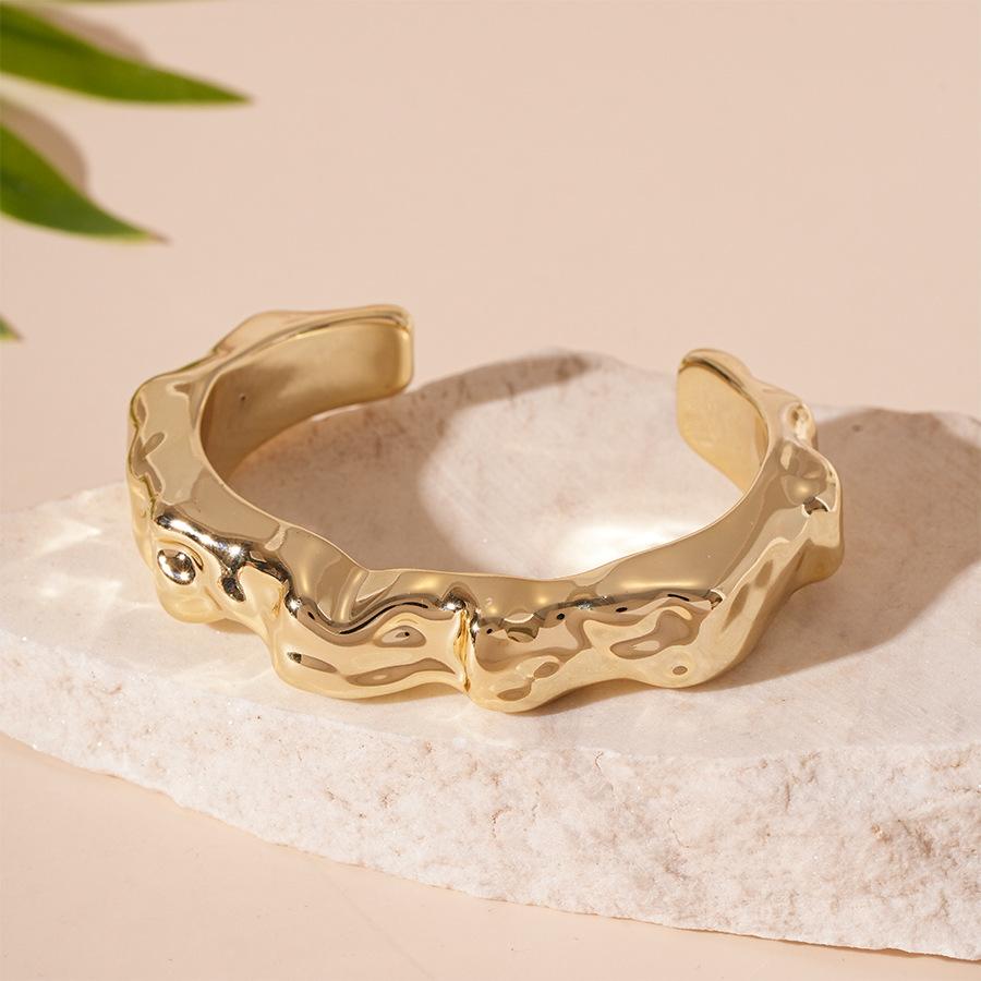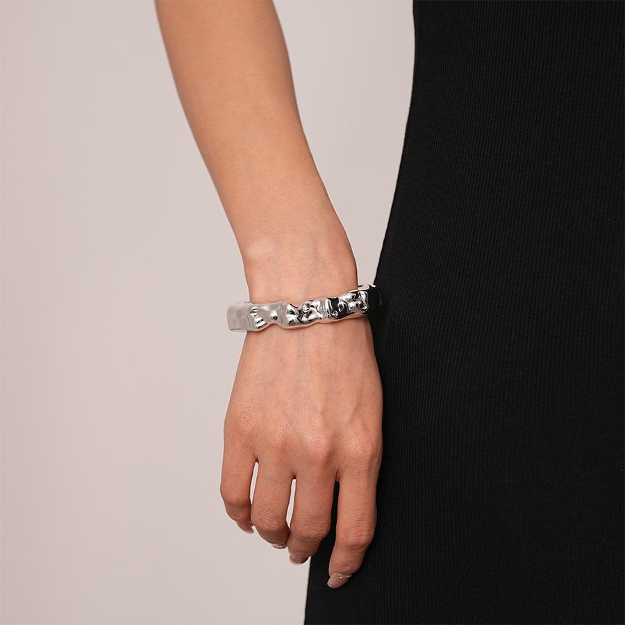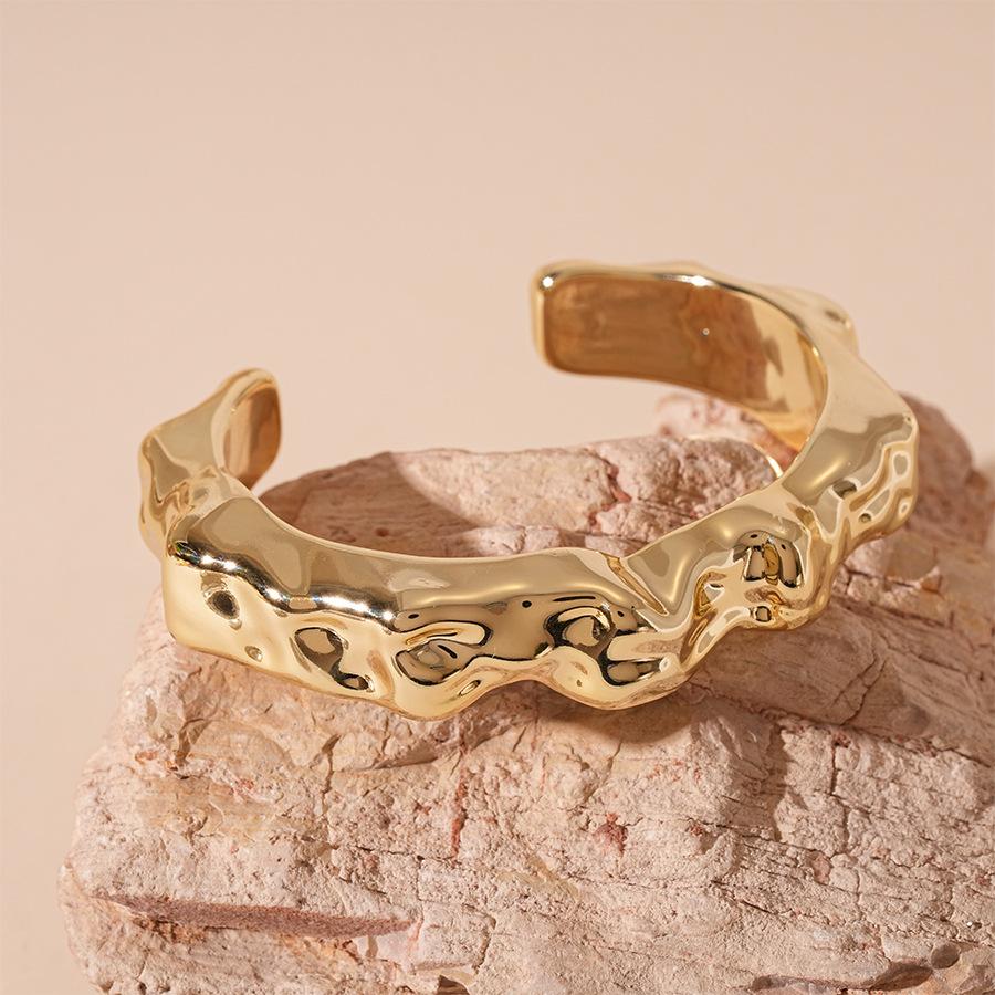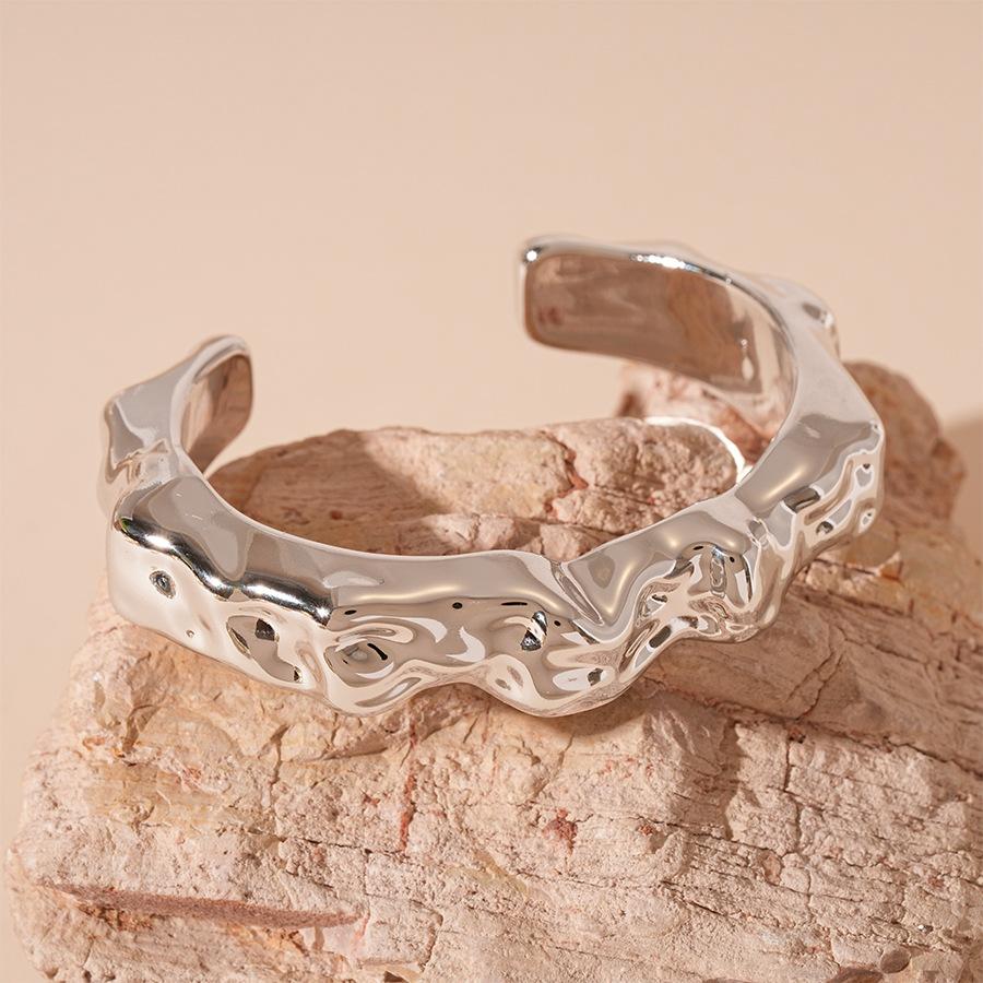 Pulsera Abierta Geométrica Irregular Plegable de Metal Estilo Europeo y Americano Moda Simple Temperamento Pulsera de Alta Gama para Mujeres