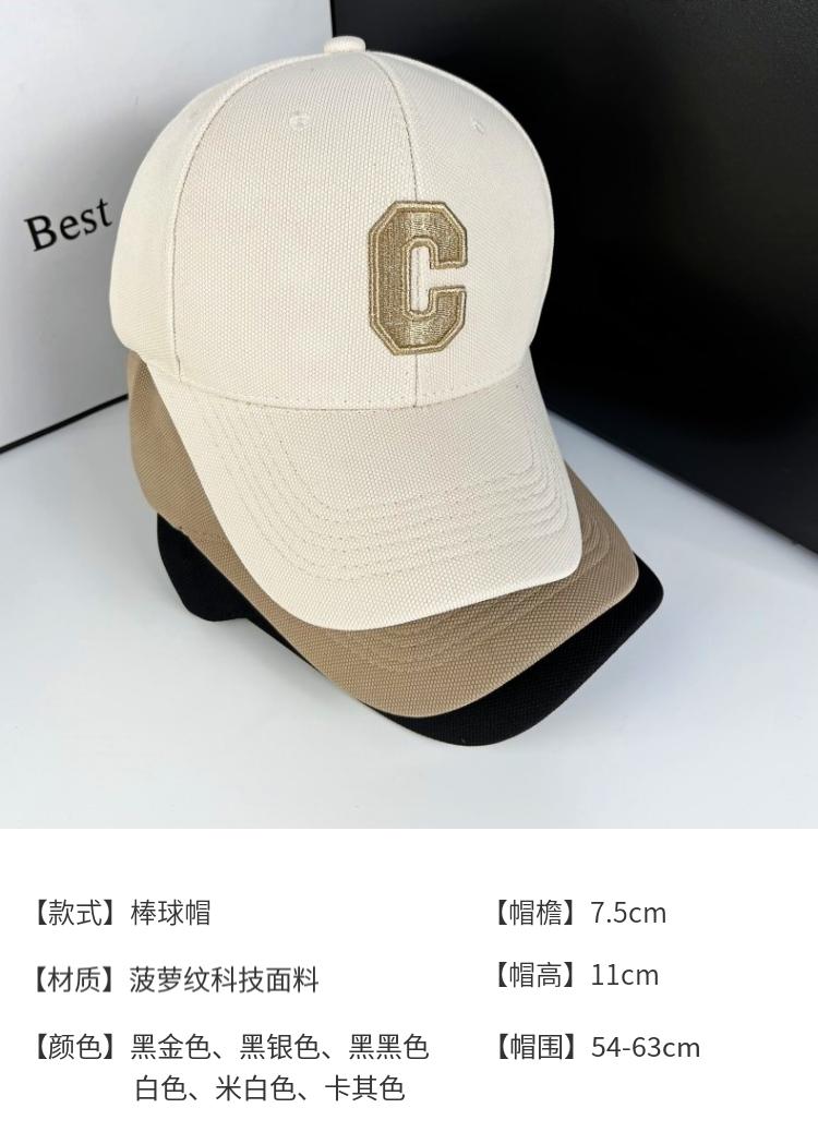 Sombrero para Hombre y Mujer Primavera Verano Otoño Letra C Moda Combinable Casual Gorra de Béisbol Circunferencia de Cabeza Grande Protección Solar Gorra de Sombra