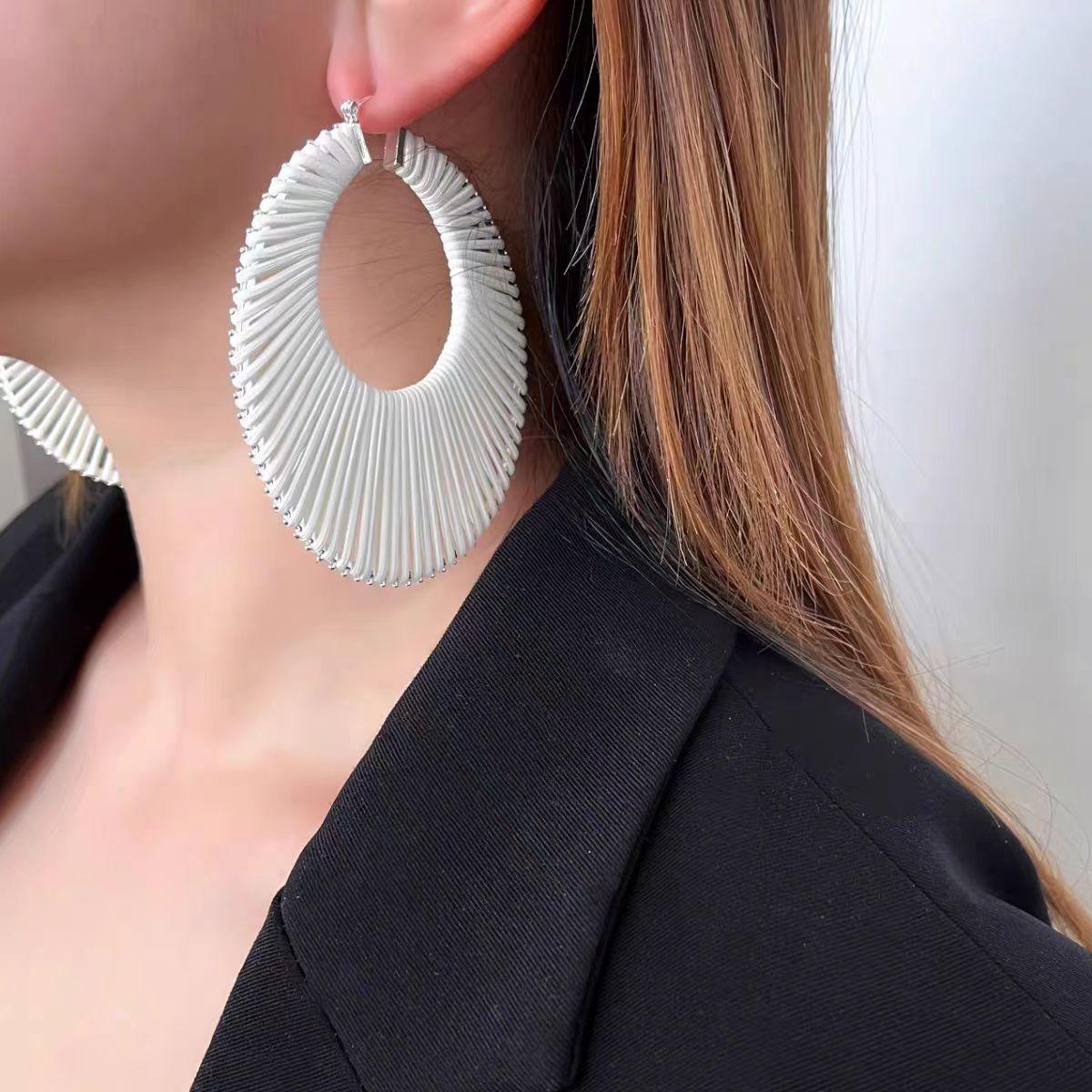 Pendientes tejidos a mano con color dopamina, exagerados, de moda y distintivos, con un temperamento de alta gama para mujer.
