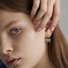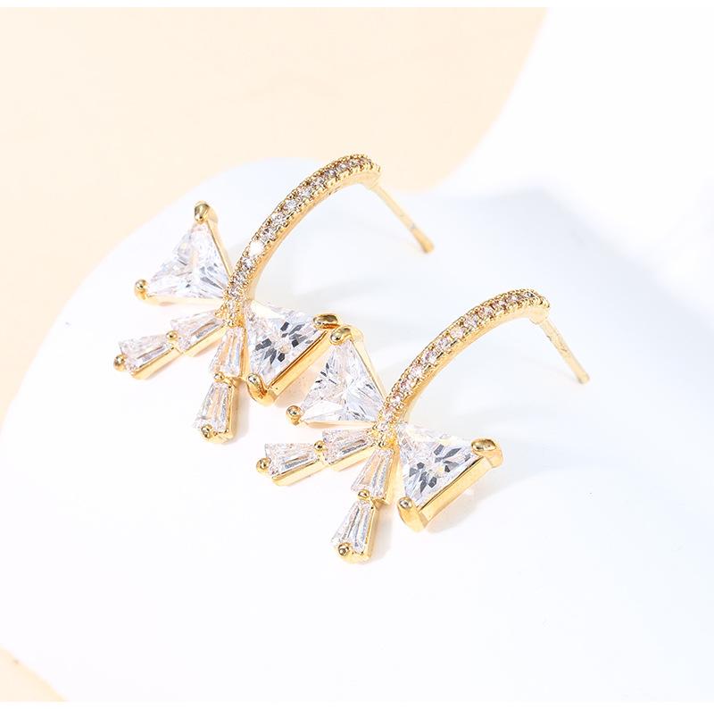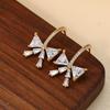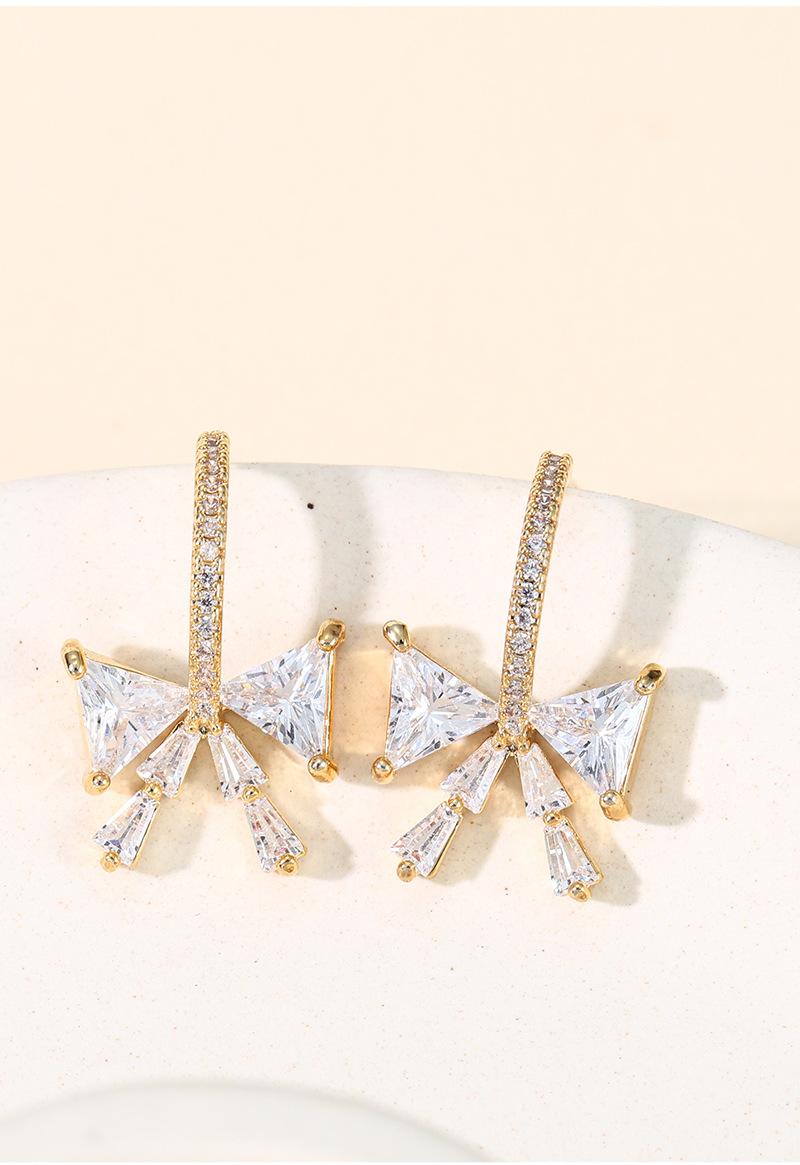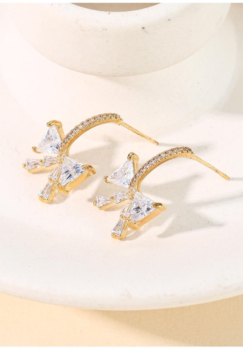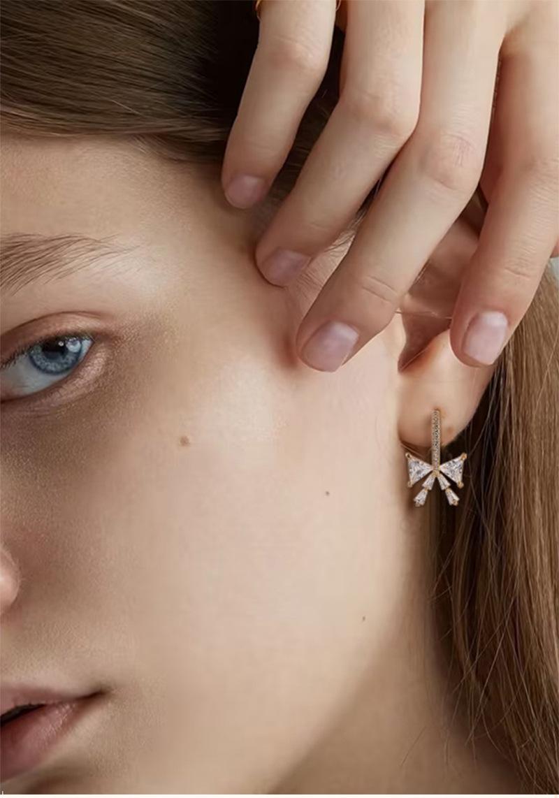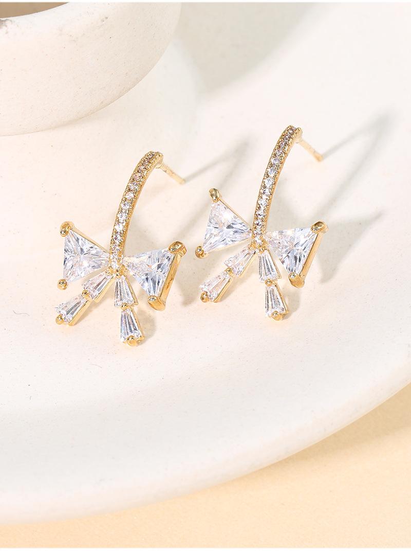 Pendientes de plata de ley S925 con forma de aguja y lazo de diamantes, estilo europeo y americano, para mujer, modernos y pequeños, sencillos y elegantes.