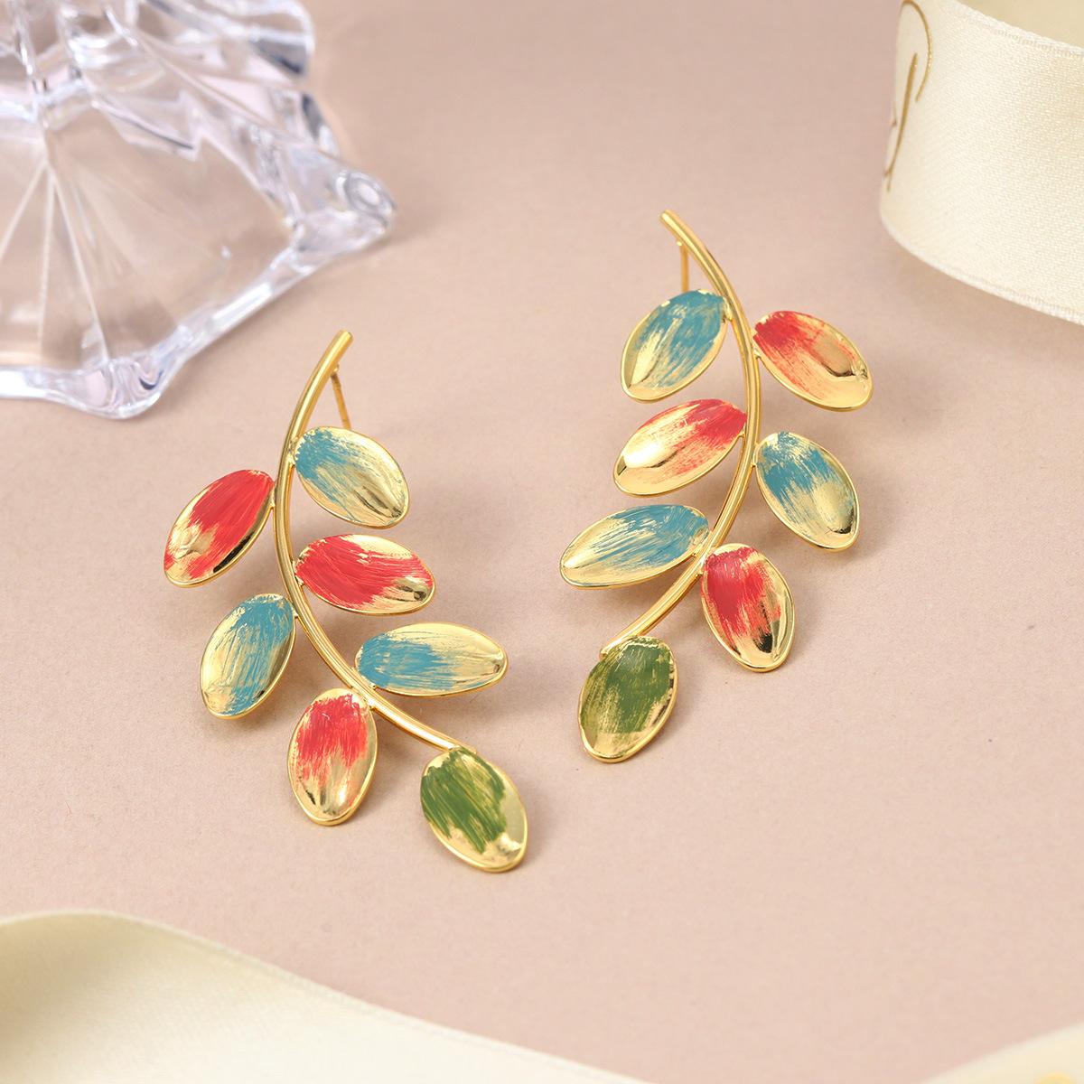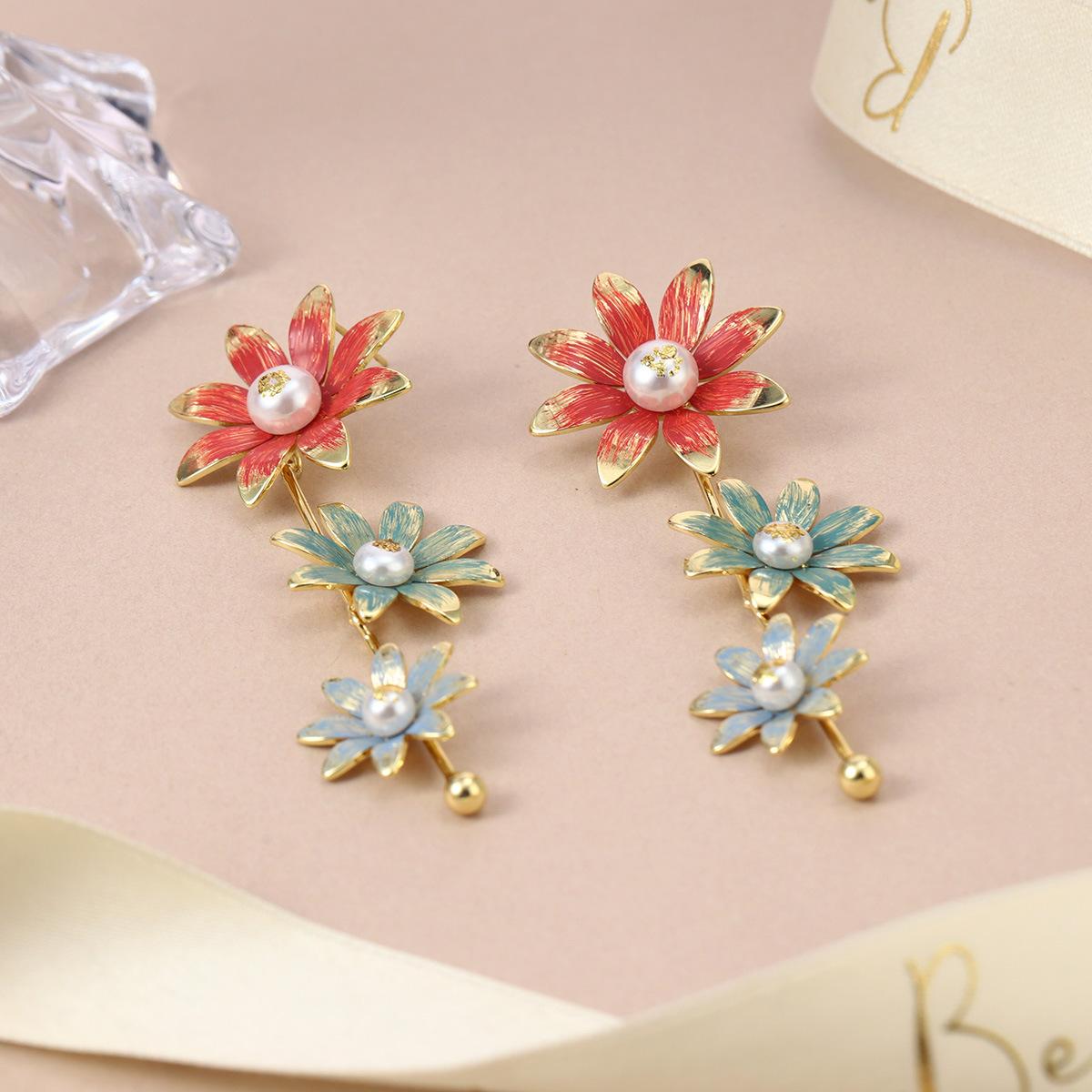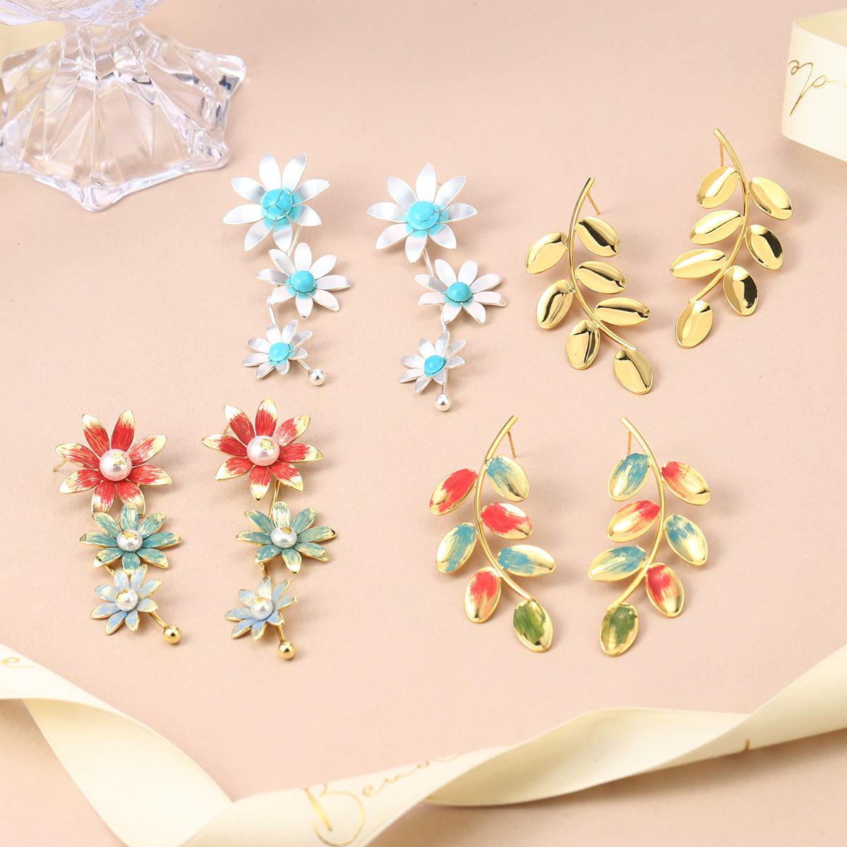 Pendientes de Borla de Flor de Perla Nueva de Primavera Pendientes Ligeros de Lujo Elegantes de Moda Combinables Pendientes con Diseño de Hoja