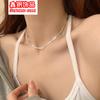 Elegante cadena de clavícula de acero de titanio con diamantes literarios dulces transfronterizos, moda personalidad europea y americana, collar de acero inoxidable al por mayor