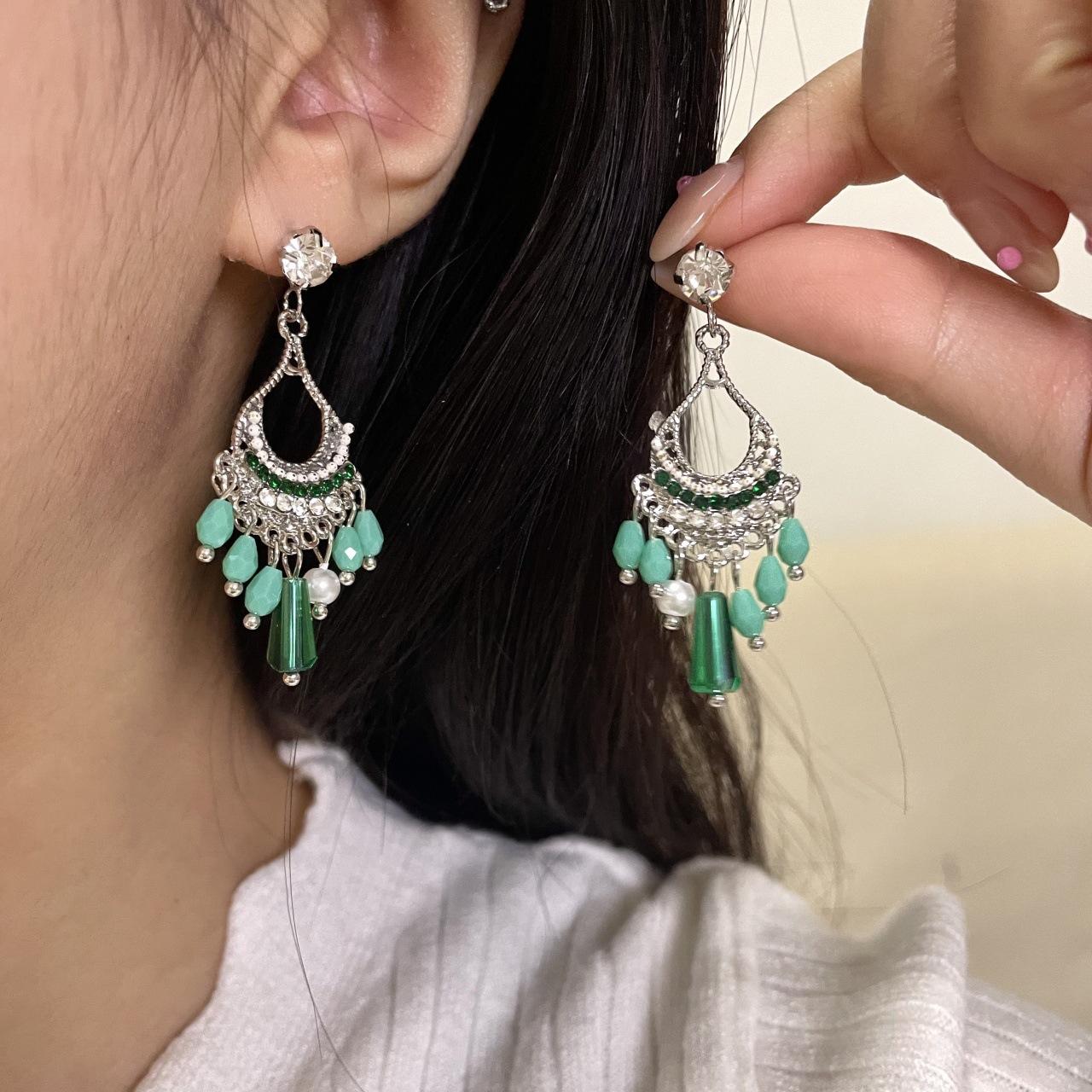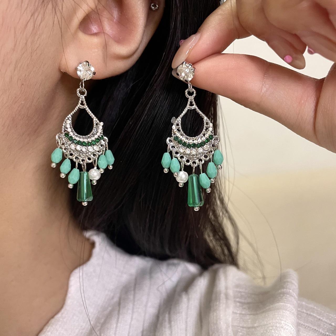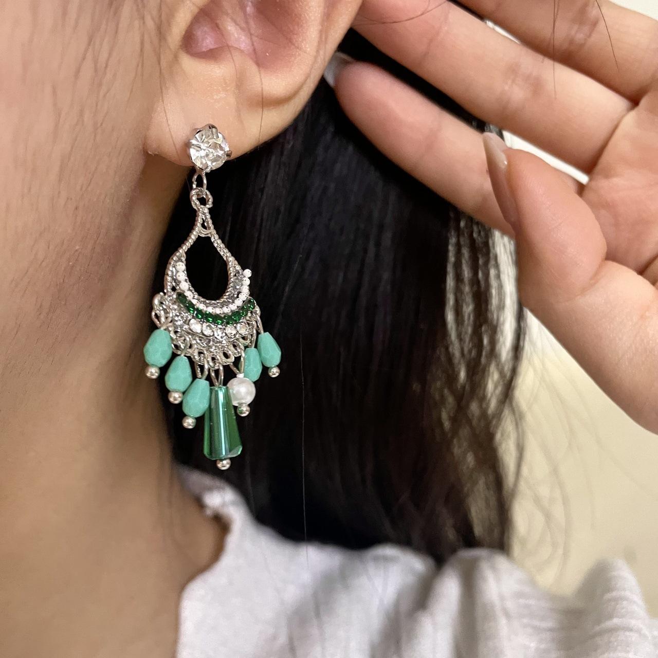 Pendientes de borlas con forma de gota de agua y diamantes de estilo étnico vintage, ligeros, de lujo, elegantes, con diseño bohemio para mujer.