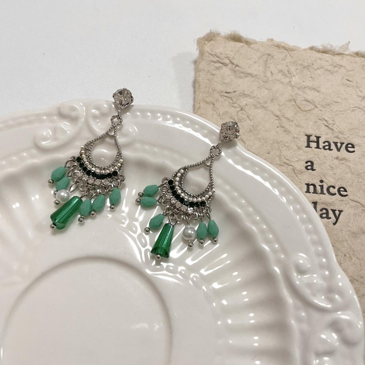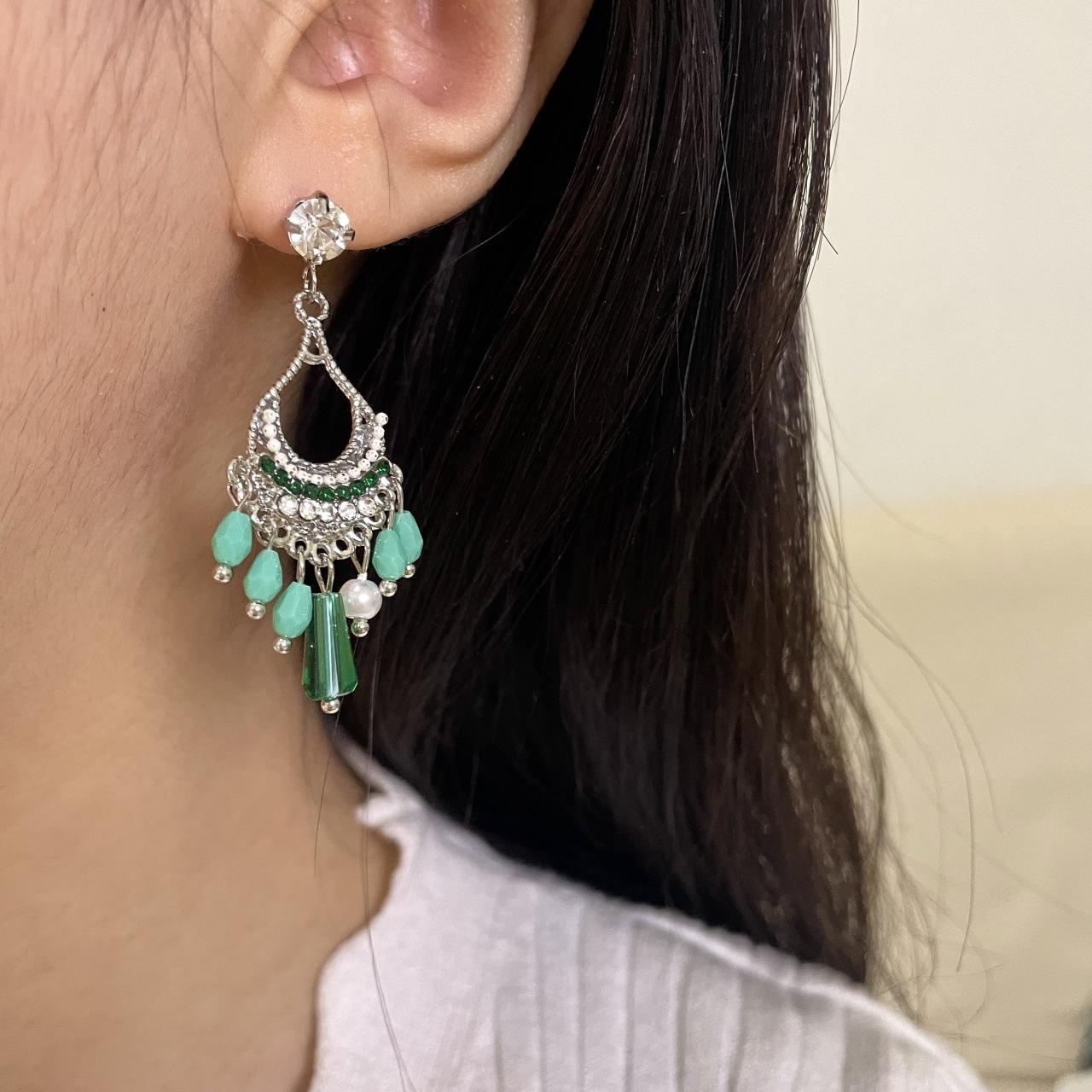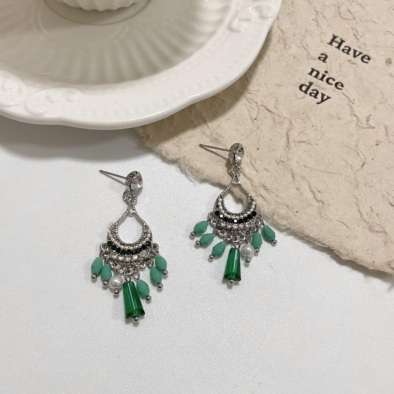 Pendientes de borlas con forma de gota de agua y diamantes de estilo étnico vintage, ligeros, de lujo, elegantes, con diseño bohemio para mujer.