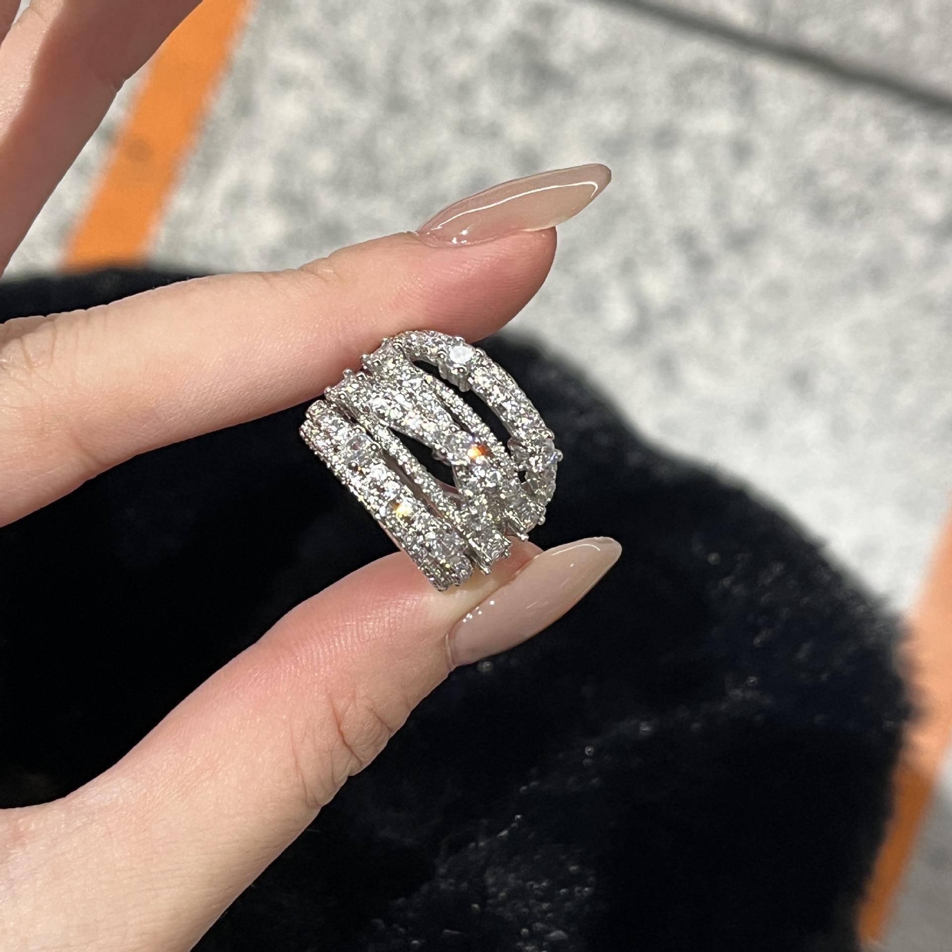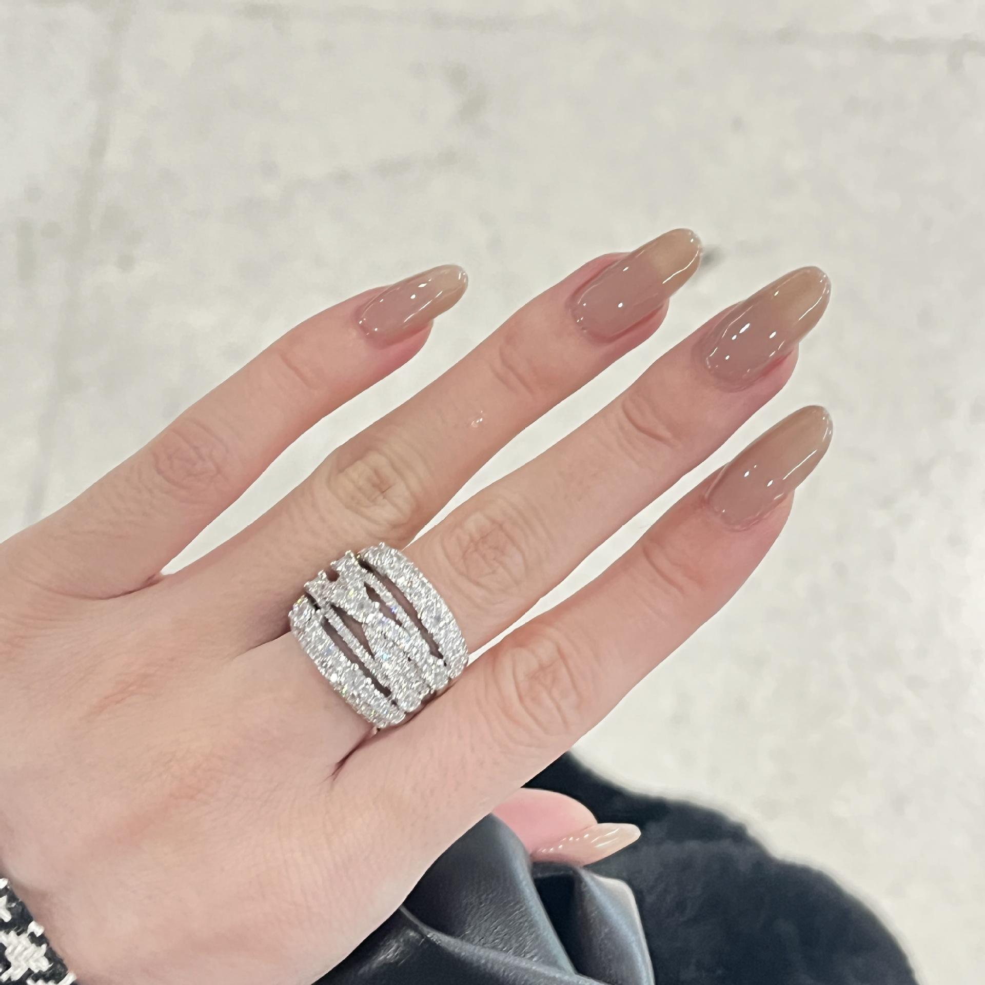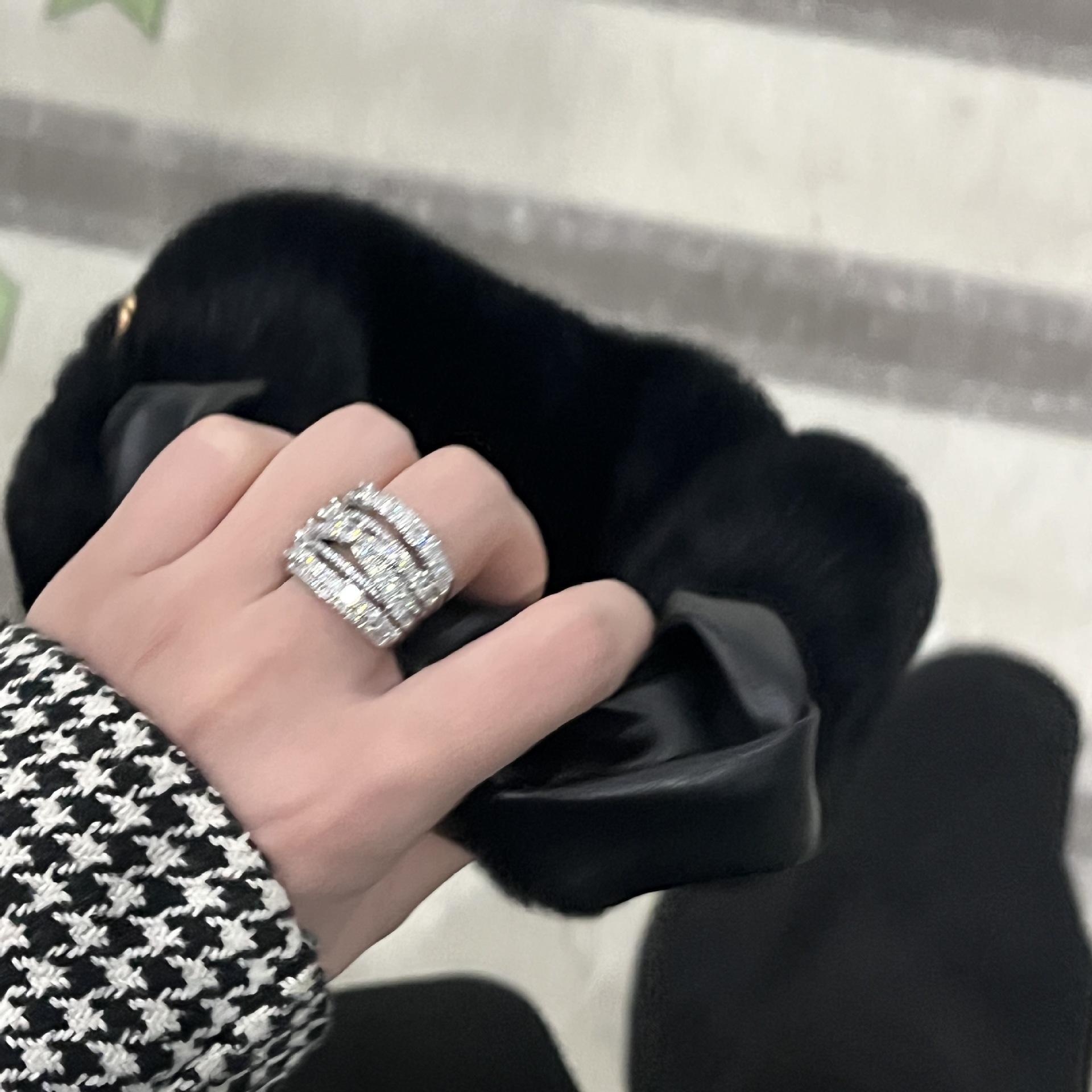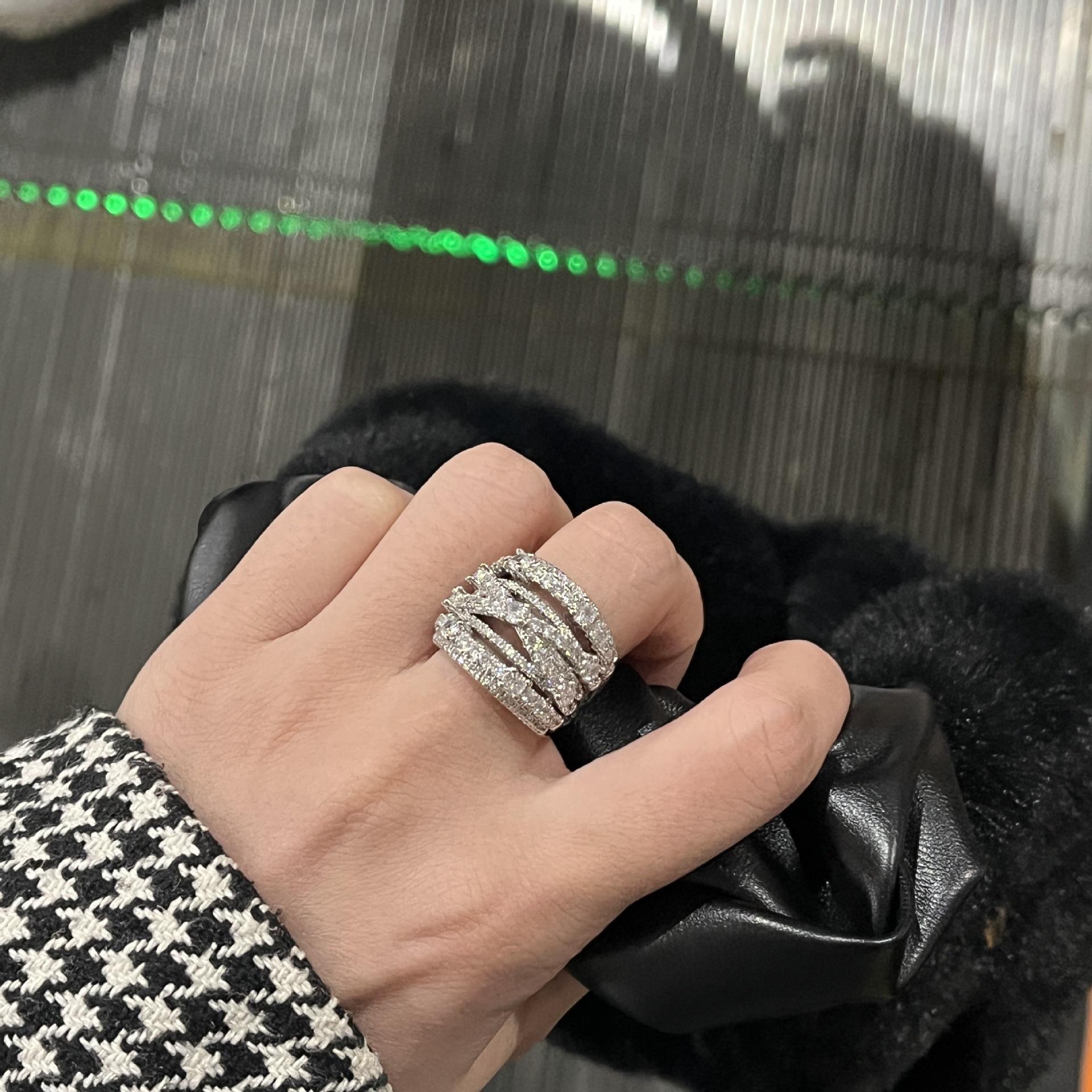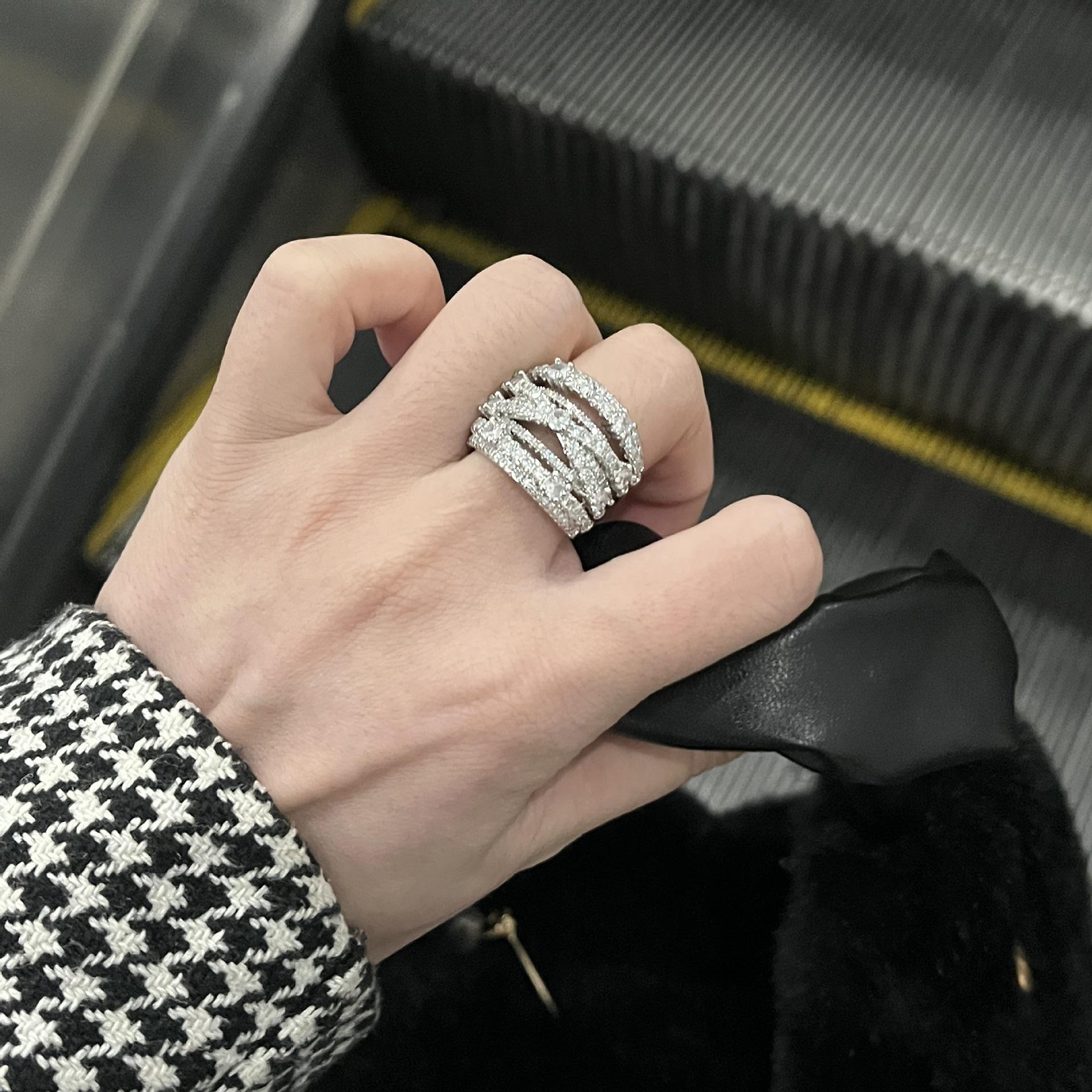Anillo de circonita plateada de alta gama con líneas cruzadas, anillo retro personalizado para el dedo índice de mujer, exquisito anillo microengarzado.
