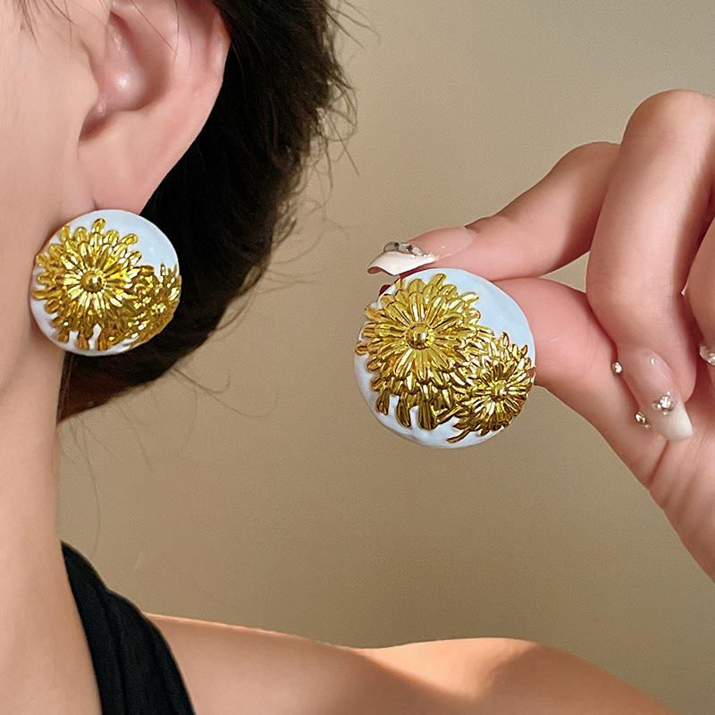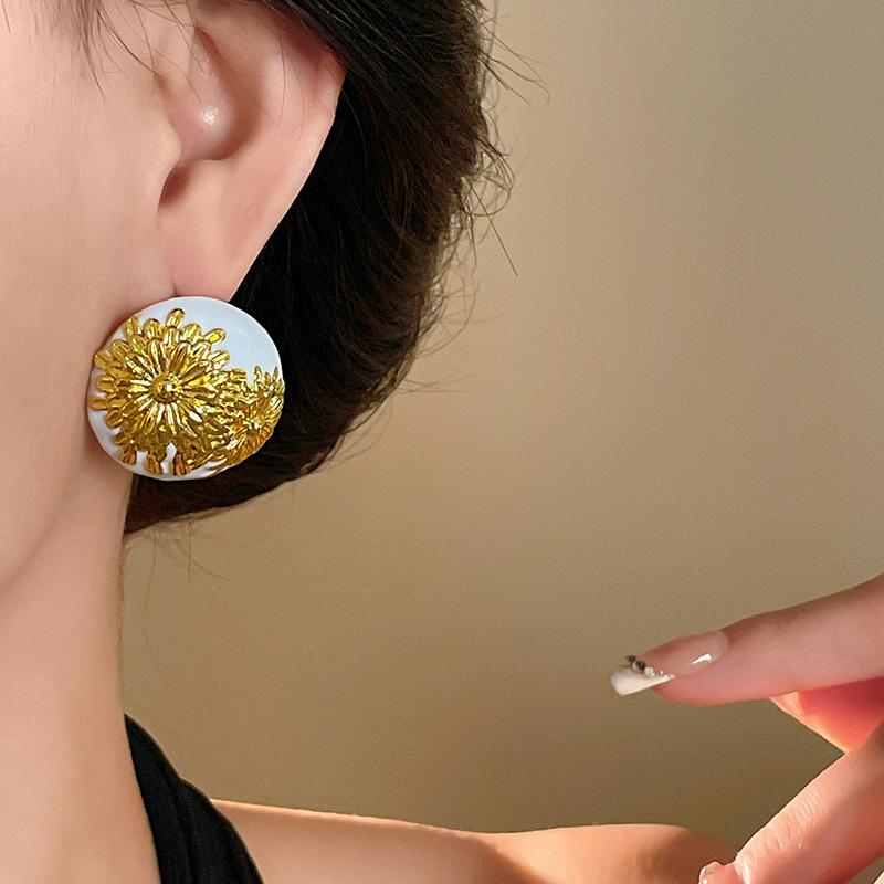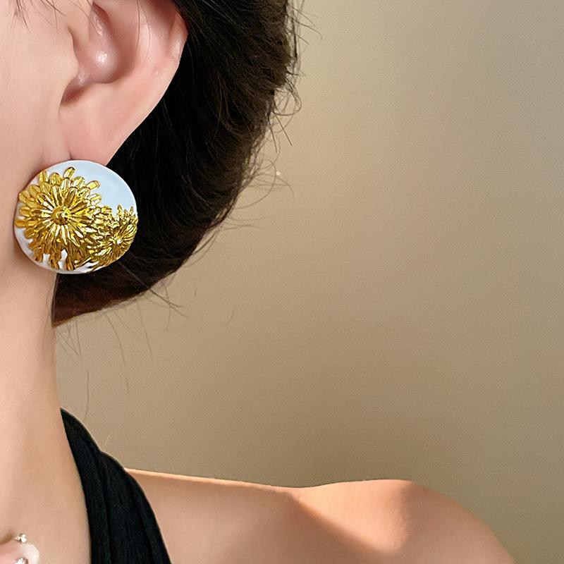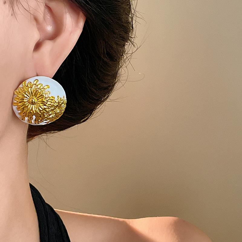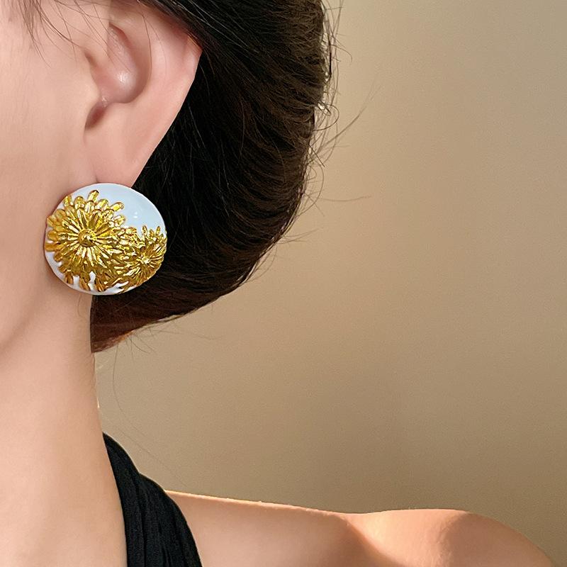 Compra Aretes retro de impresión al óleo de aguja de plata, aretes de lujo ligero de alta gama, aretes femeninos de nicho con personalidad exagerada y temperamento, venta al por mayor al por mayor en Joom.pro