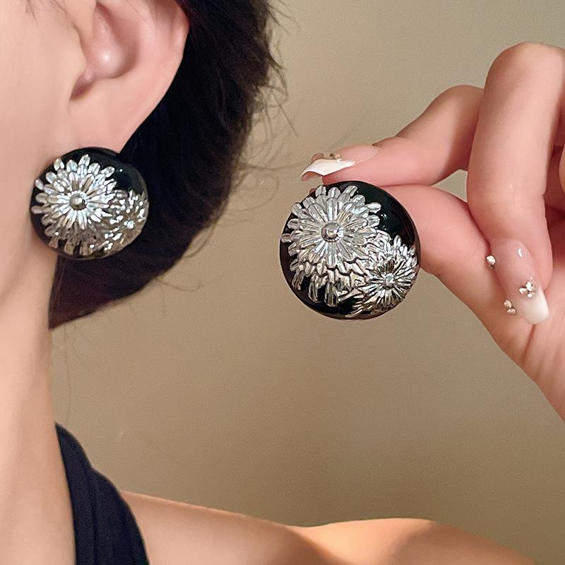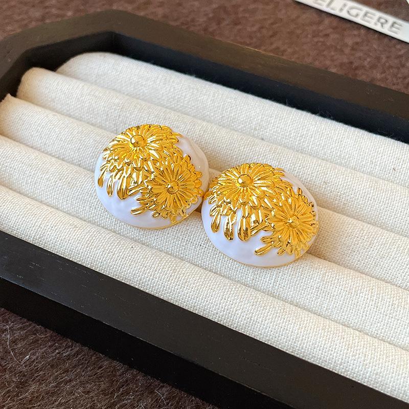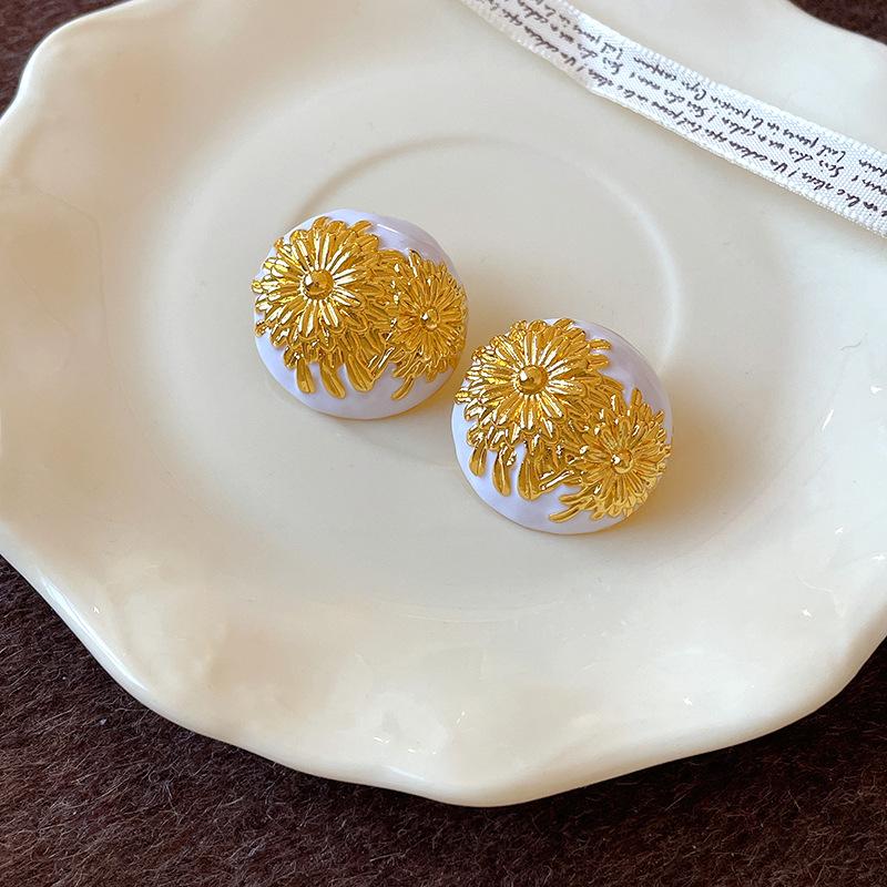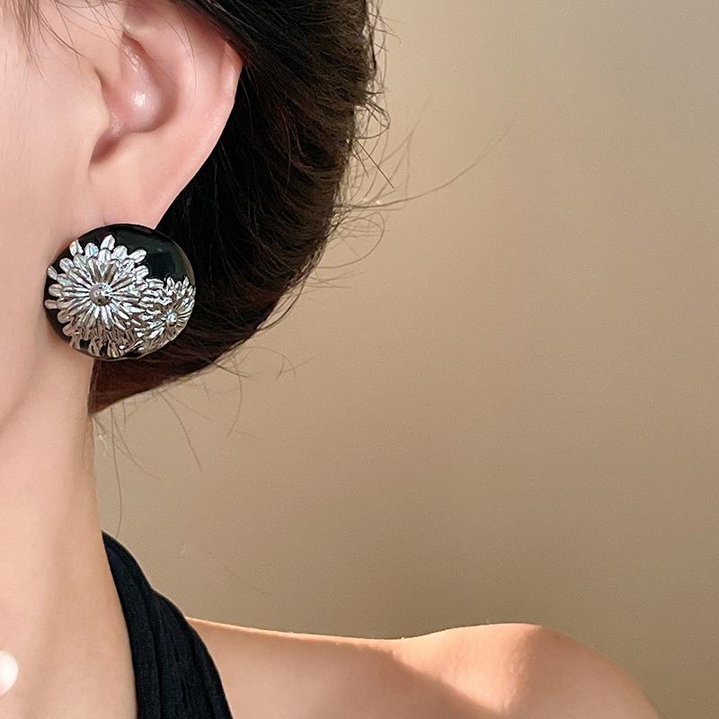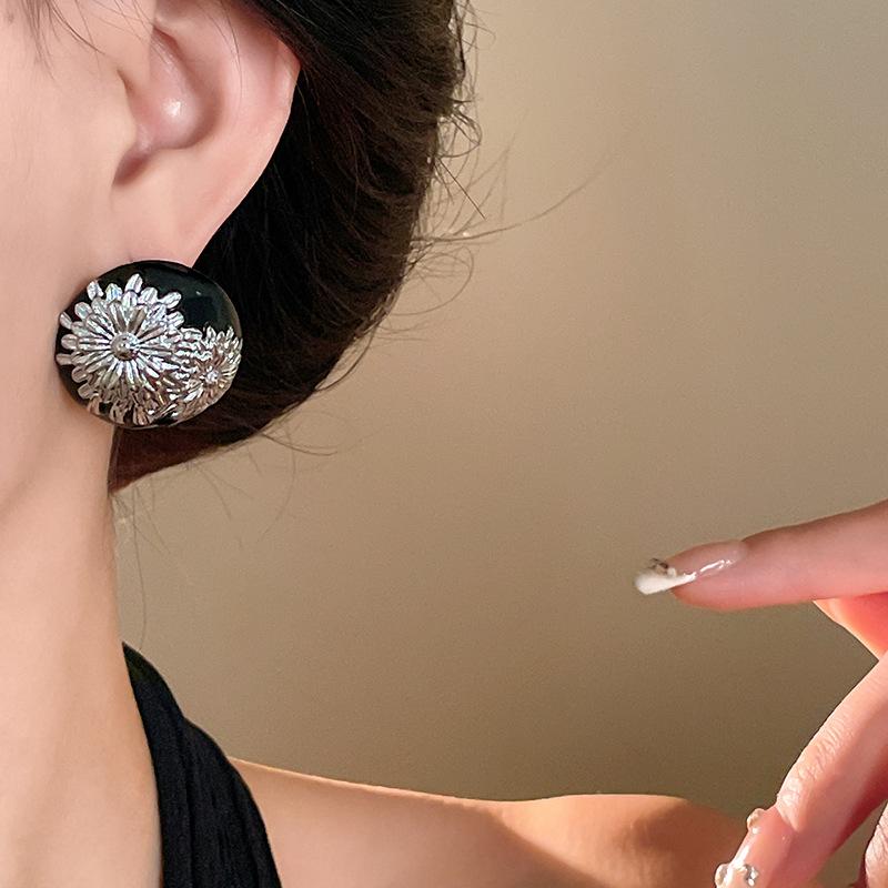Compra Aretes retro de impresión al óleo de aguja de plata, aretes de lujo ligero de alta gama, aretes femeninos de nicho con personalidad exagerada y temperamento, venta al por mayor al por mayor en Joom.pro