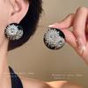 Aretes retro de impresión al óleo de aguja de plata, aretes de lujo ligero de alta gama, aretes femeninos de nicho con personalidad exagerada y temperamento, venta al por mayor