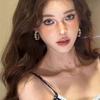 Nuevos aretes cuadrados plateados a rayas, aretes de nicho retro europeos y americanos, moda, temperamento, aretes de alta gama al por mayor para mujer
