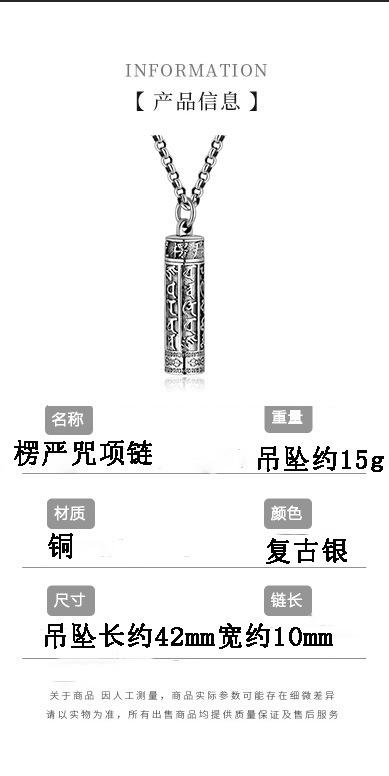 Collar con colgante de estilo étnico retro, moderno, con seis caracteres, mantra Shurangama, maldición, personalidad, para hombre, moderno y sencillo.