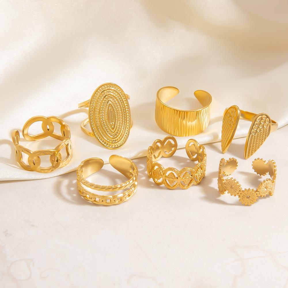 Anillo de acero de titanio transfronterizo, diseño simple, anillo de dedo abierto de alta gama, pulsera, anillo de color oro de 18 quilates, anillo transfronterizo