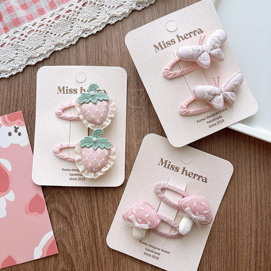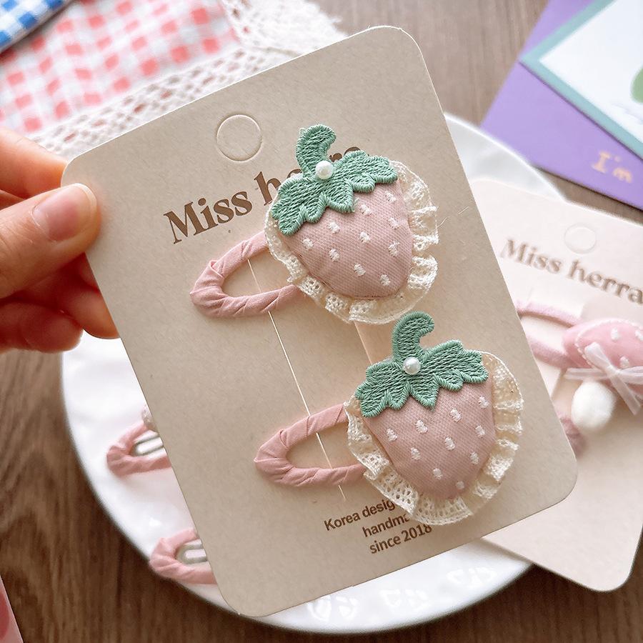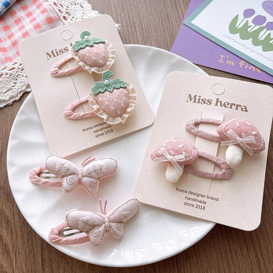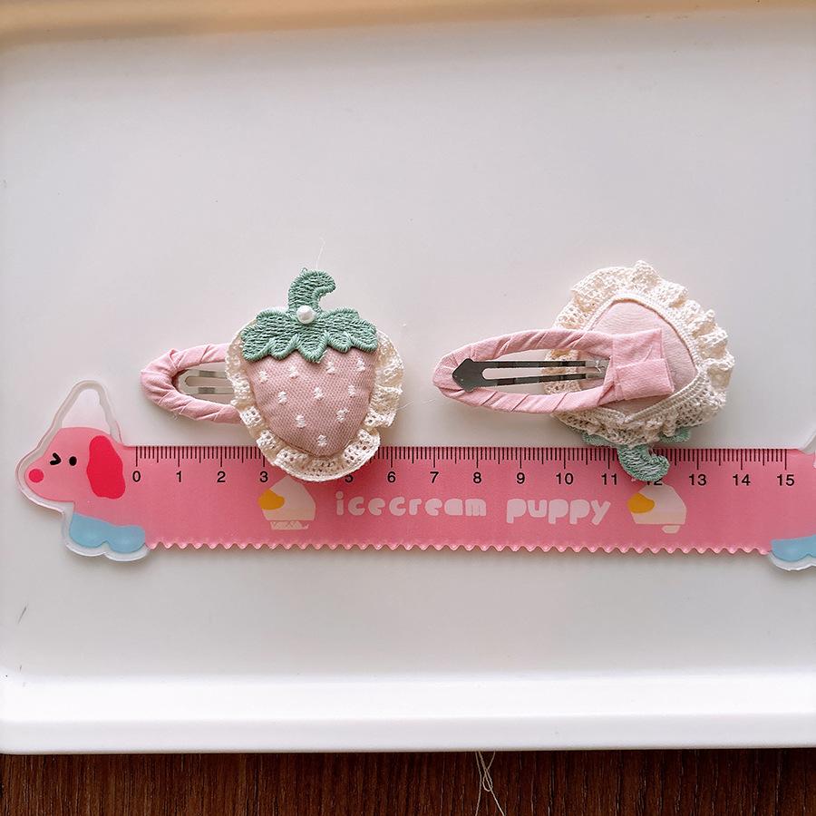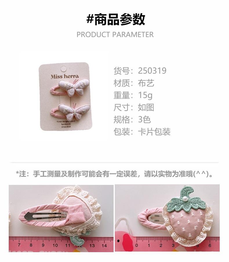 Versión coreana de pinza para el cabello con flequillo de fresa lateral con clip hueco de mariposa para niños con bordado rosa tridimensional, accesorios para el cabello lindos y dulces