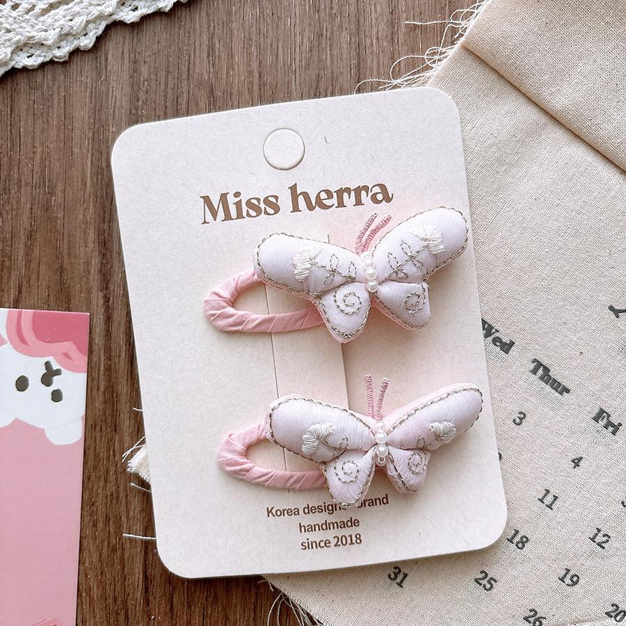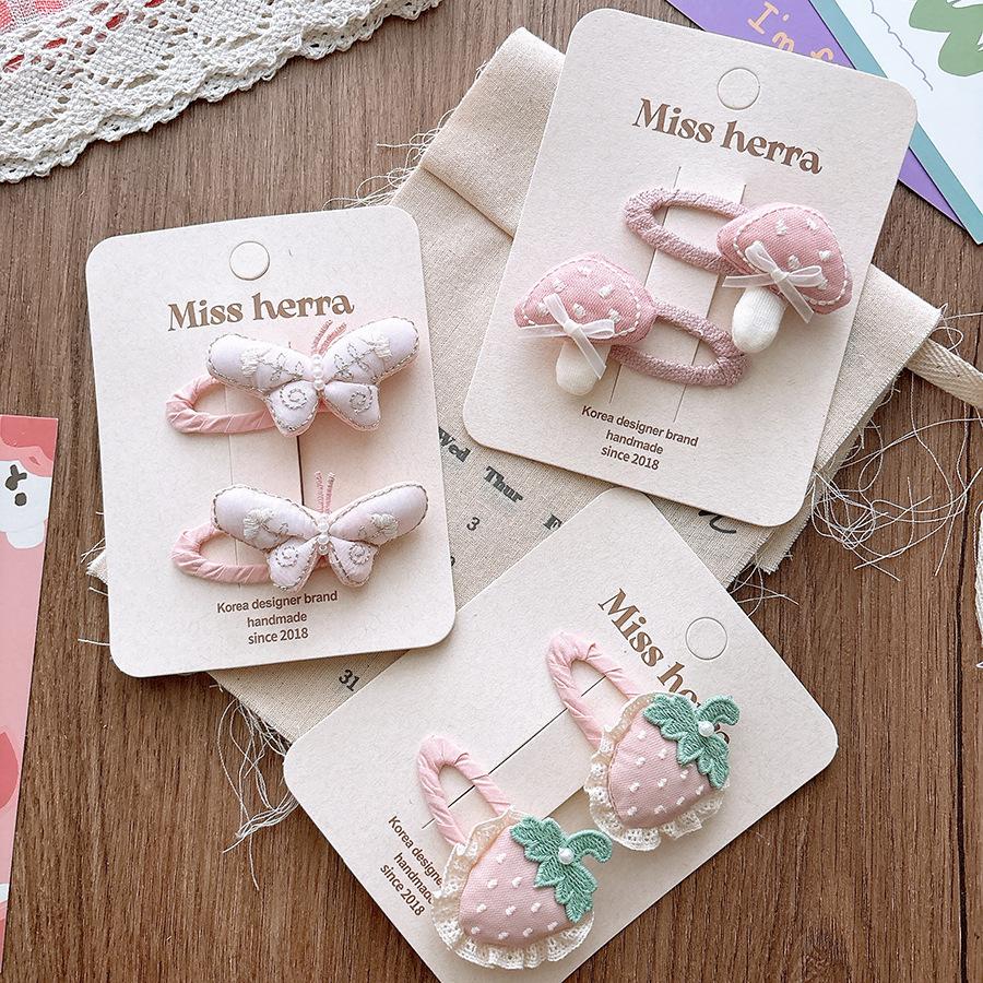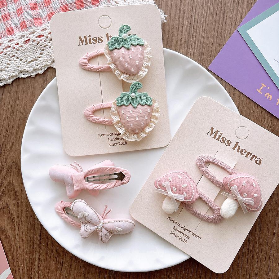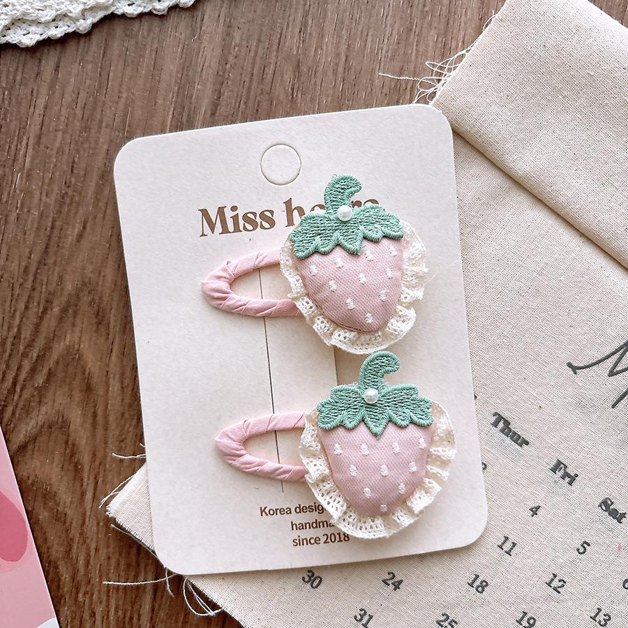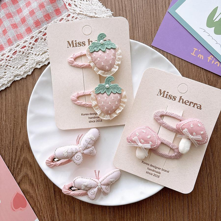 Versión coreana de pinza para el cabello con flequillo de fresa lateral con clip hueco de mariposa para niños con bordado rosa tridimensional, accesorios para el cabello lindos y dulces