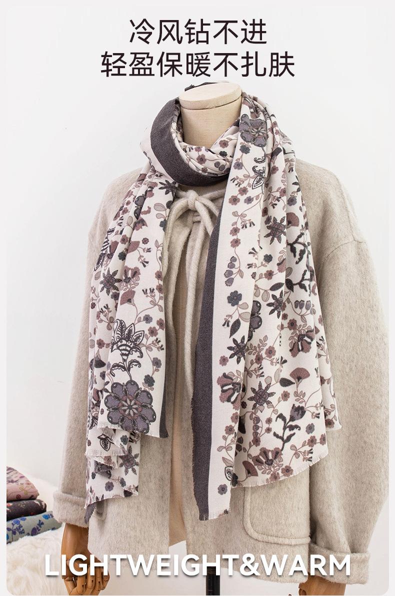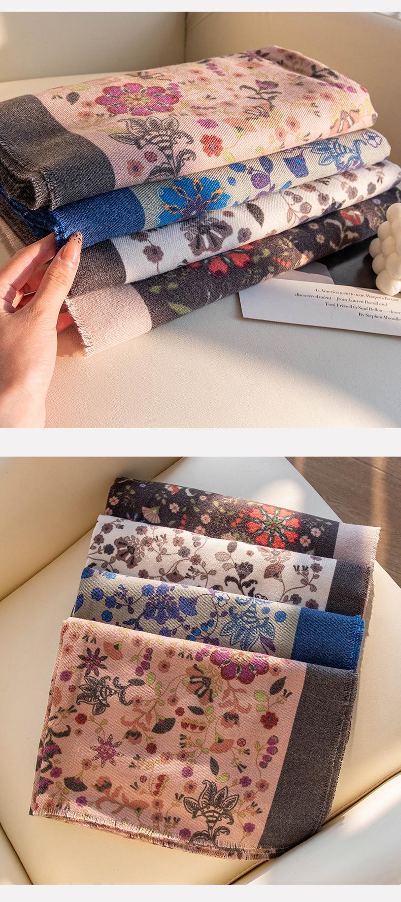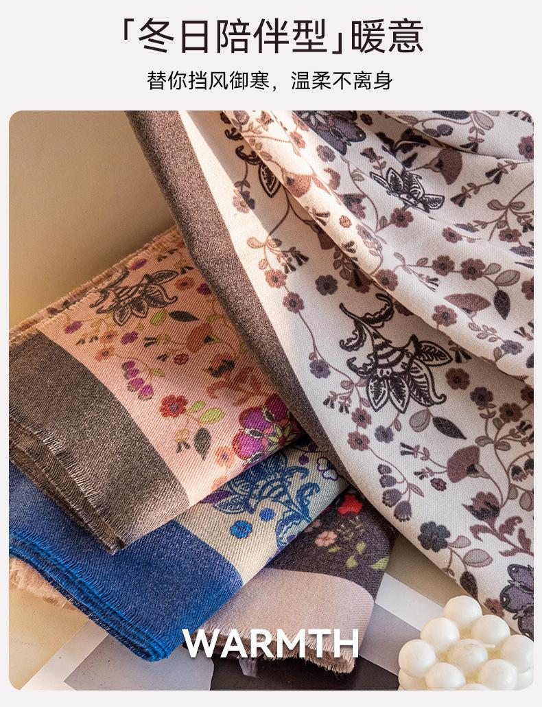Bufanda de Cachemira Estampada Otoño e Invierno 2025 Elegante Bufanda de Cachemira Estampada con Asa para Mujer Bufanda Cálida a Prueba de Frío