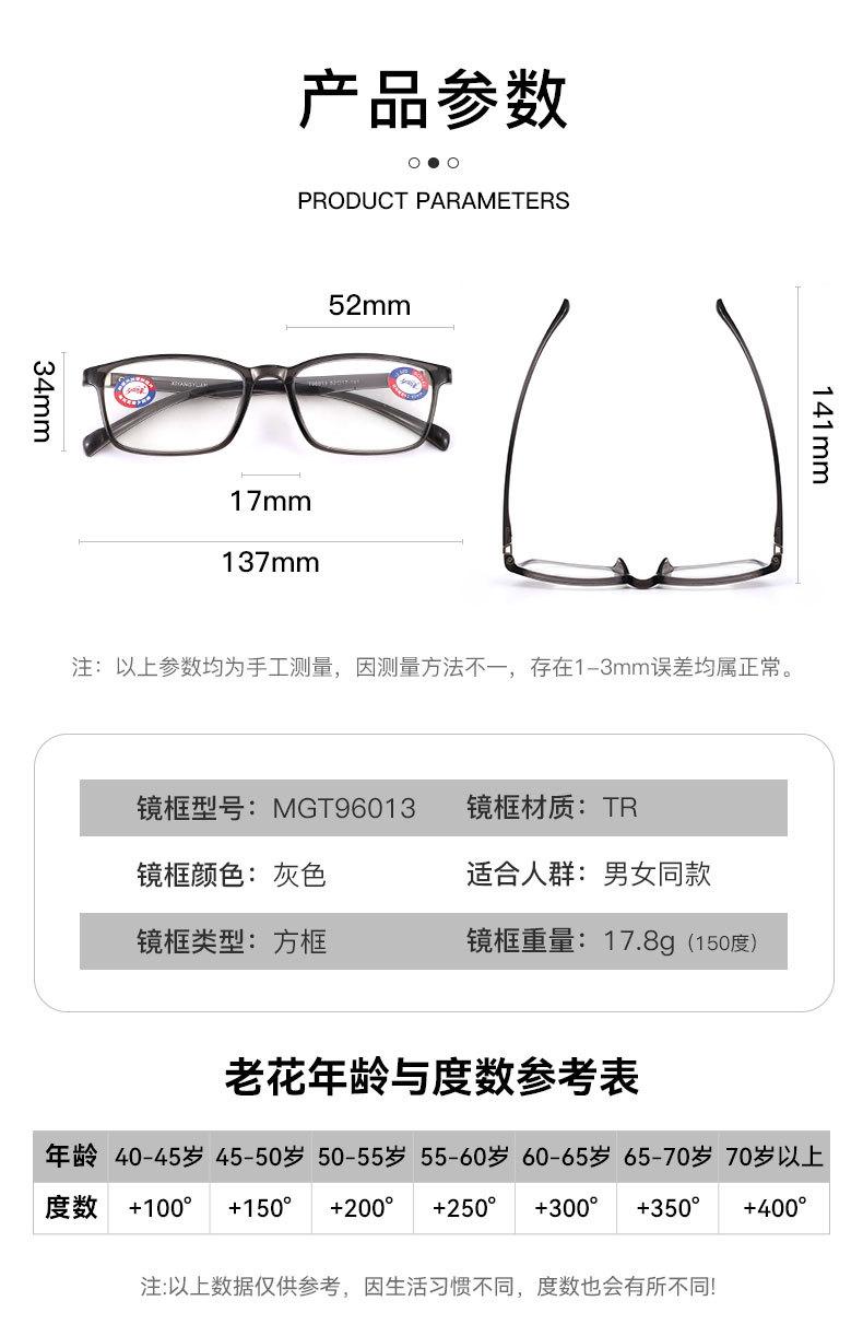 Mgt96013 Gafas de lectura elegantes y de alta definición para personas de mediana edad y mayores con hipermetropía.