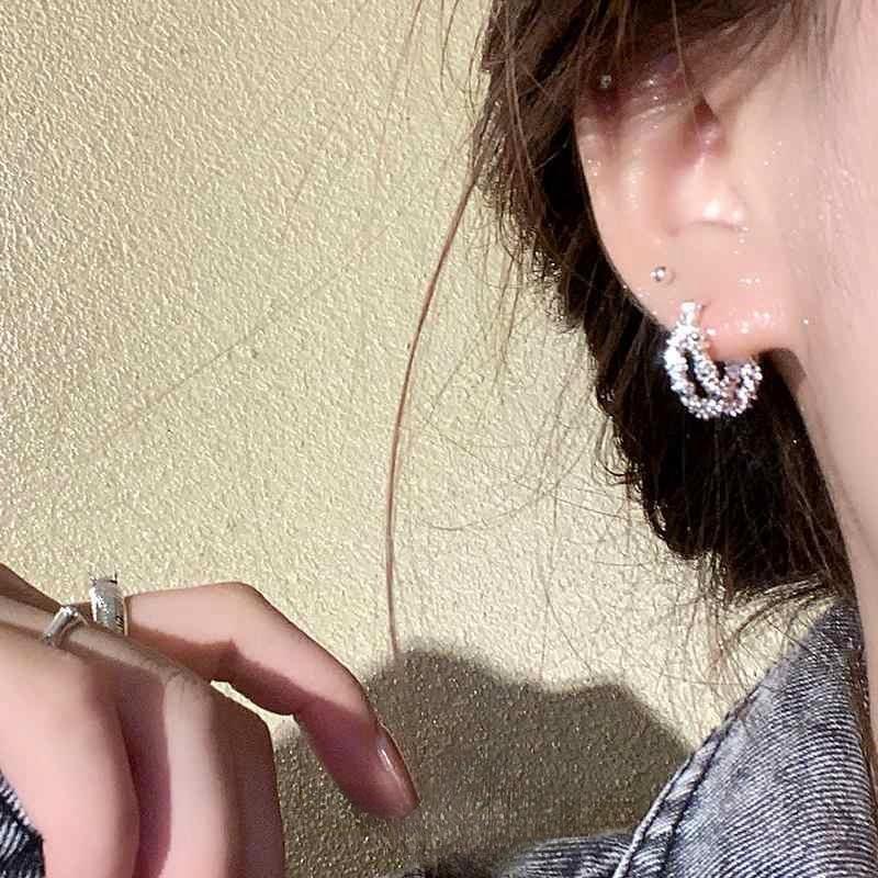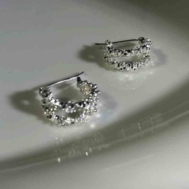 Pendientes Brillantes ~ Plata Rota para Mujer de Nicho Avanzado de Lujo Ligero Elegantes Aretes de Aro Hebilla para la Oreja Pendientes de Aro