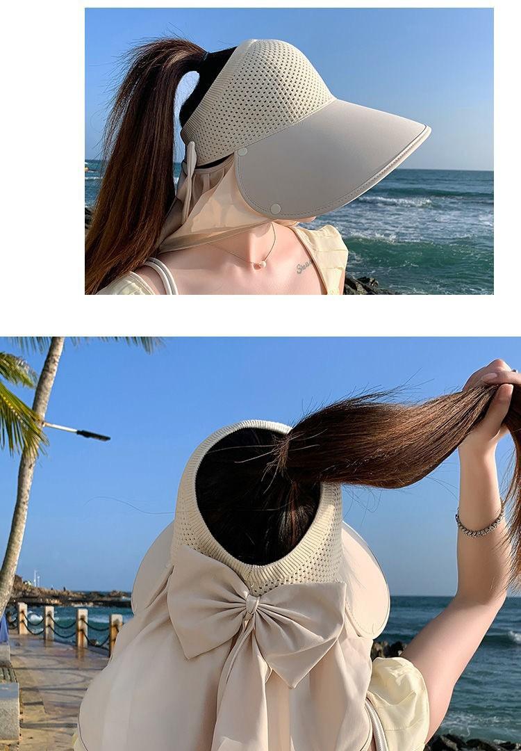 Sombrero de ala ancha para niños, protector solar, para viajes de verano, cubrebocas, se puede atar con cola de caballo, protección para el cuello, sombrilla transpirable, sombrero de pescador para mujer