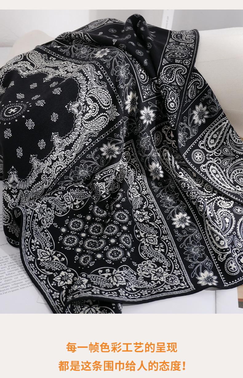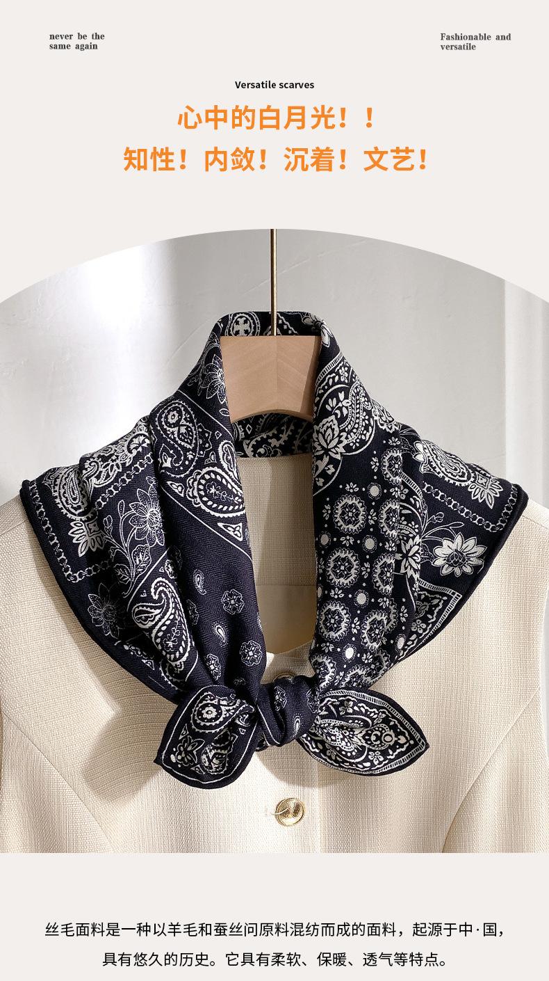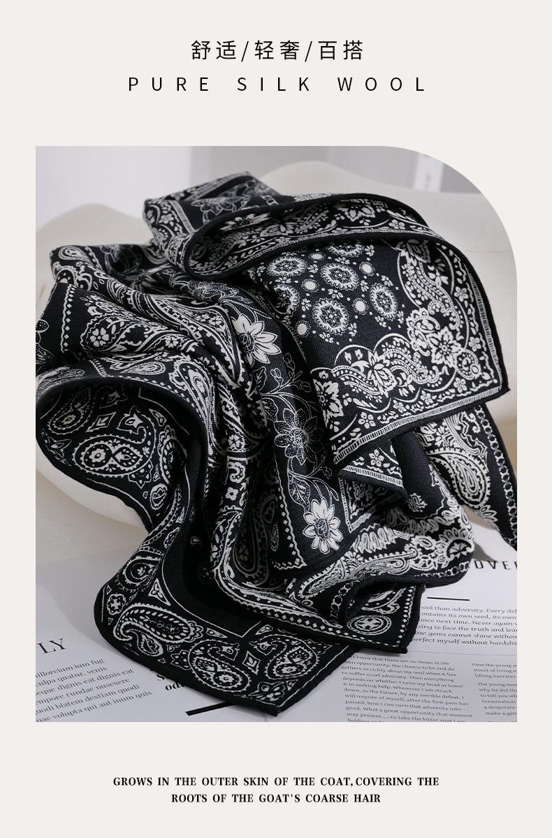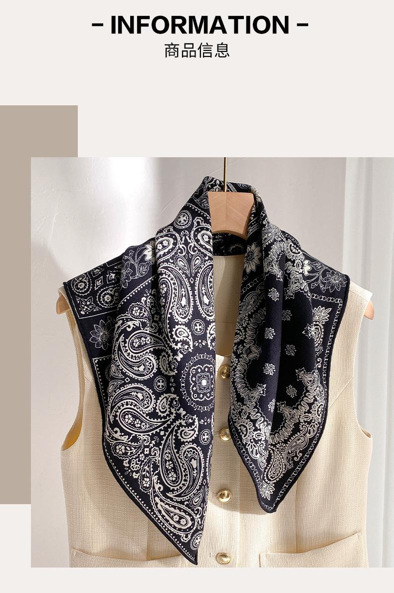 Bufanda Cuadrada Mediana de Seda y Lana de Cachemira con Flor de Anacardo Perris Blanco y Negro Bufanda Chal Unisex para Primavera y Otoño