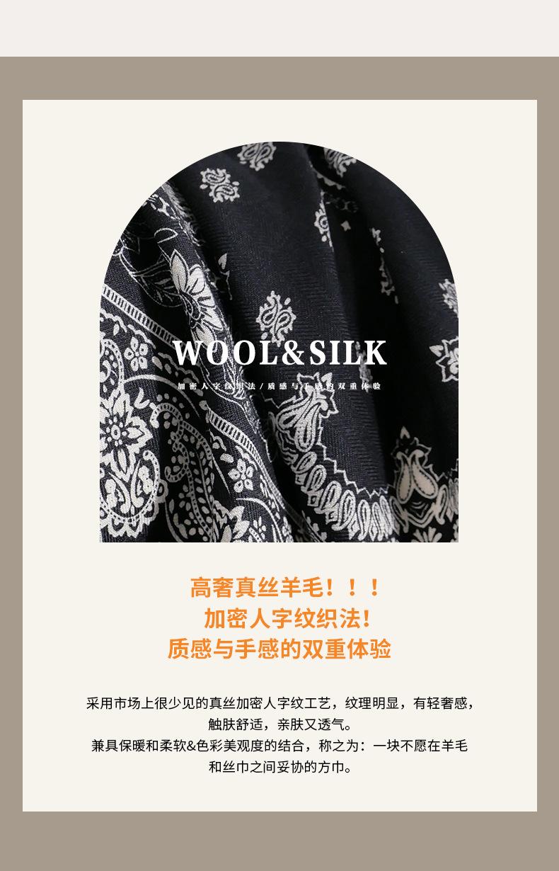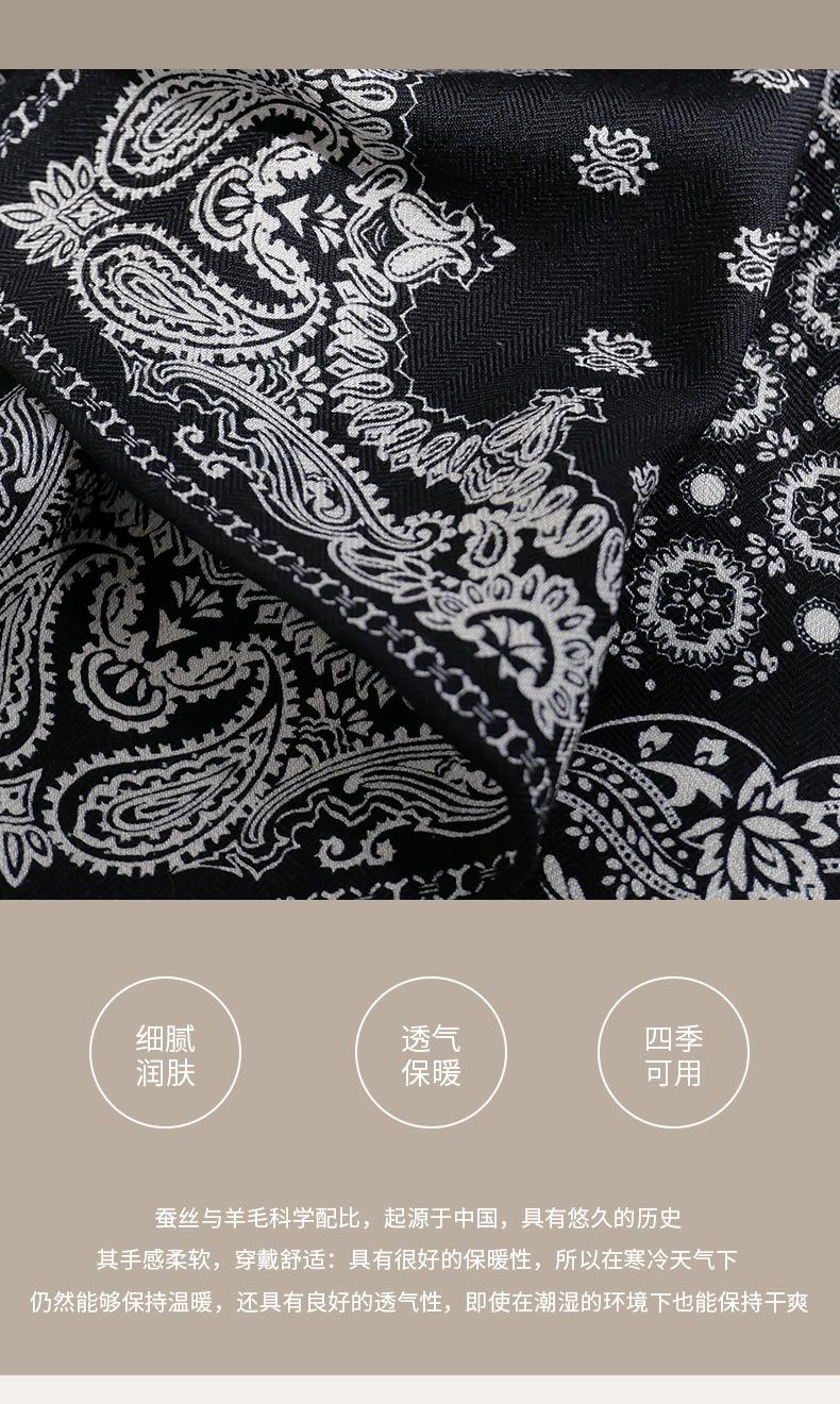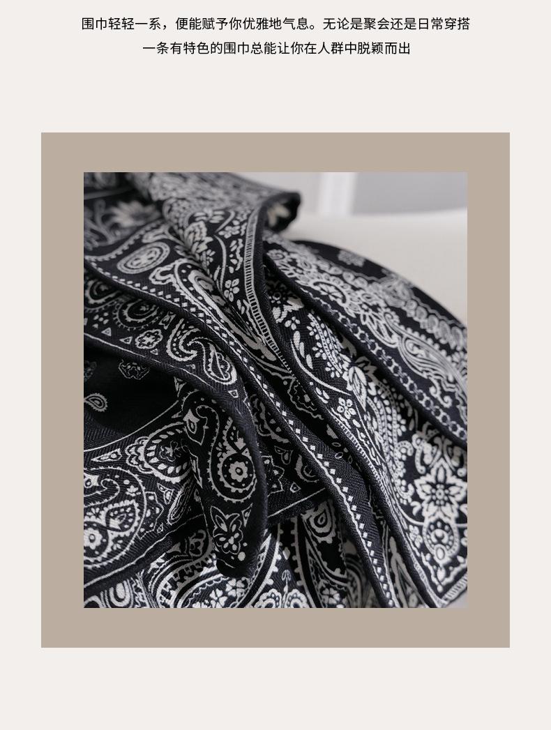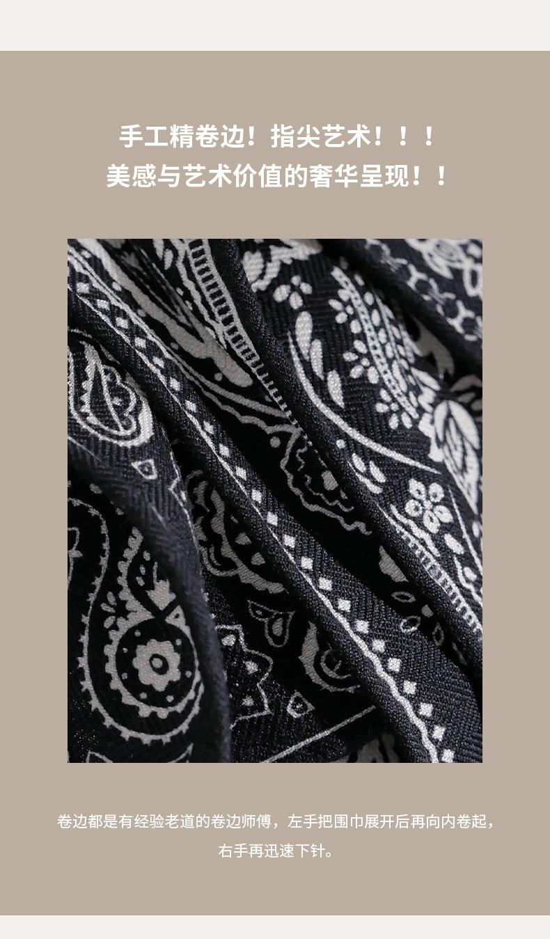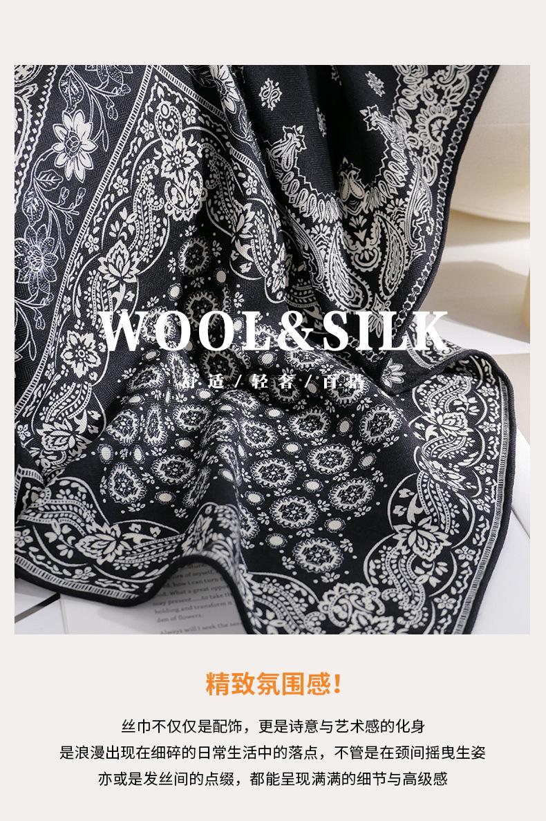 Bufanda Cuadrada Mediana de Seda y Lana de Cachemira con Flor de Anacardo Perris Blanco y Negro Bufanda Chal Unisex para Primavera y Otoño