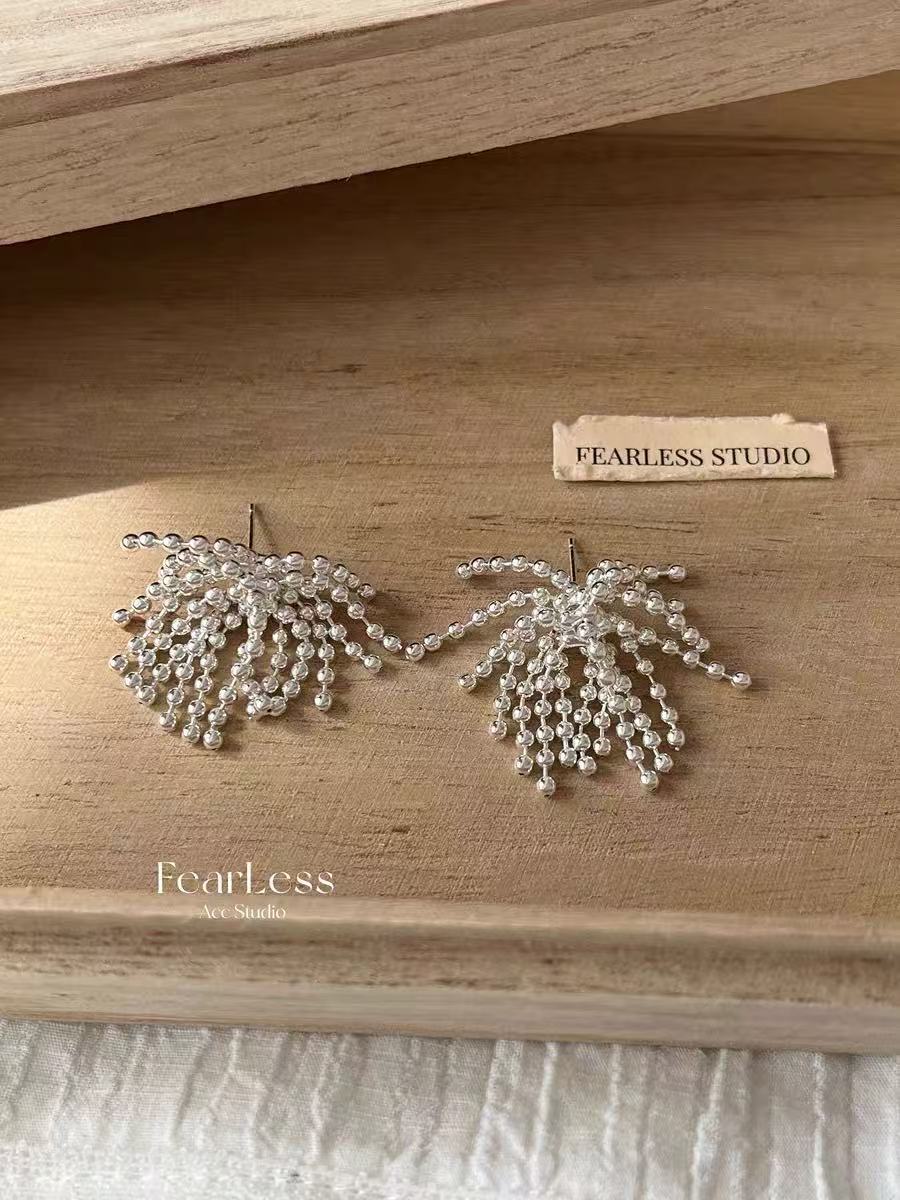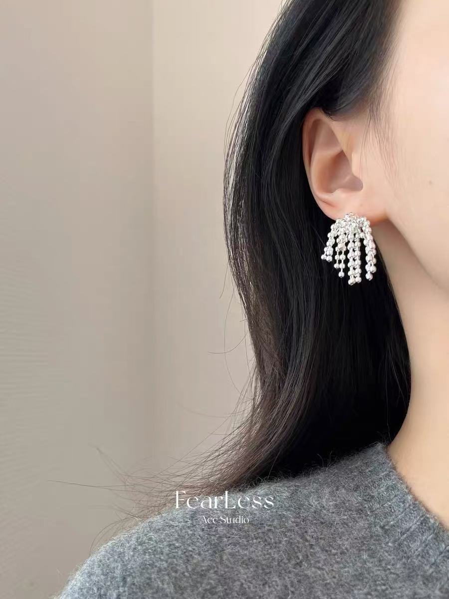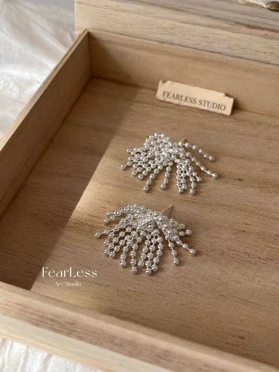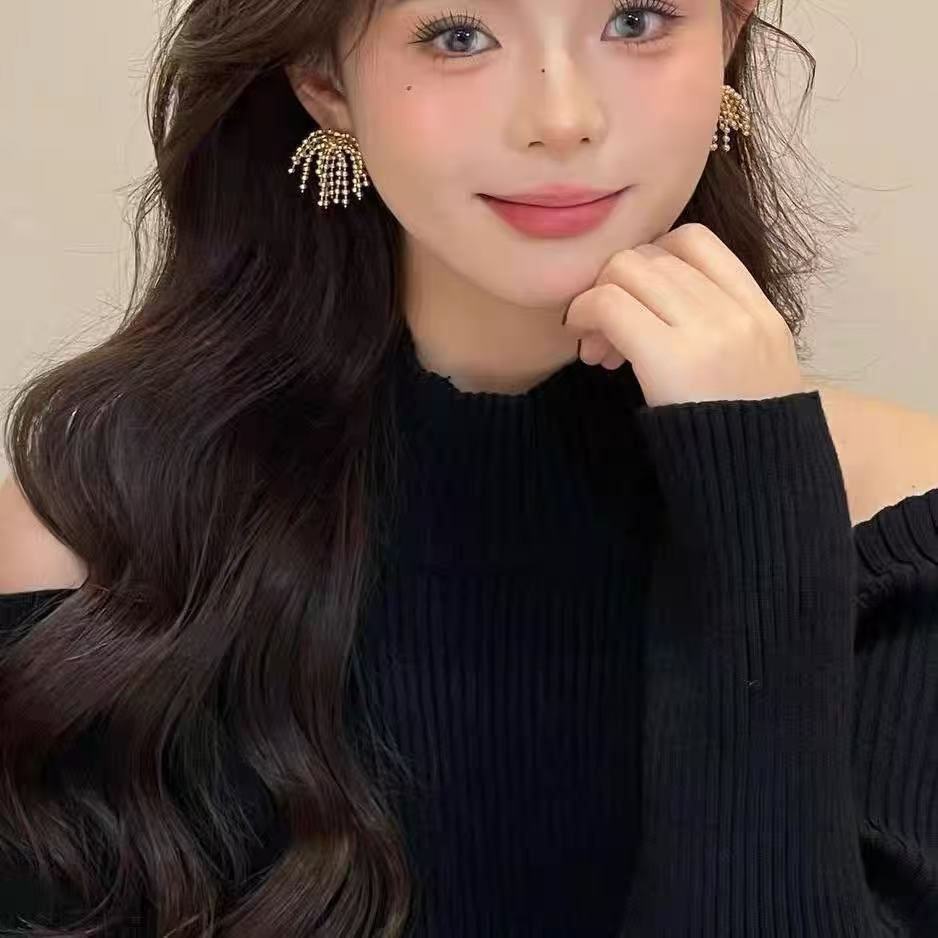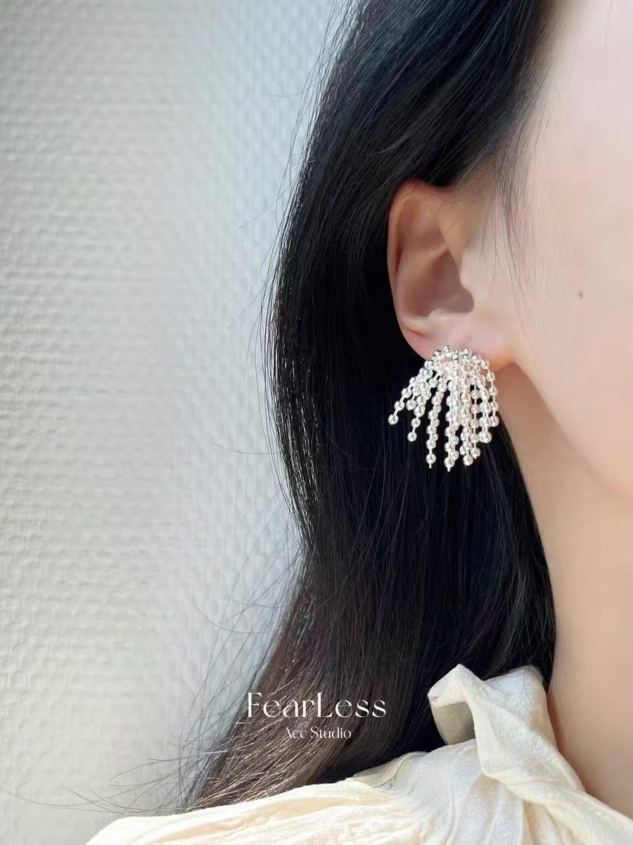 Pendientes de borlas con forma de bola de metal y fuegos artificiales de alta gama para mujer, con personalidad exagerada, ideales para ir al trabajo y combinar con todo.