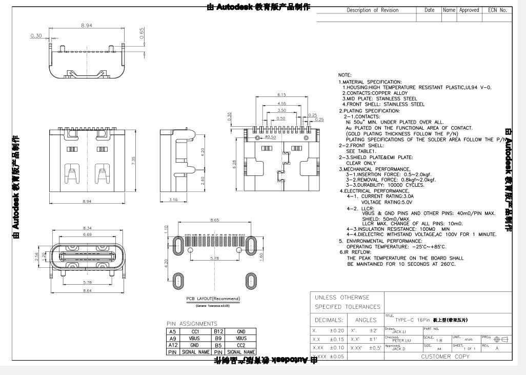 Carga rápida TYPE-C16P base terminal de parche de placa de enchufe de cuatro pines con metralla USB3.1 nuevas regulaciones de la UE