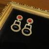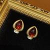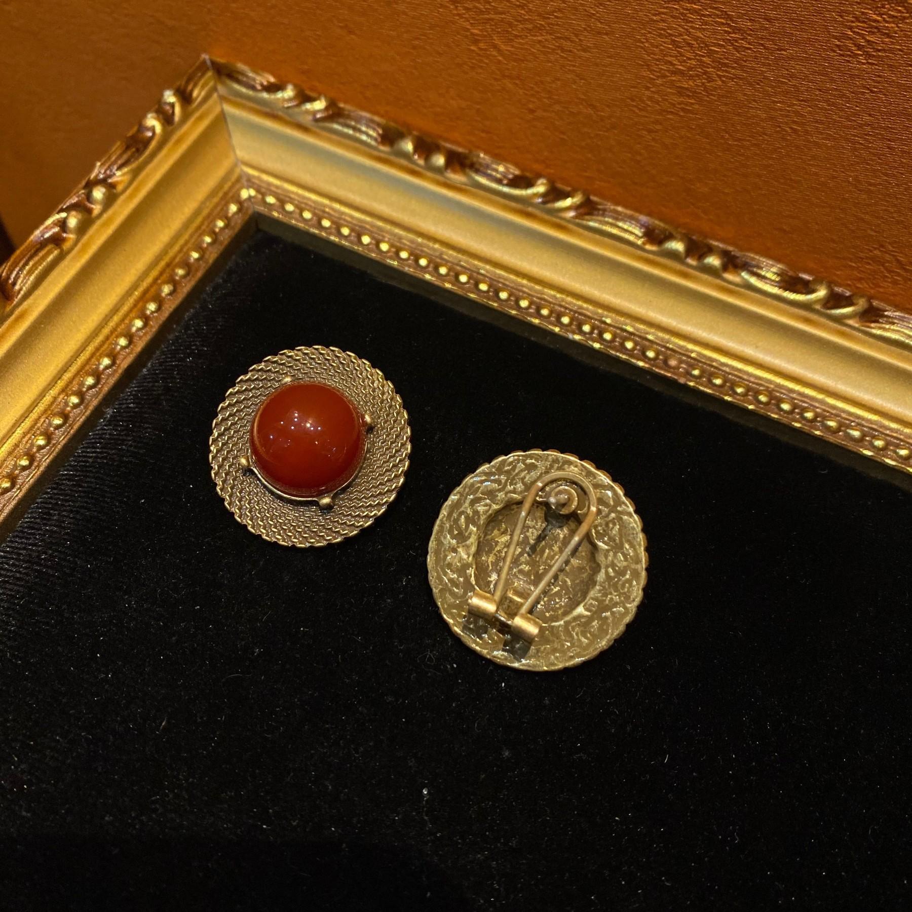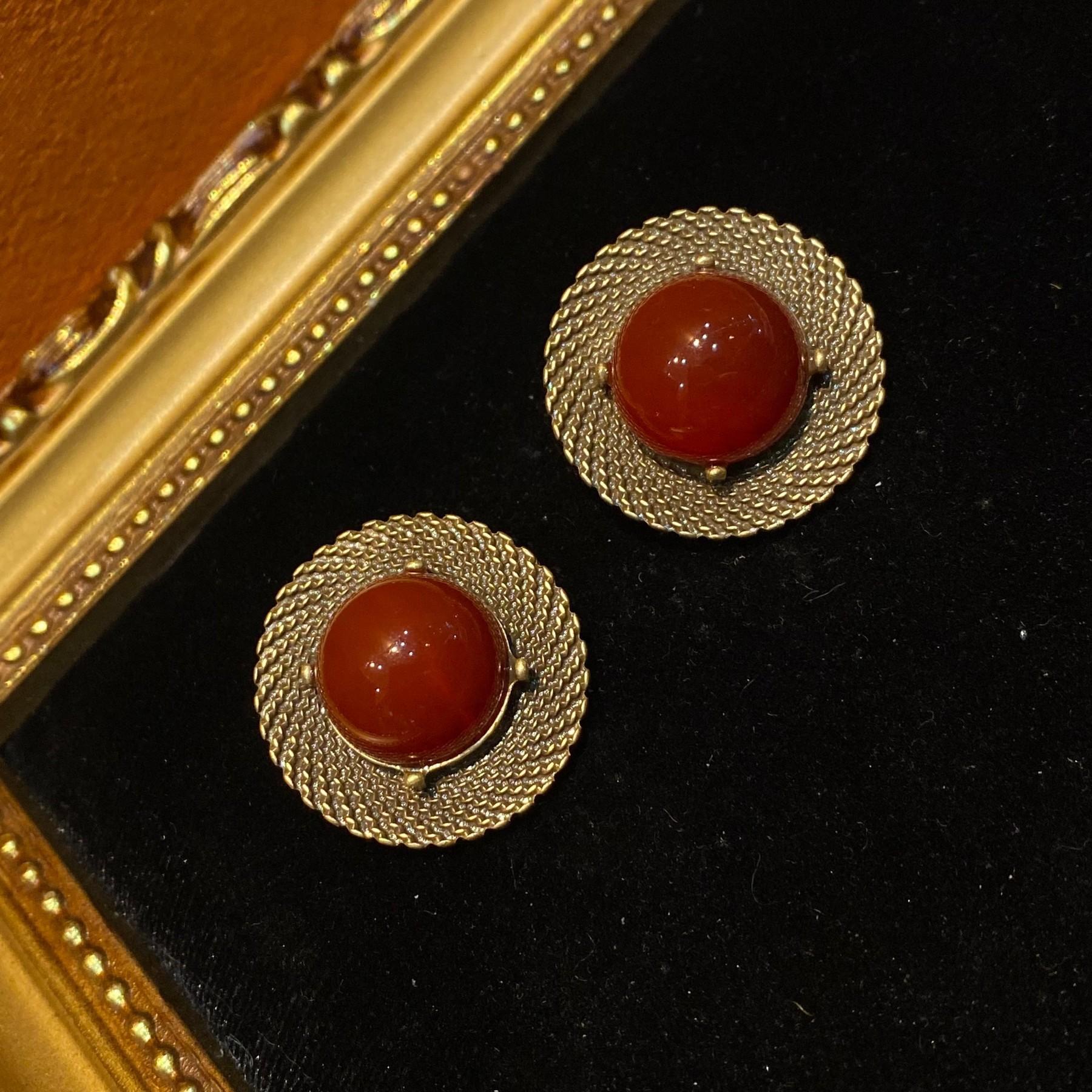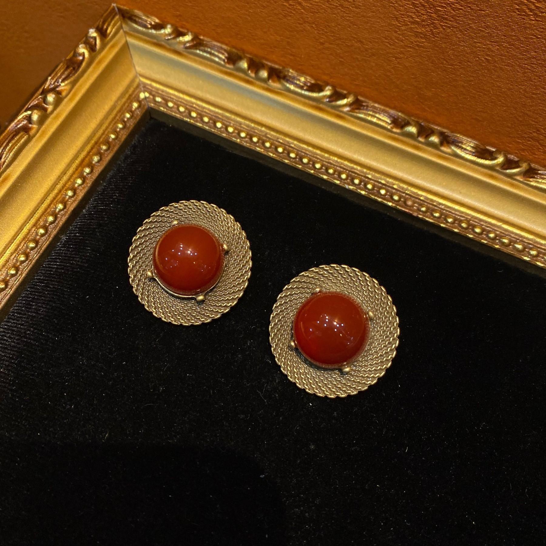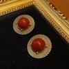 Aretes Redondos de Ágata Roja con Baño de Bronce Occidental 18 Oro Retro Antiguo Nicho Elegante Vida Diaria