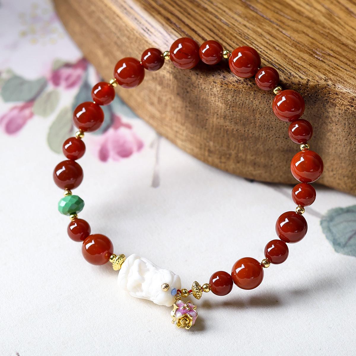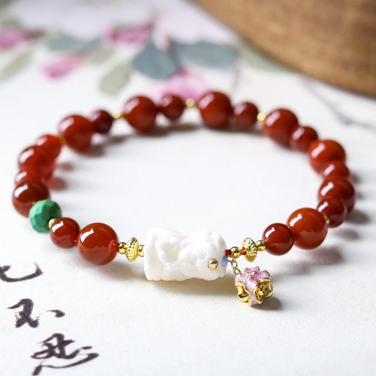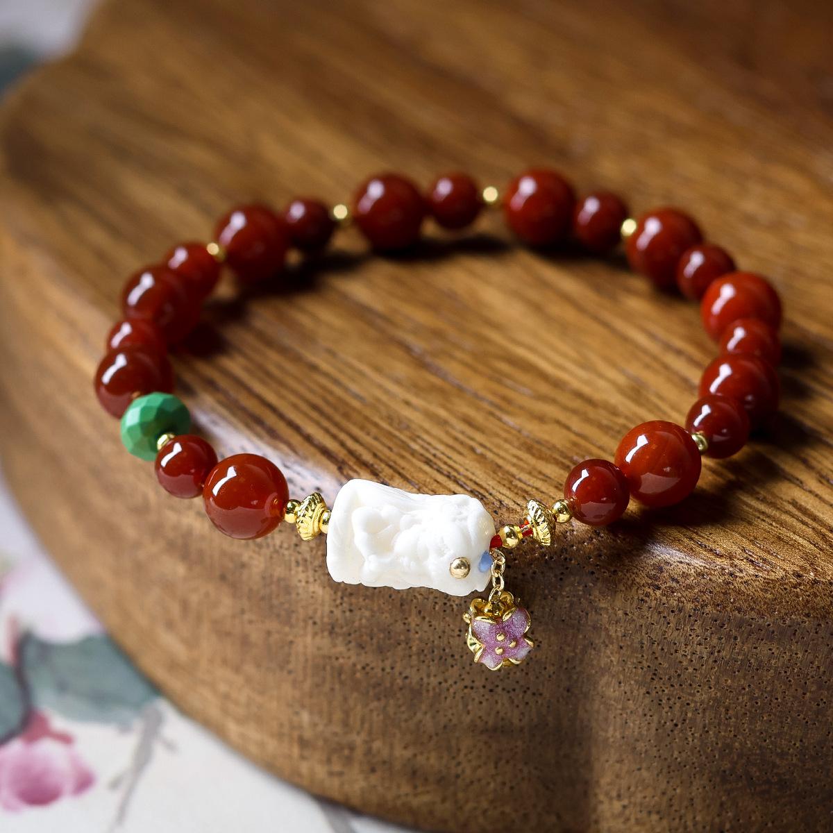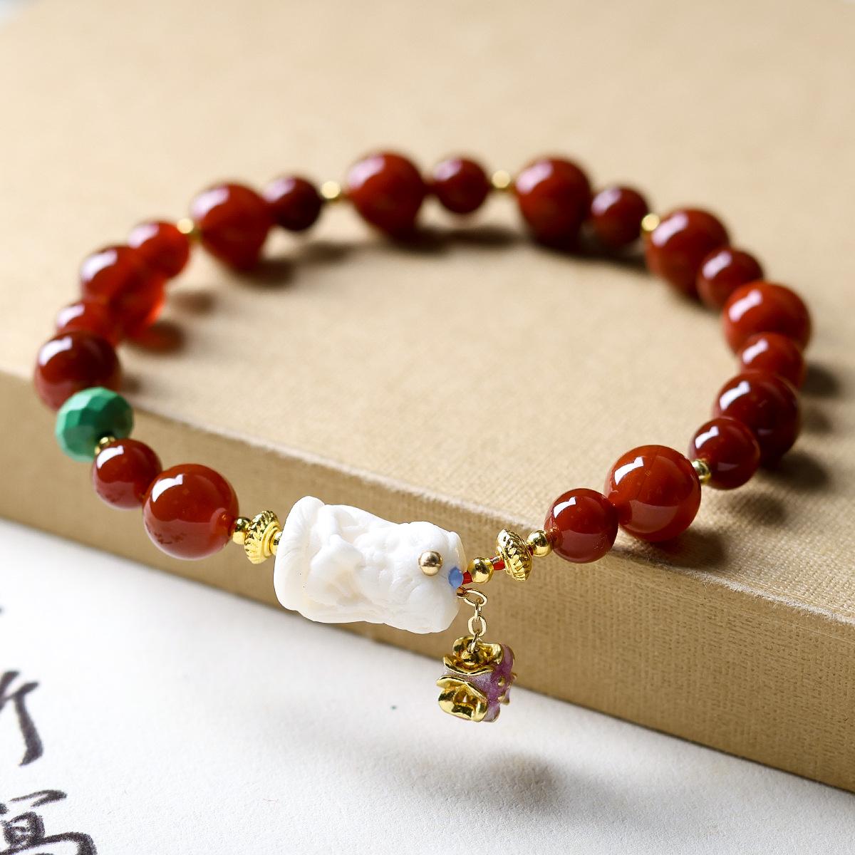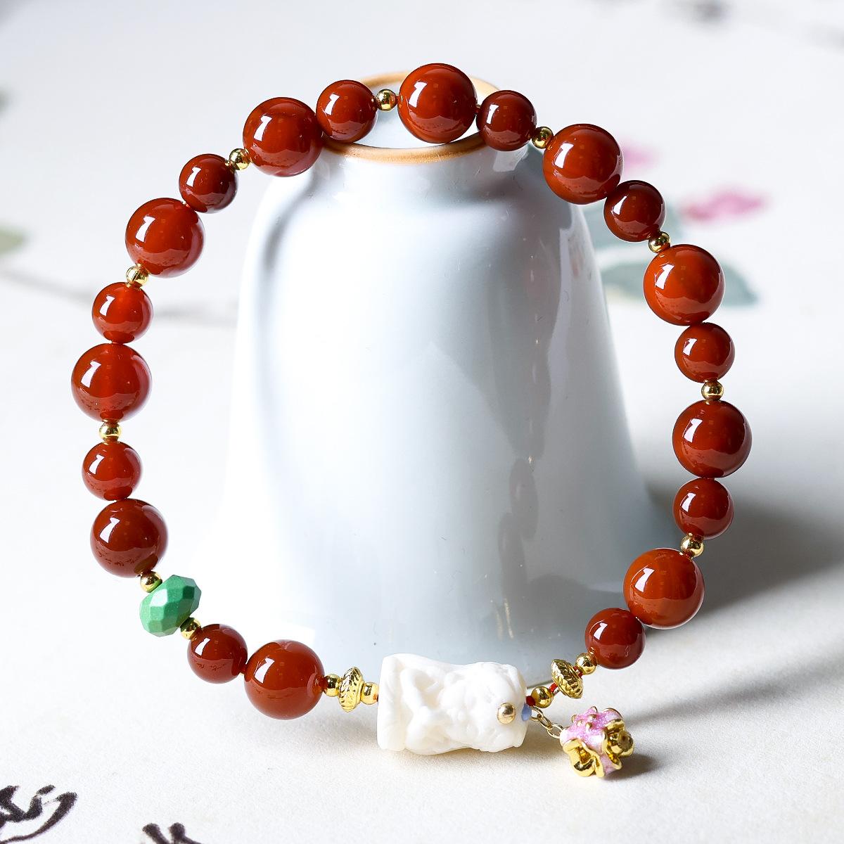 Diseño Original Ágata Roja del Sur Nuevo Brazalete Chino Wen Play Raíz Pay Zakiram Brazalete Estilo Nacional Benmingnian Rojo