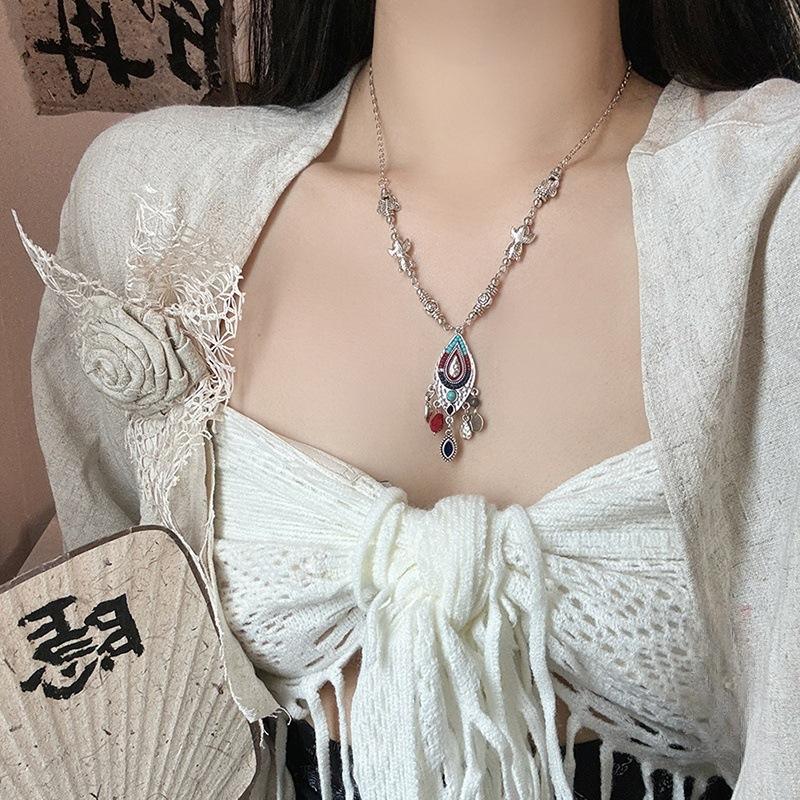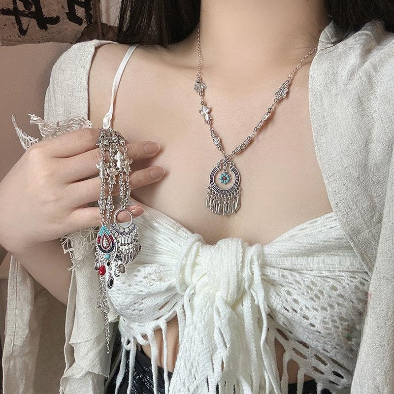Compra Collar con borlas étnicas retro, nuevo estilo exótico chino, cadena de clavícula occidental, accesorios para el cuello de niña Miao Jiang al por mayor en Joom.pro